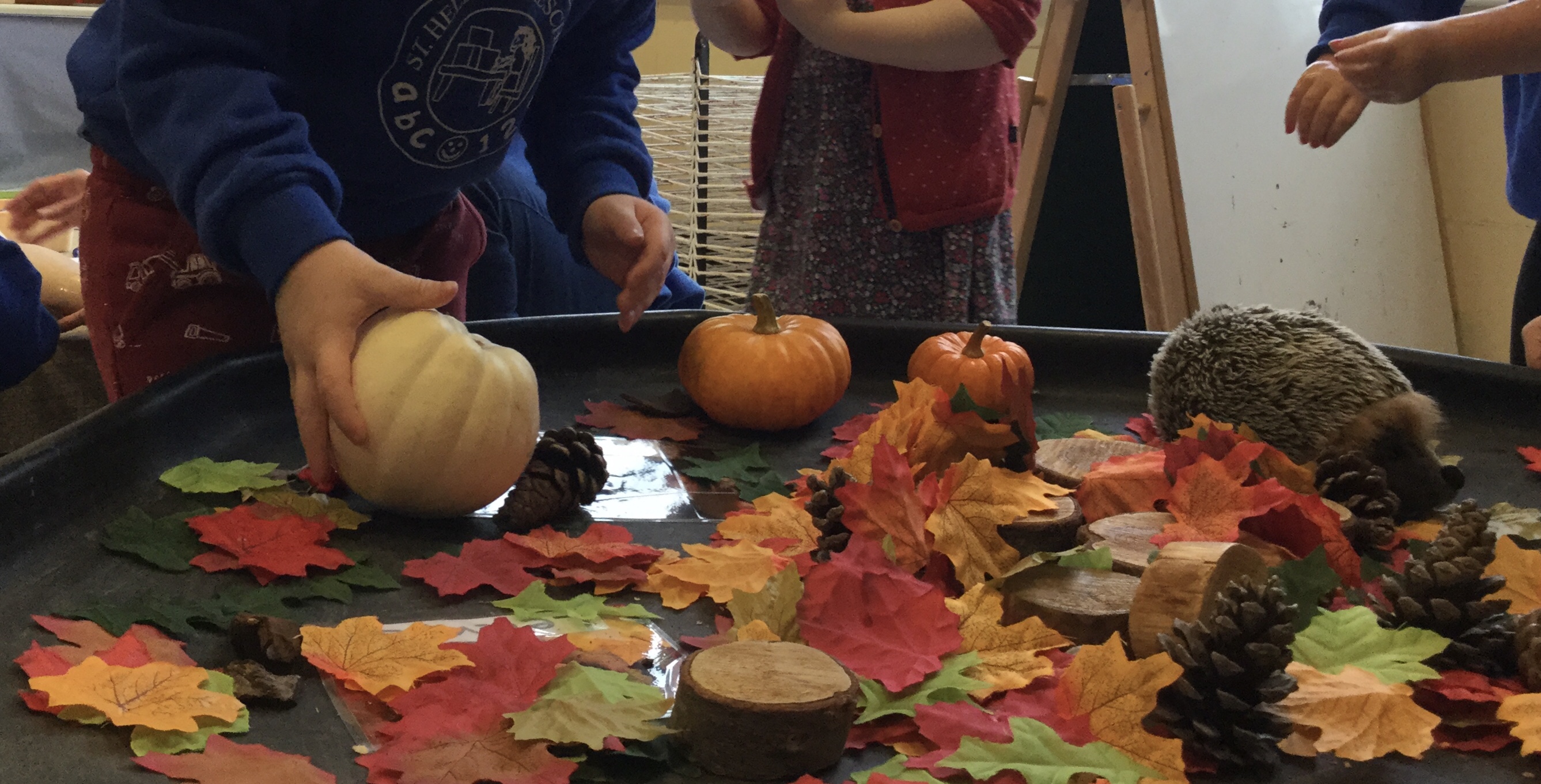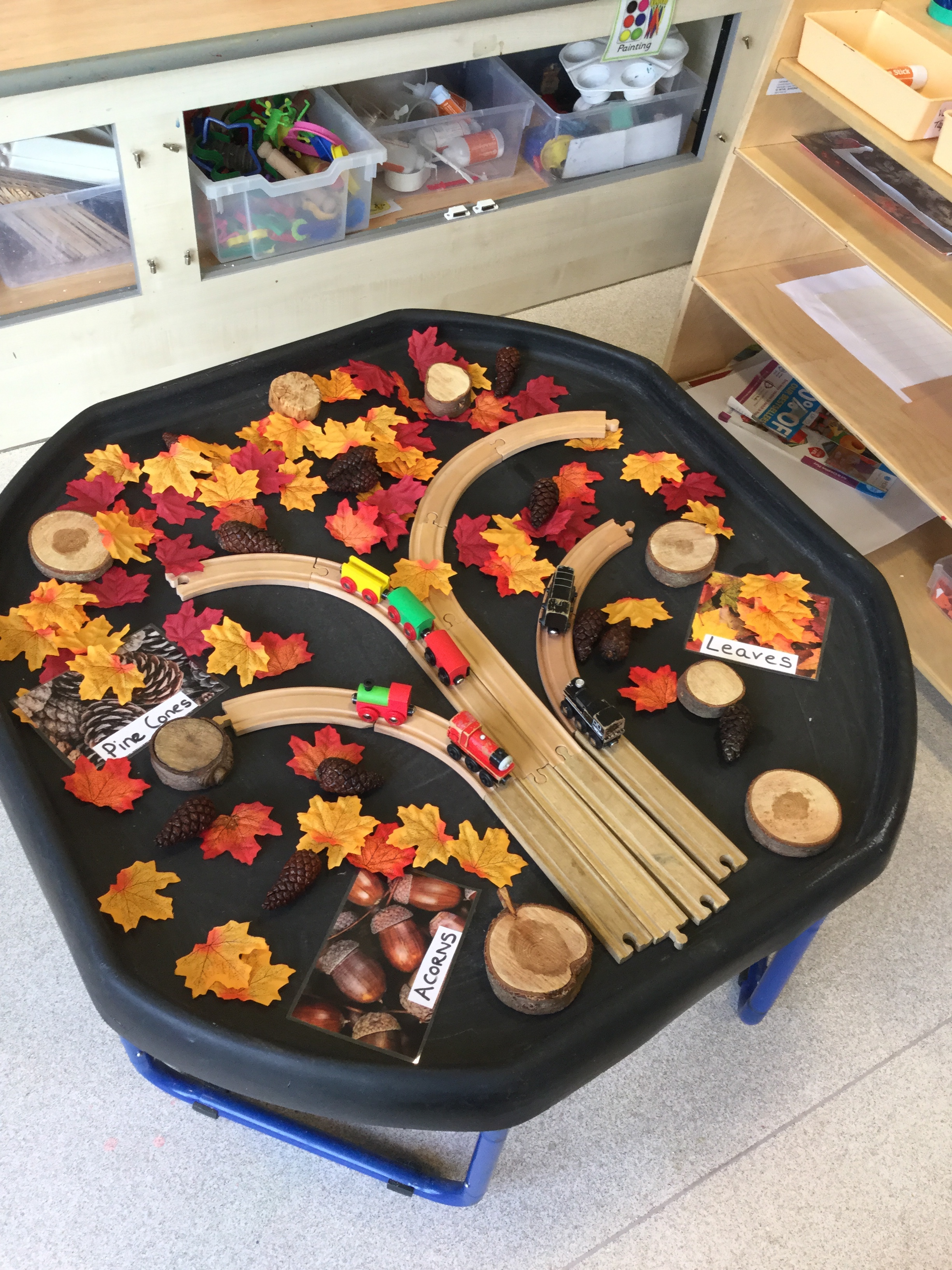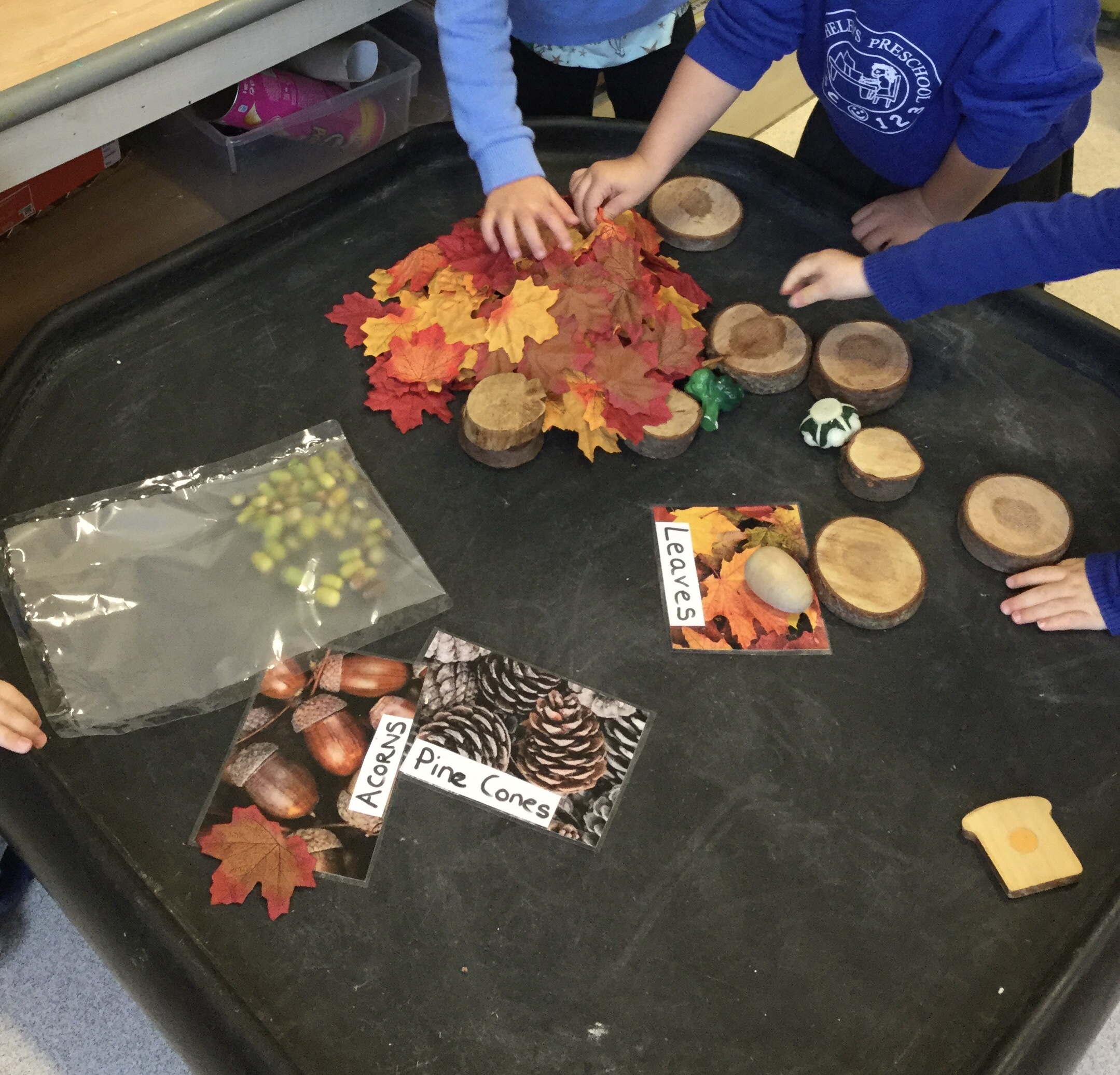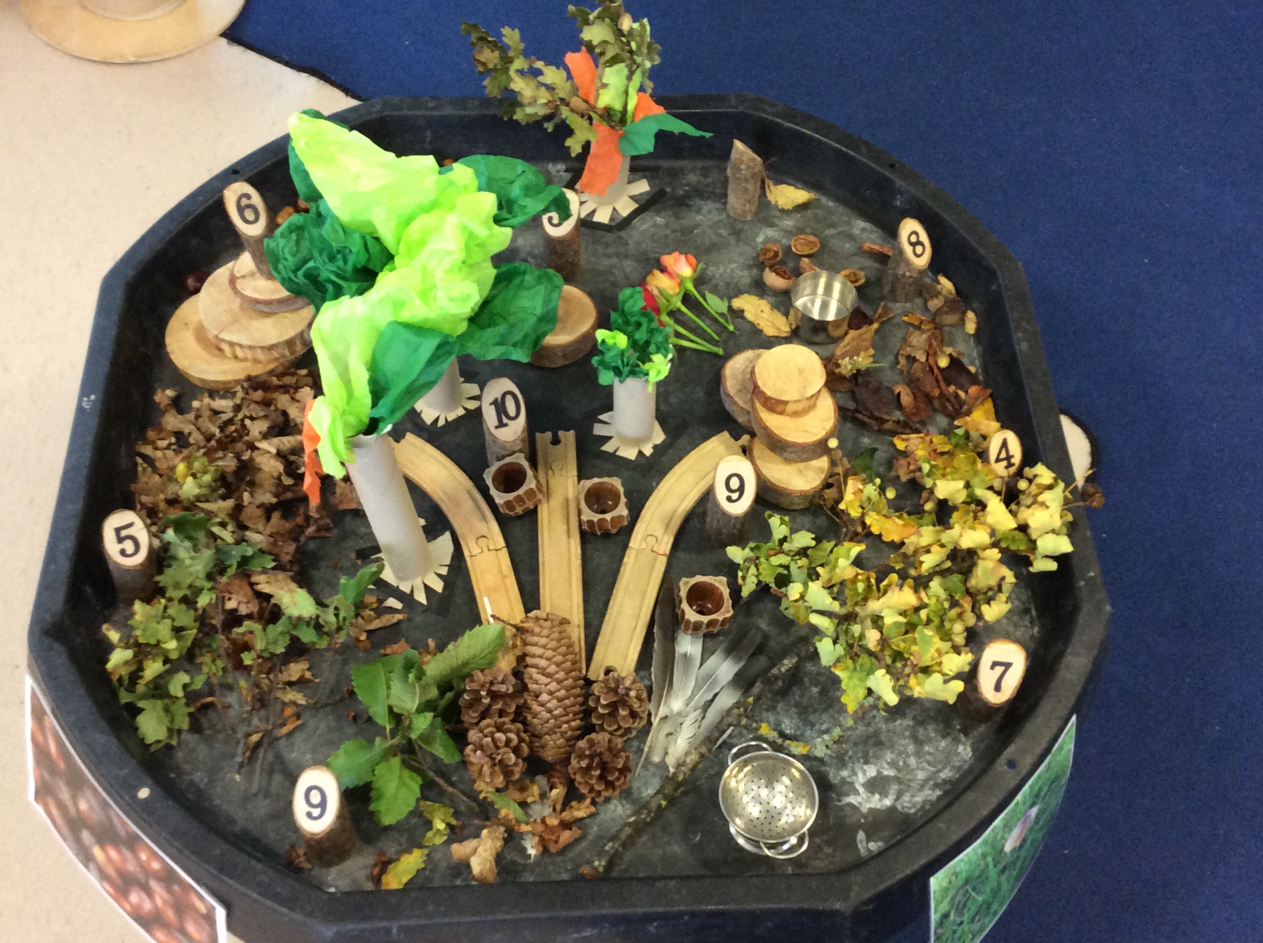 The tuff trays were full of autumnal things for us to explore, to count and talk about. We’ve learned about which animals come out in autumn, what they eat and where they live.
