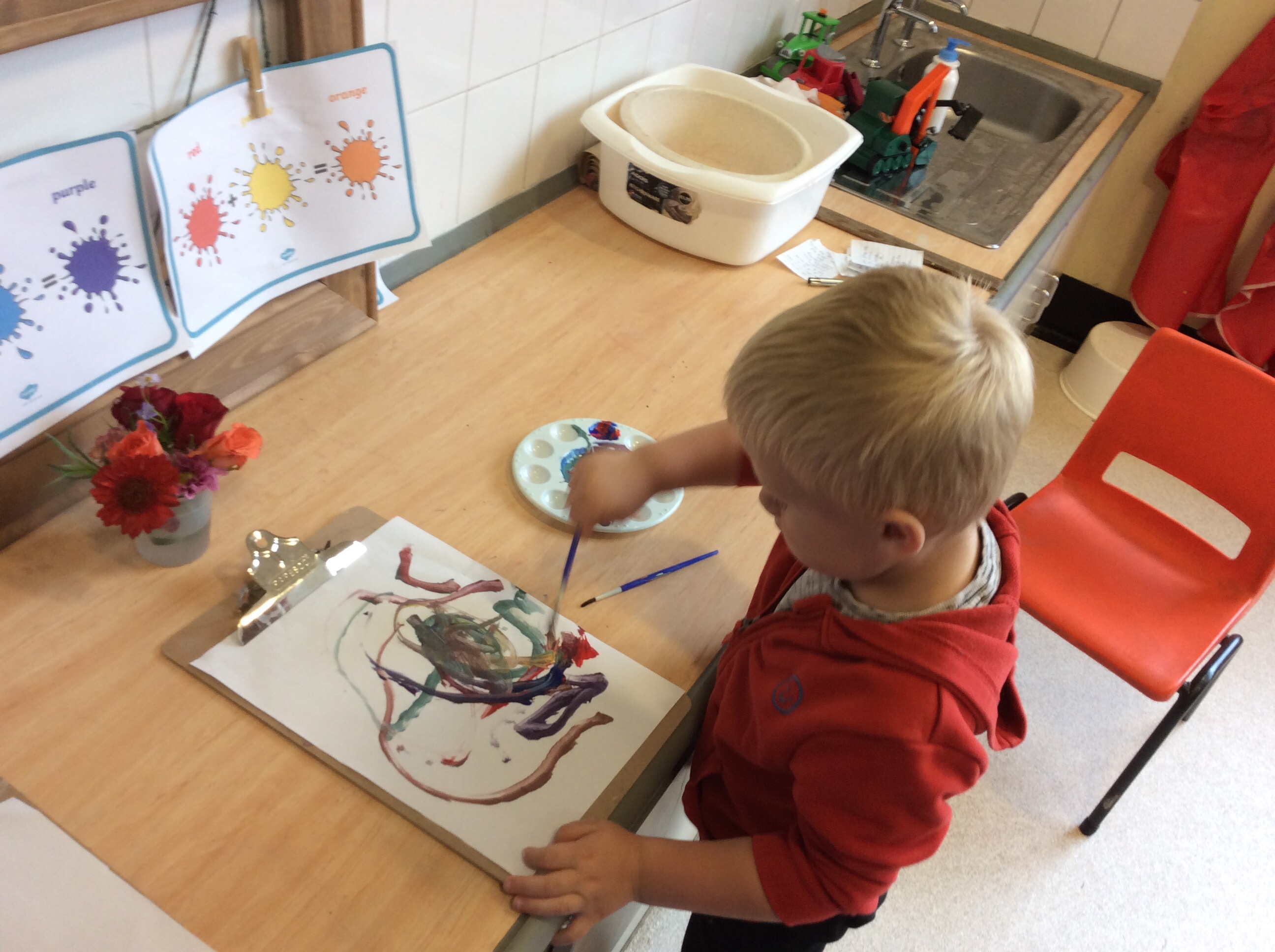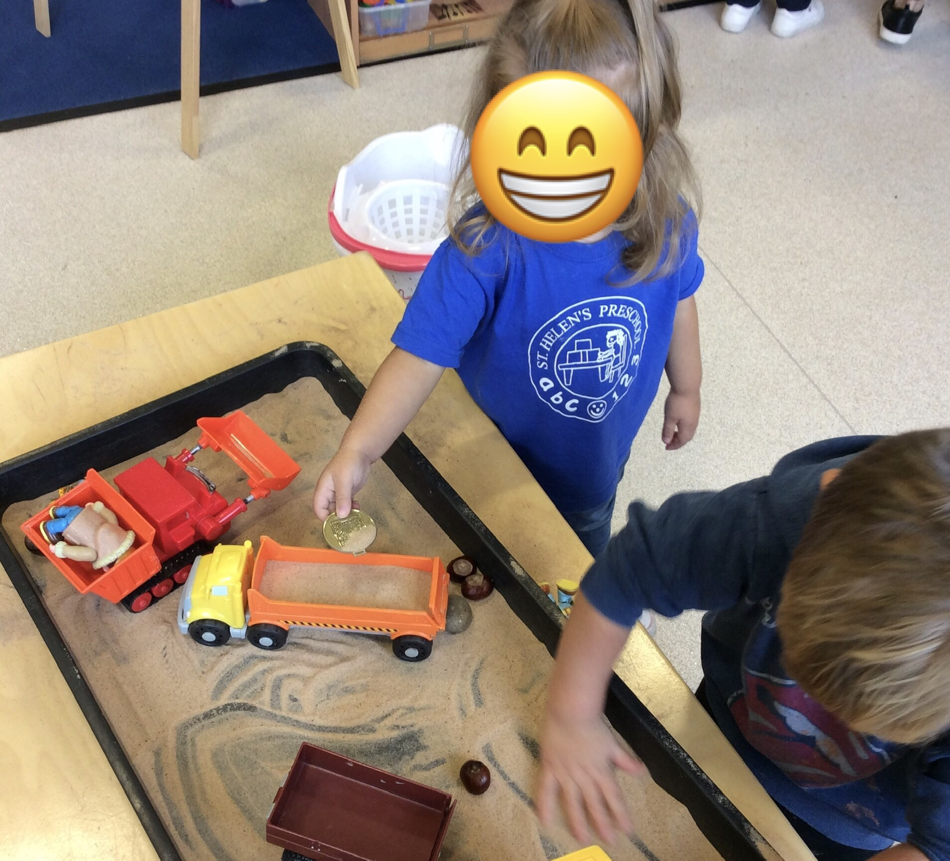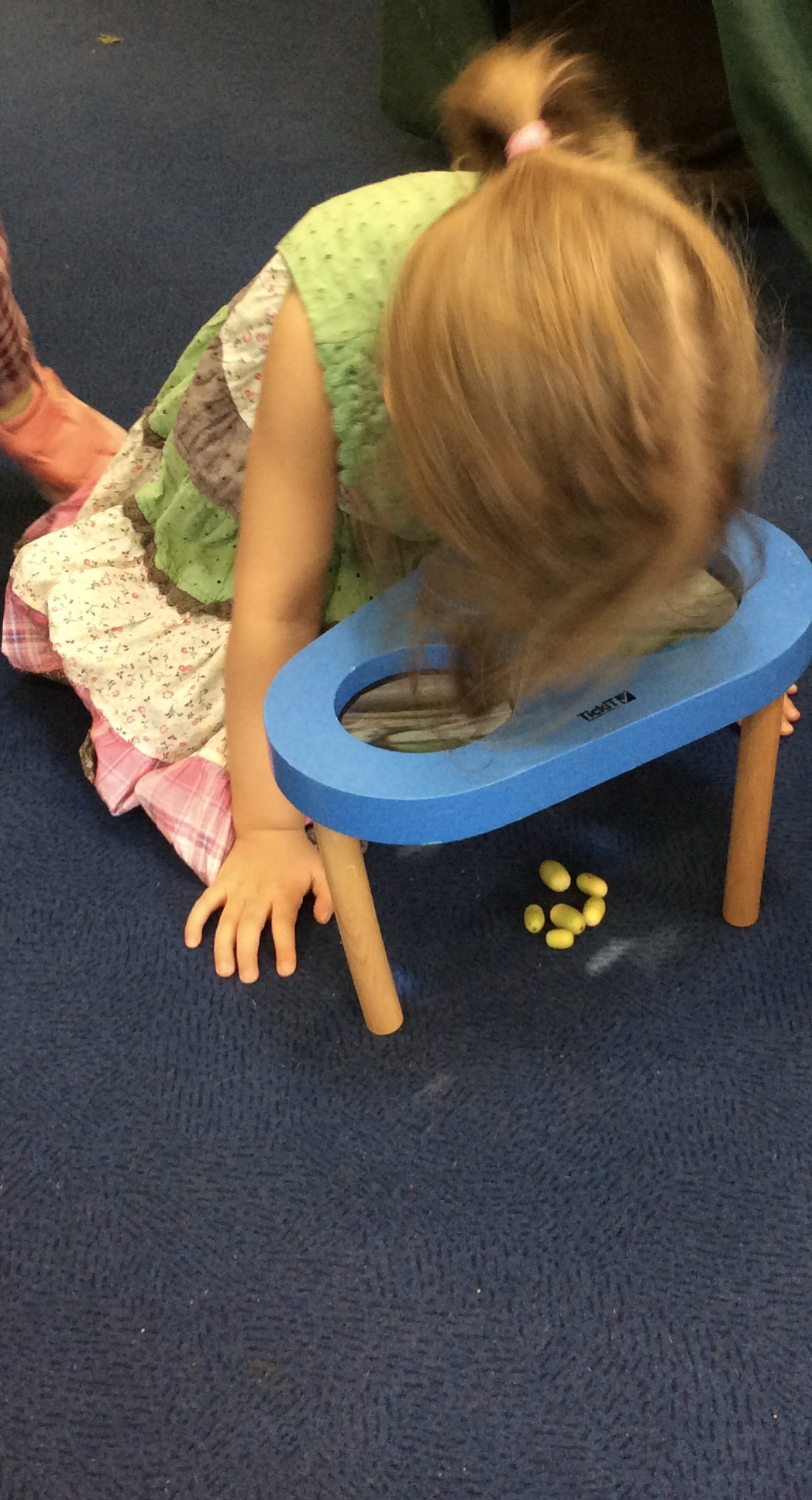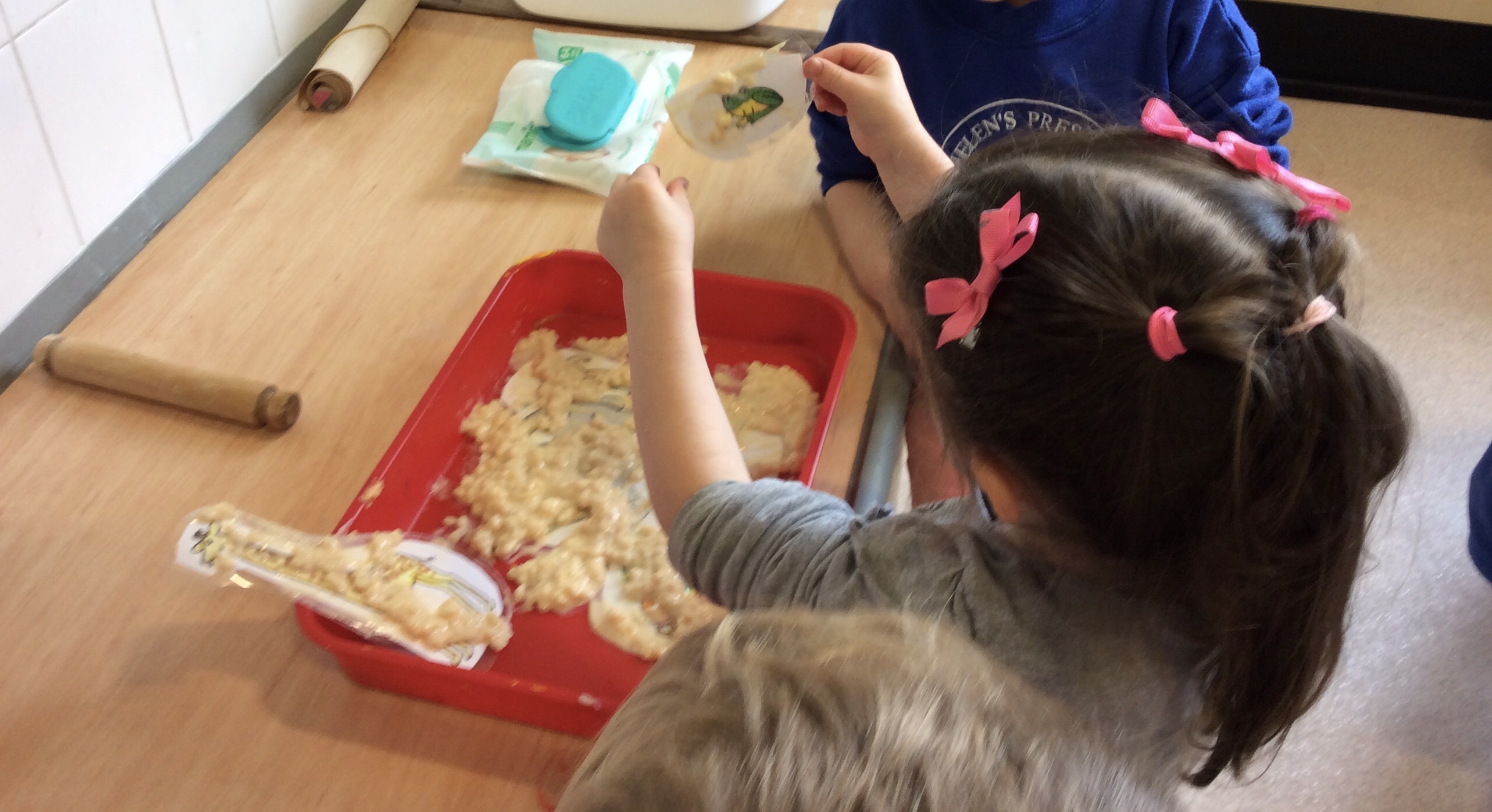 Orange room have been reading Goldilocks and the 3 bears, they experimented with tipping and pouring using oats.