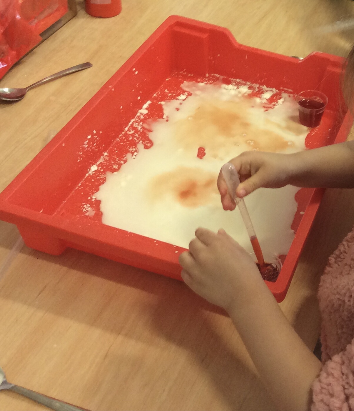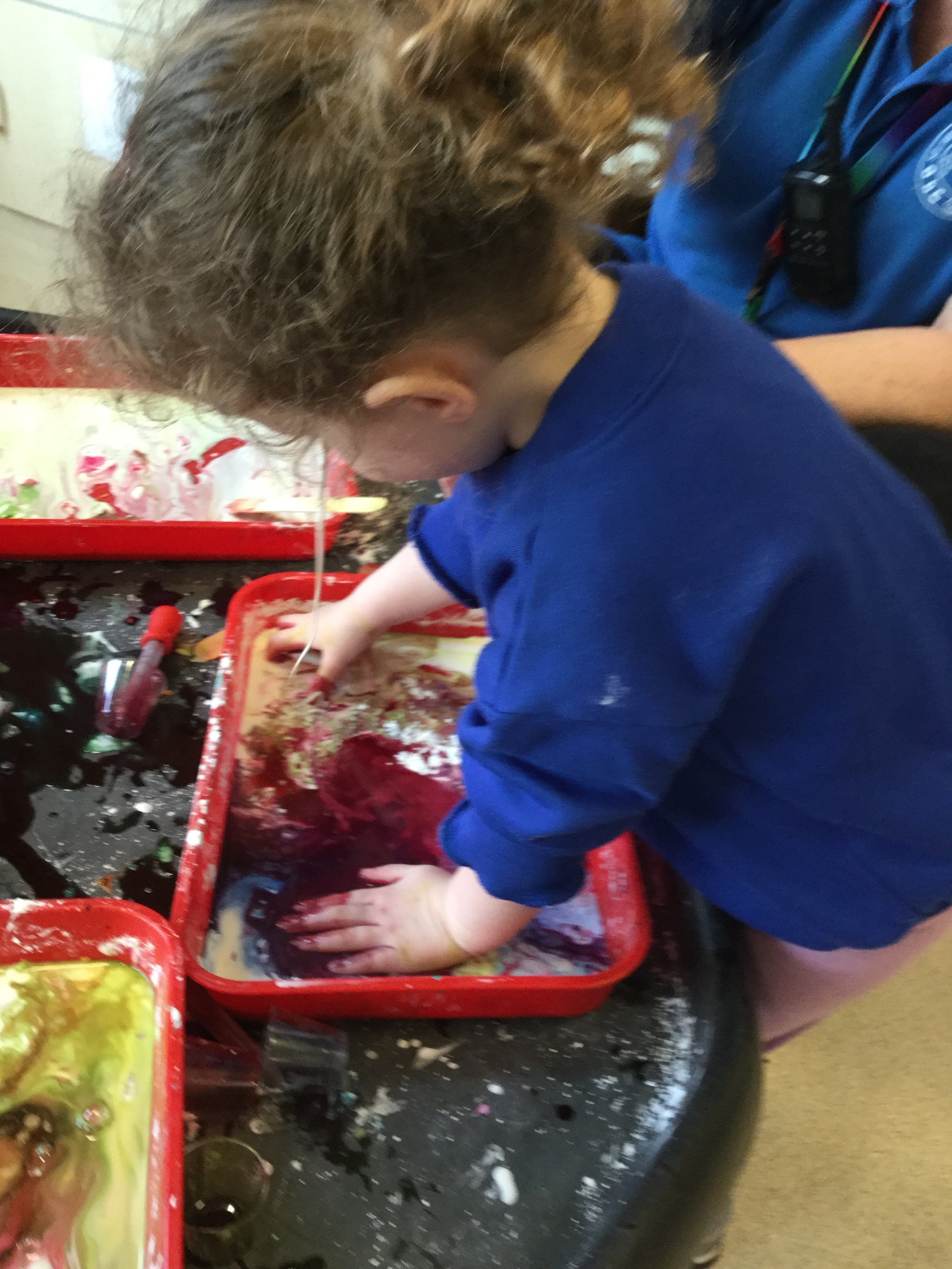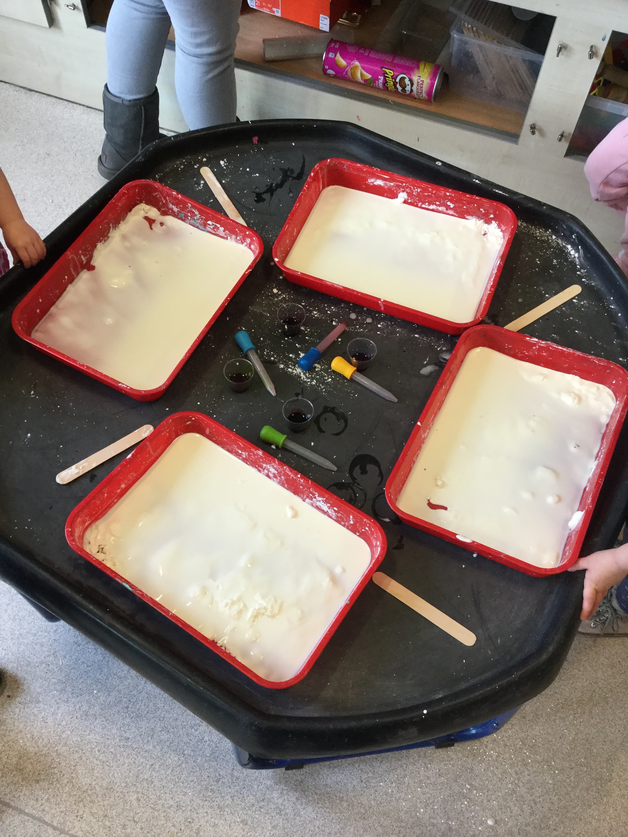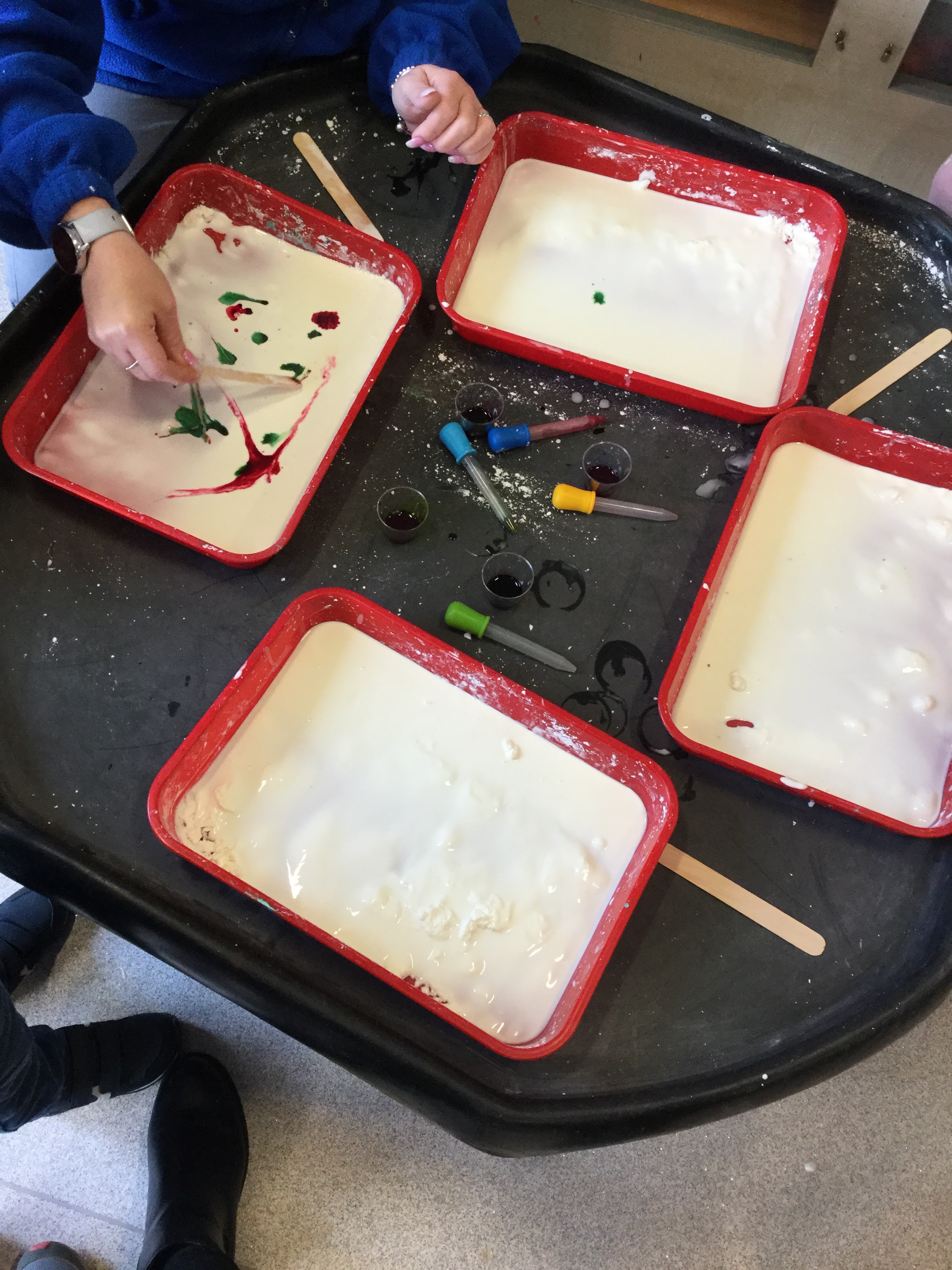 Both rooms have enjoyed colour mixing, we added shaving foam and gloop for extra texture. We also used coloured water and pippets to help develop our fine motor skills. 🧫