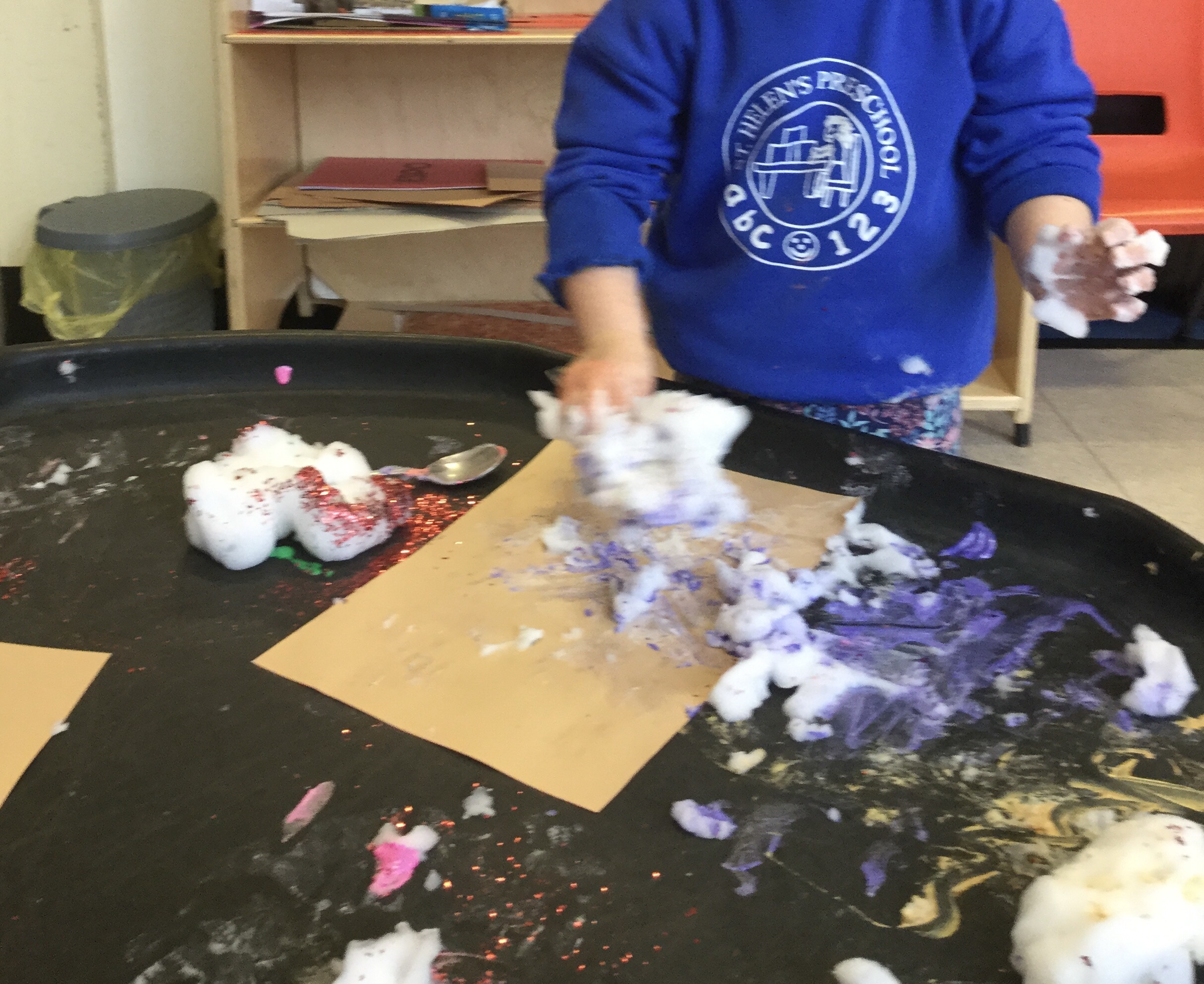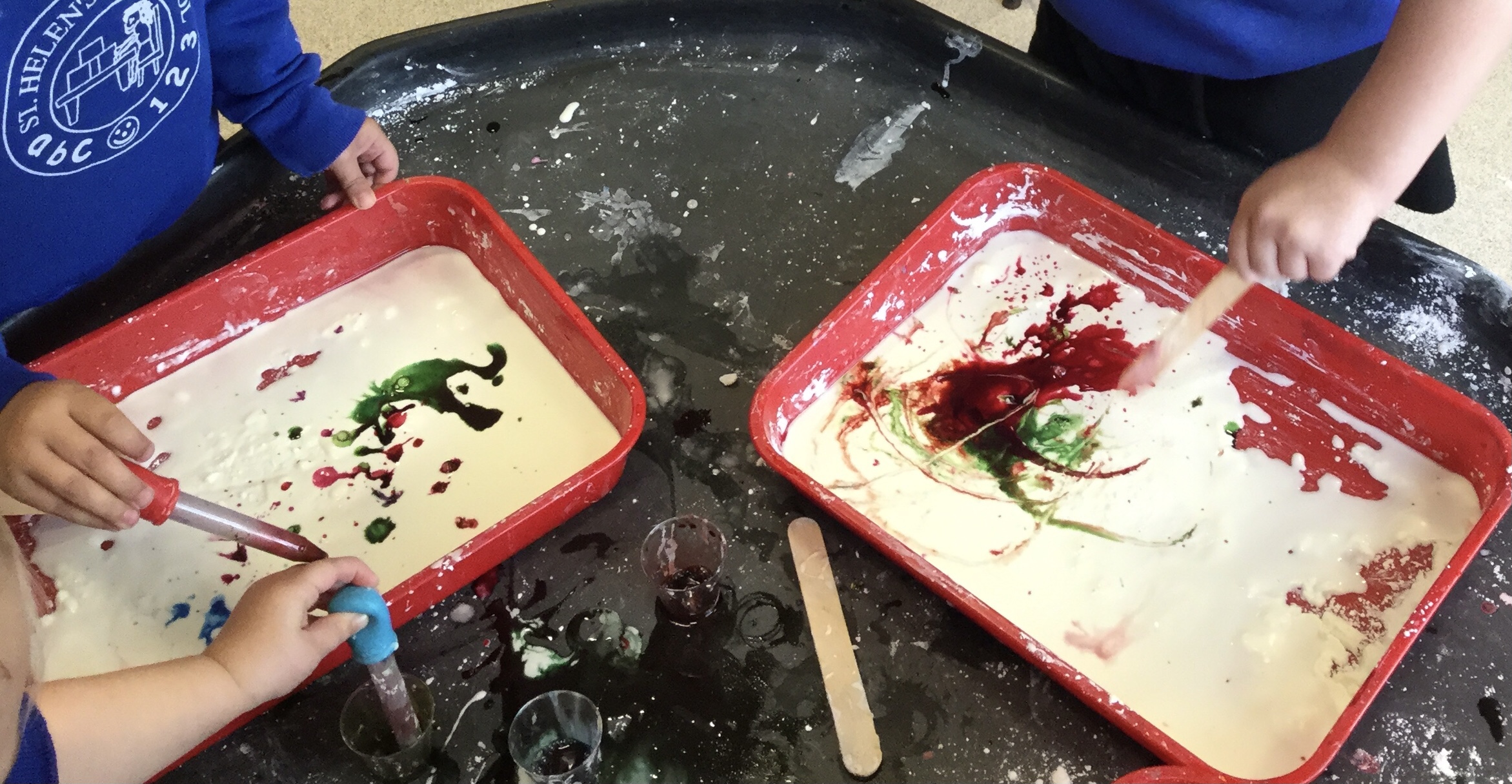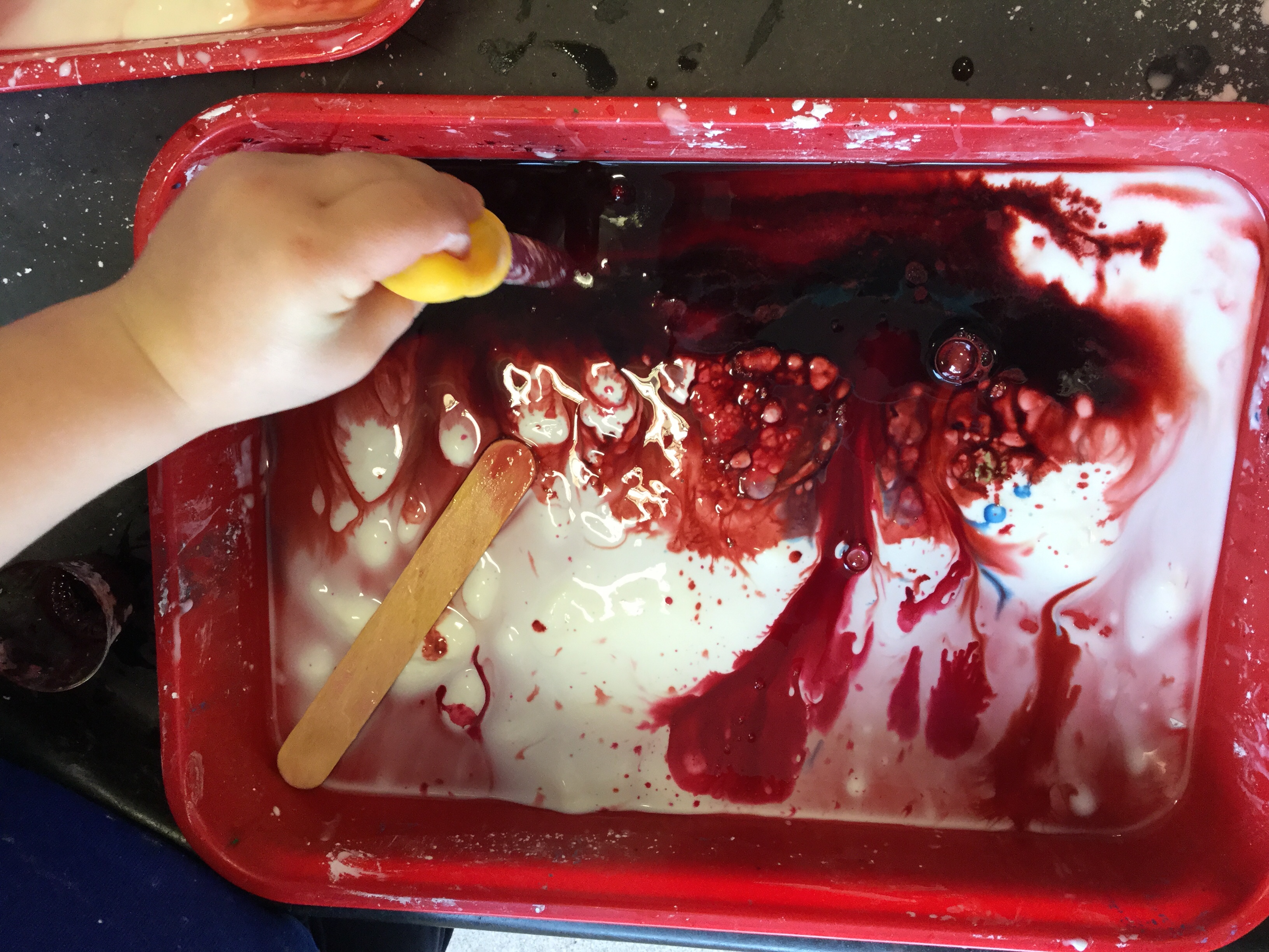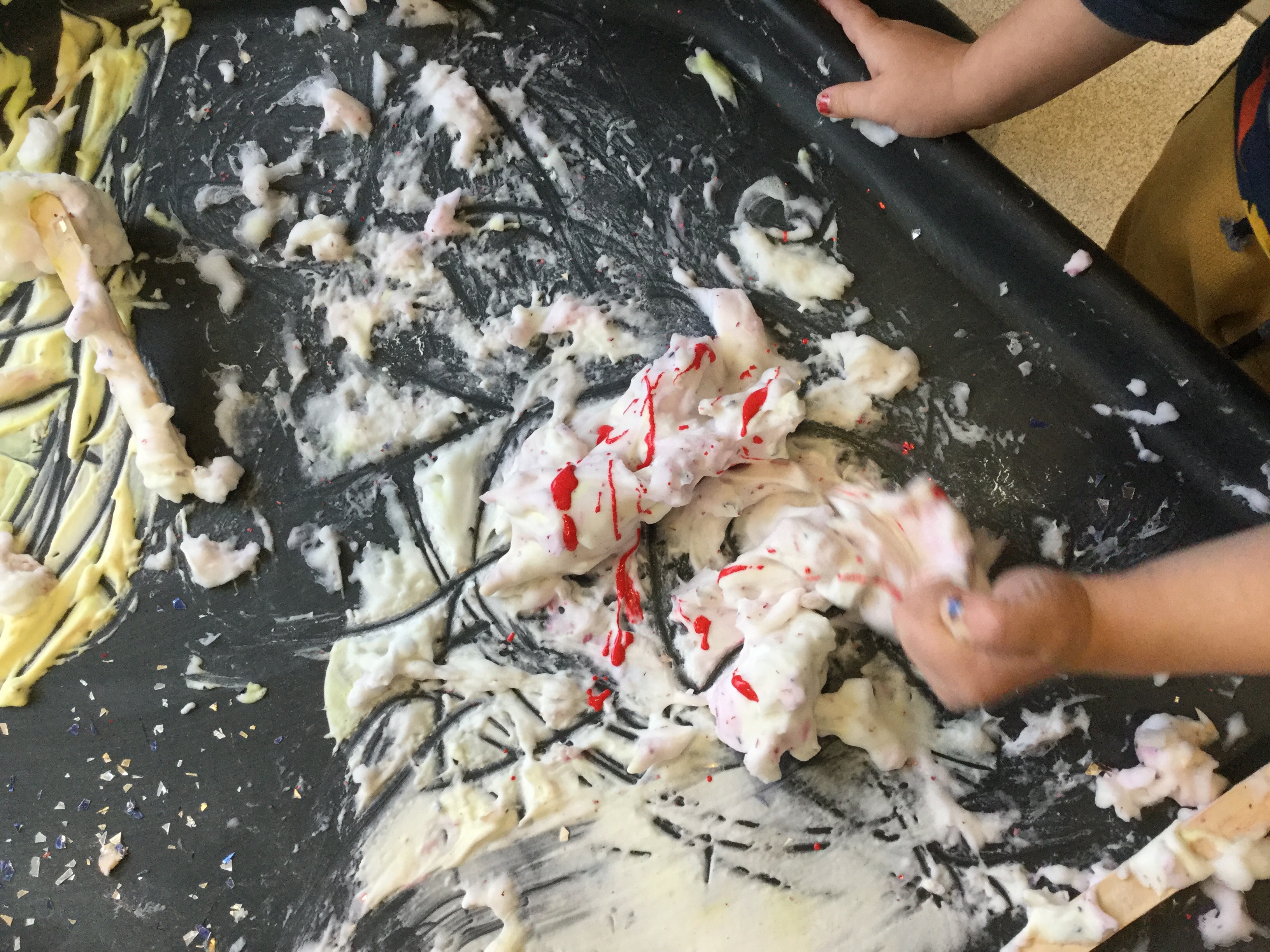 Both rooms have enjoyed colour mixing, we added shaving foam and gloop for extra texture. We also used coloured water and pippets to help develop our fine motor skills. 🧫