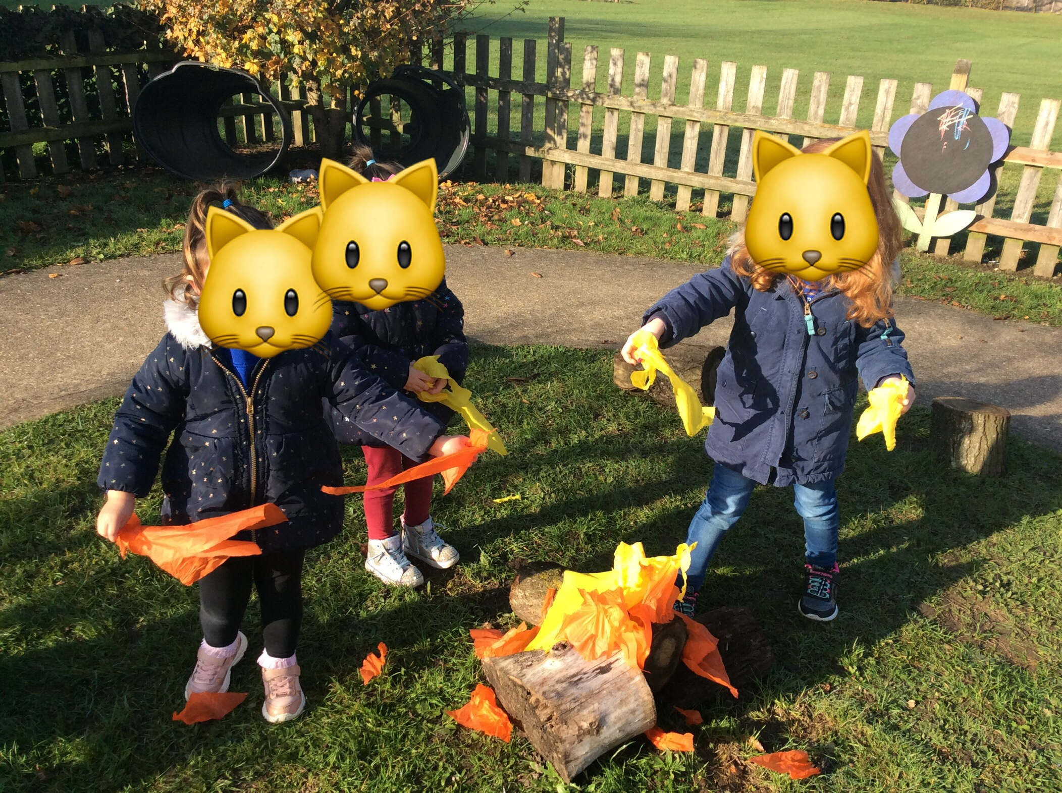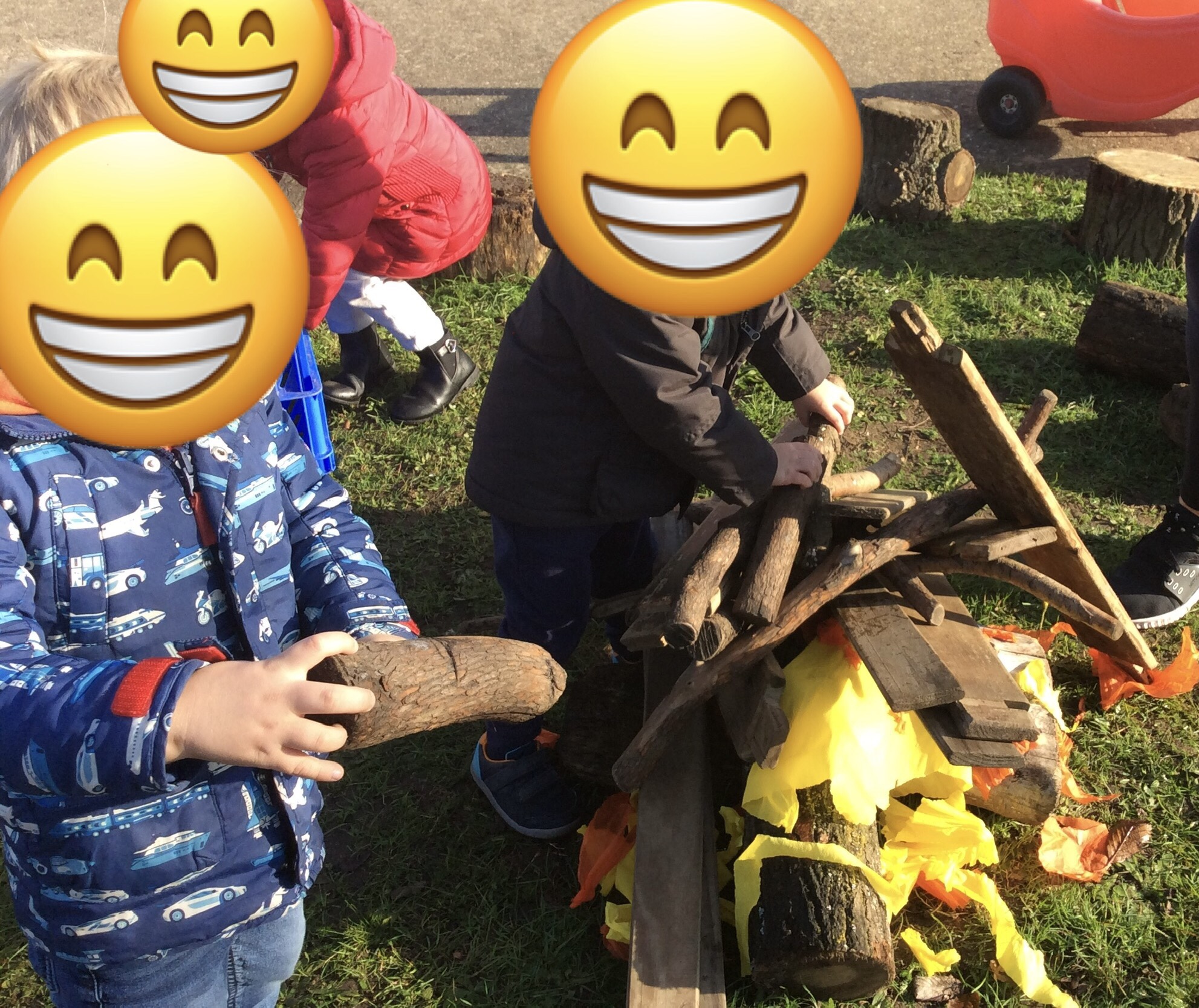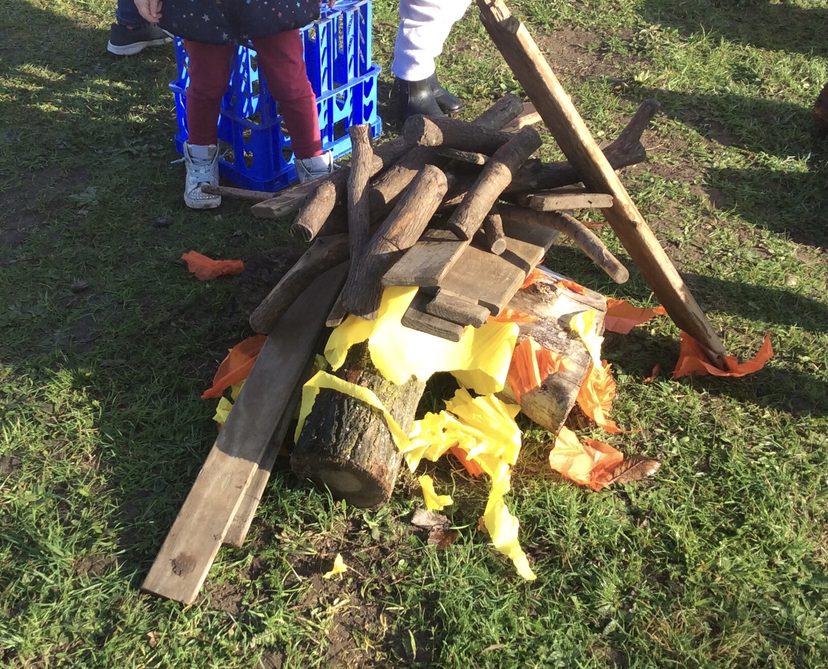 In the garden we drew fireworks on the ground using chalks. Our role play was set up for us to create a big bonfire. We spoke about fire safety and things at home that may be too hot to touch. Then we pretended to warm our hands while cooking sausages and marshmallows on our bonfire 🔥