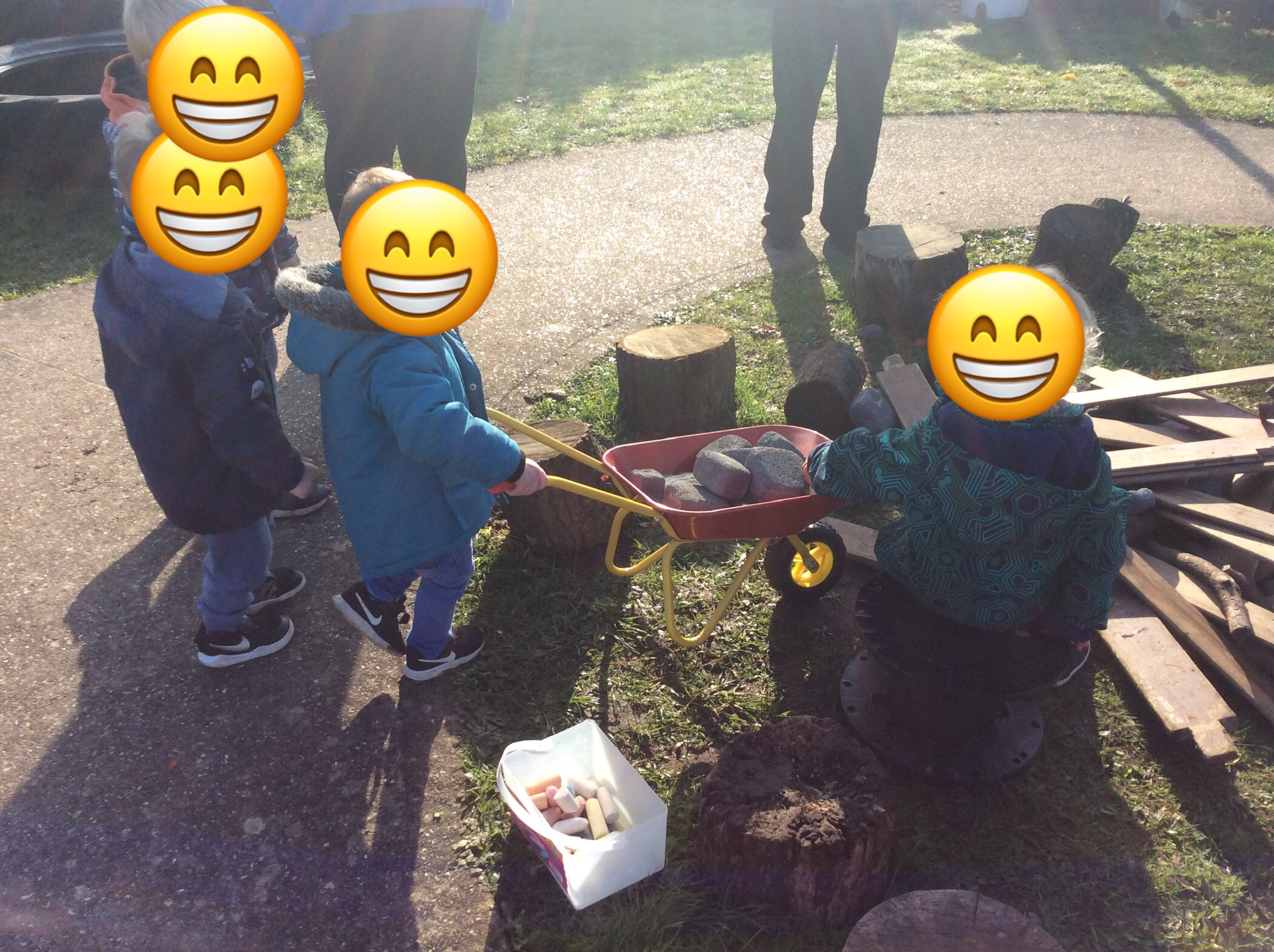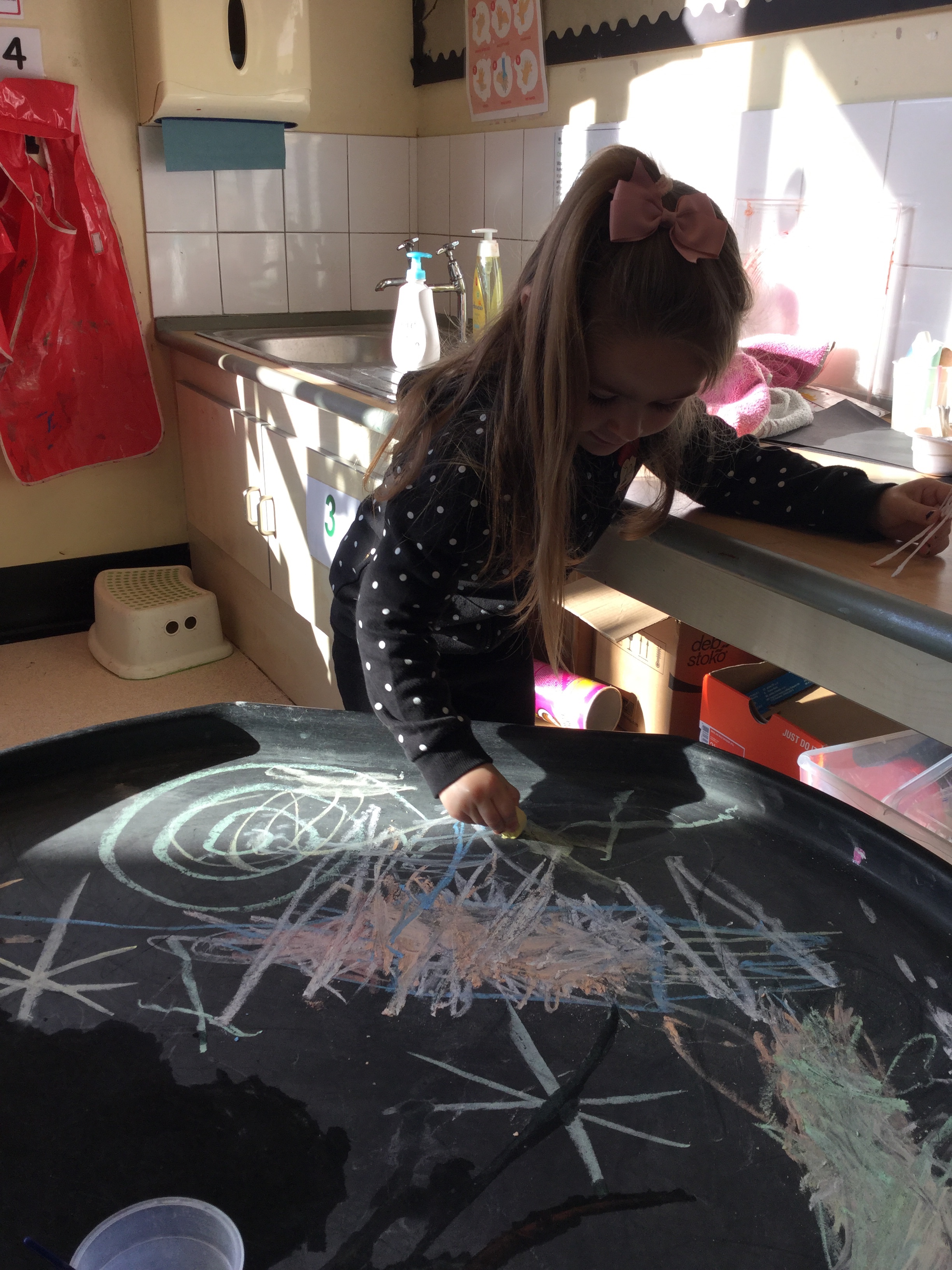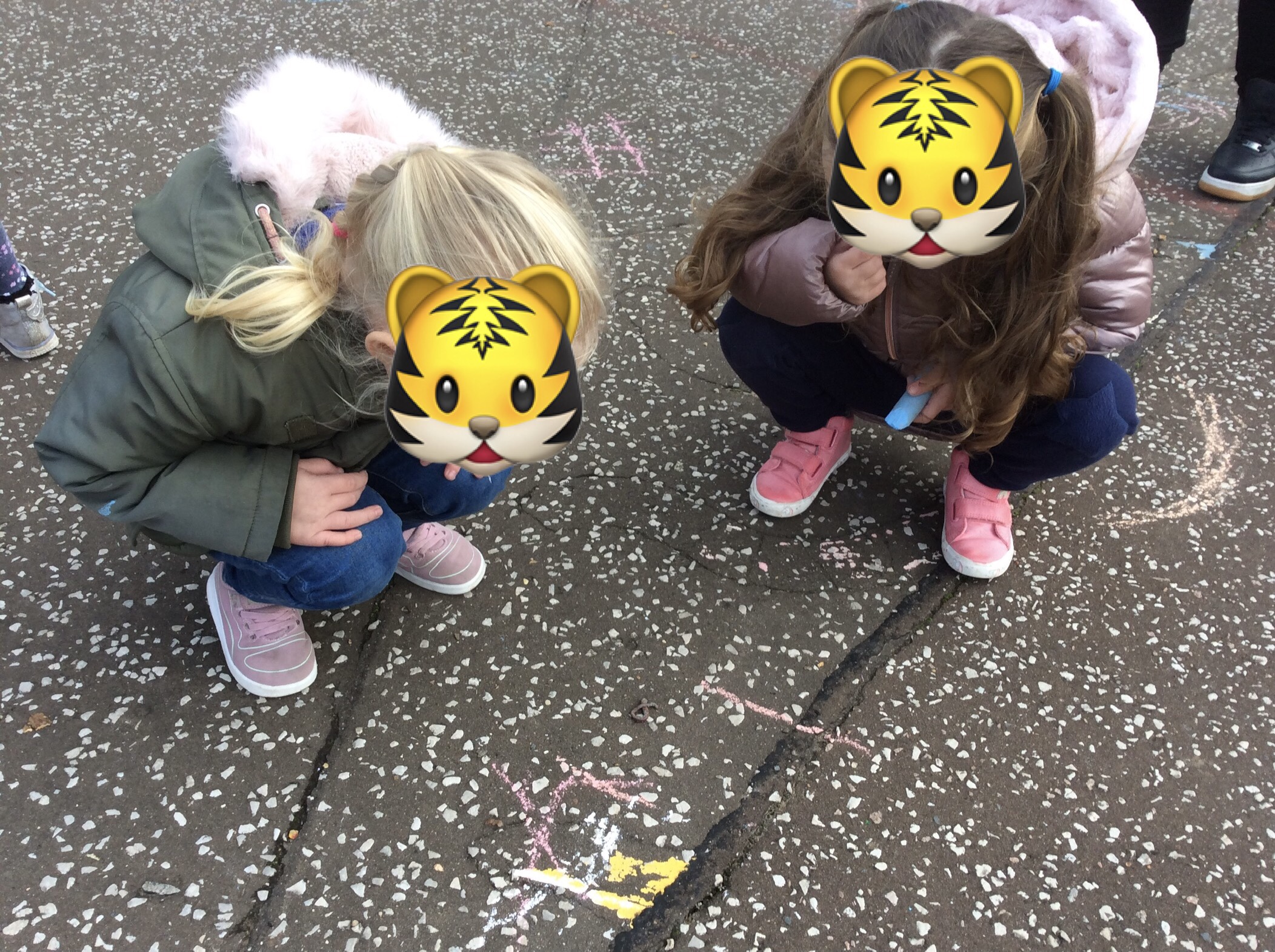 In the garden we drew fireworks on the ground using chalks. Our role play was set up for us to create a big bonfire. We spoke about fire safety and things at home that may be too hot to touch. Then we pretended to warm our hands while cooking sausages and marshmallows on our bonfire 🔥