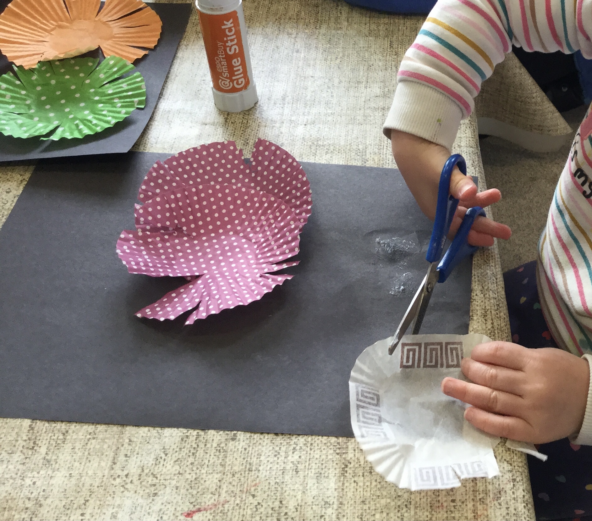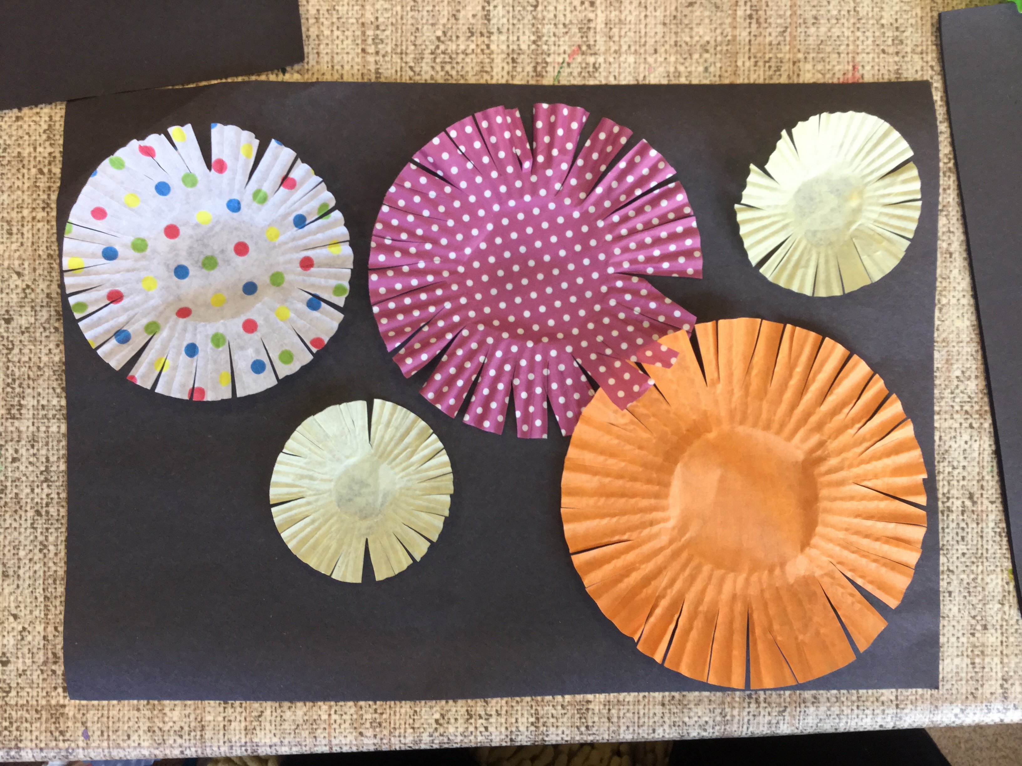 We practiced our cutting skills snipping around bun cases to create a firework picture. ✂️