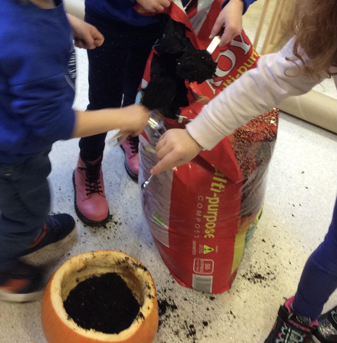 We started off the week planting our pumpkin seeds from last week, lets hope they will grow into giant pumpkins. 🎃
