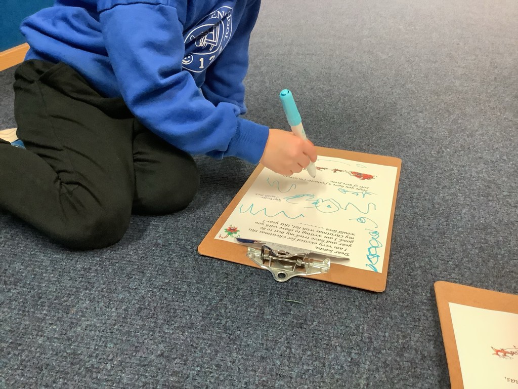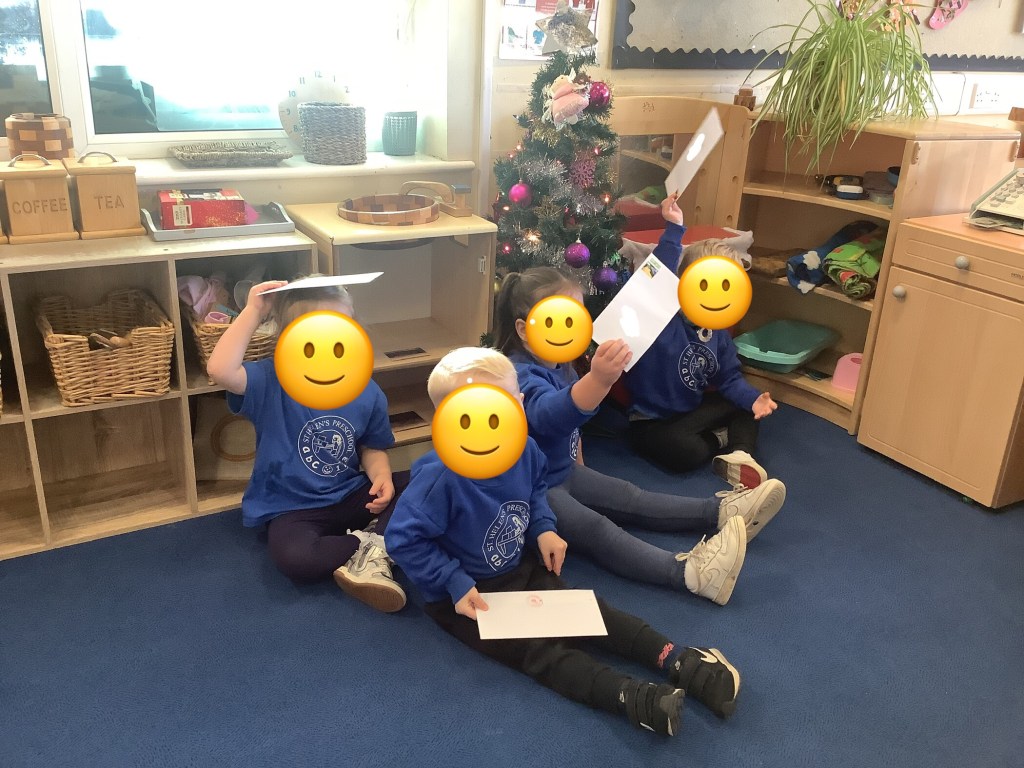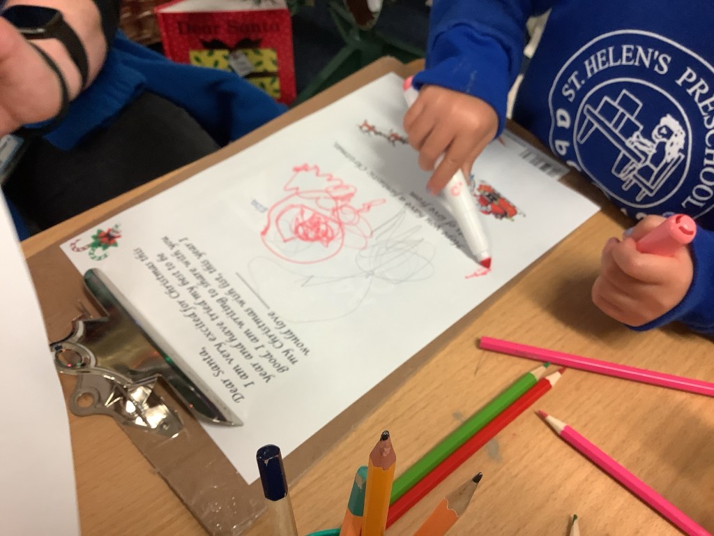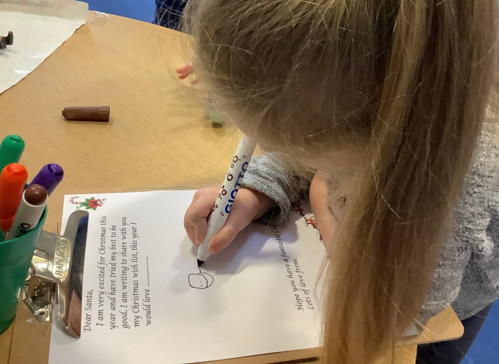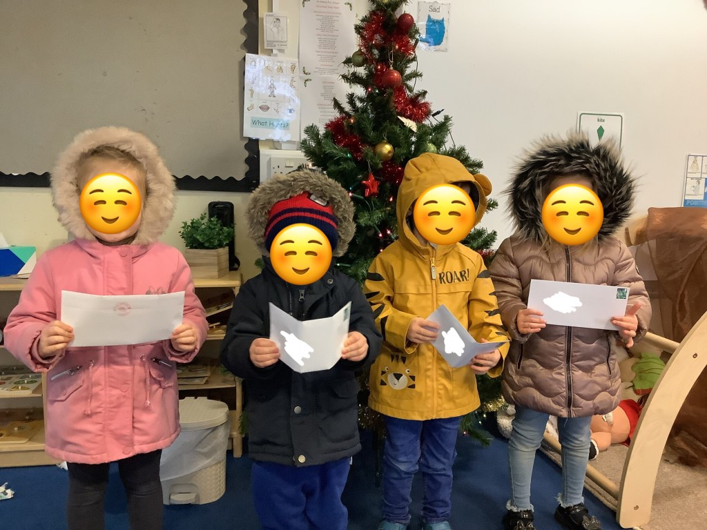 The children wrote letters to Santa, the older children went for a walk with some ladies to the post box to post their letters and the younger children posted theirs in our very special post box sent from the North Pole.