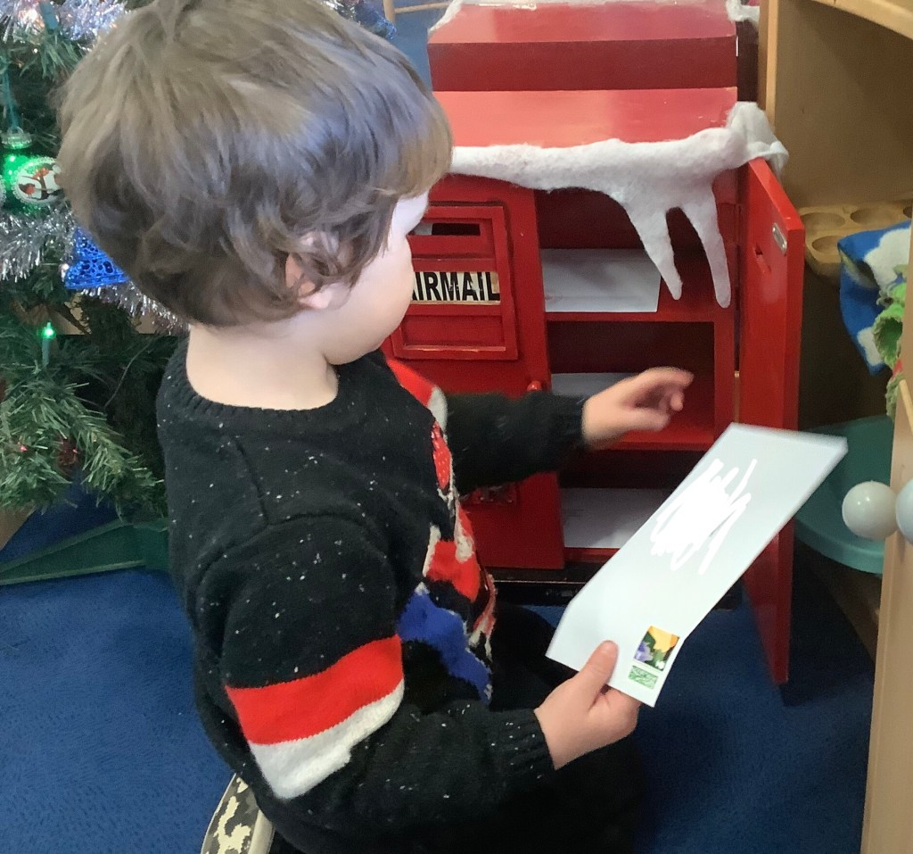 Christmas activities were in full force this month starting with the most important job of all… getting our letters in to Santa. The children wrote their letters and in small groups, the older children walked down to the post box to post them. The younger children posted theirs in our very own makeshift postbox sent from the North Pole!!!