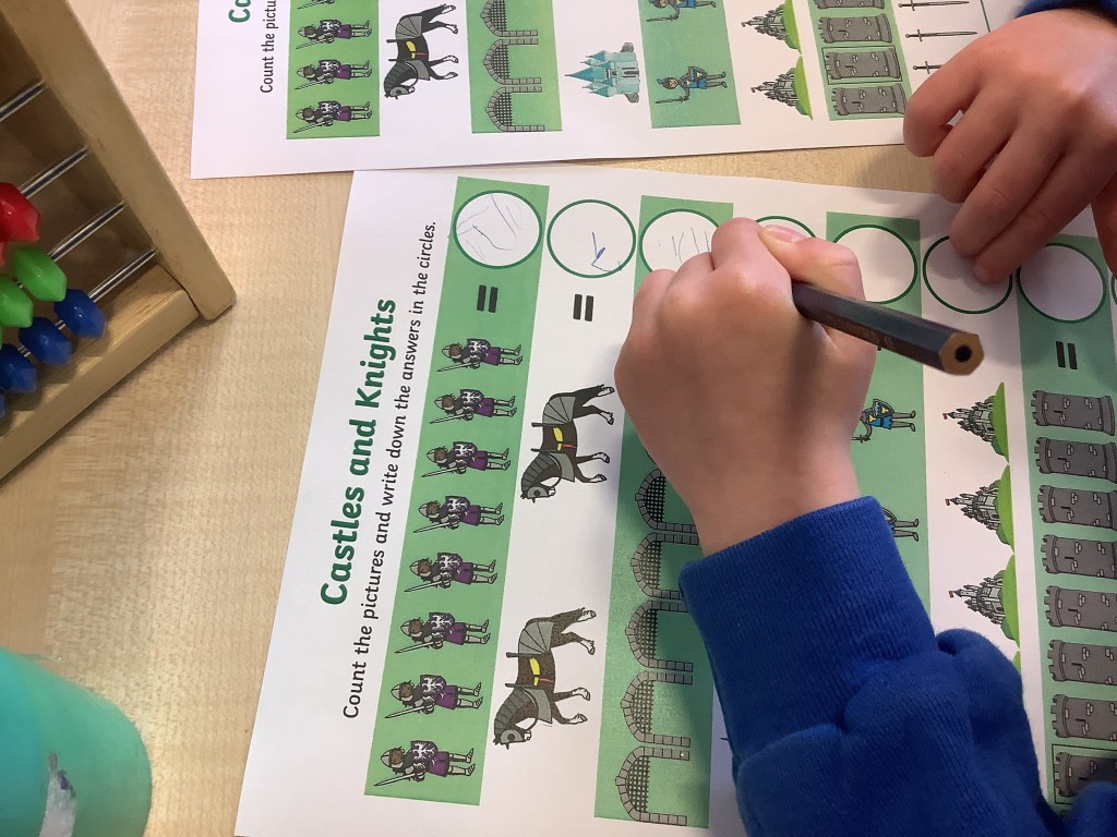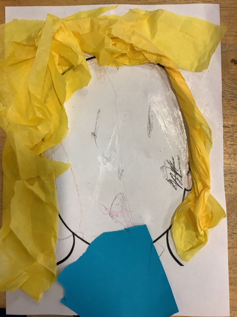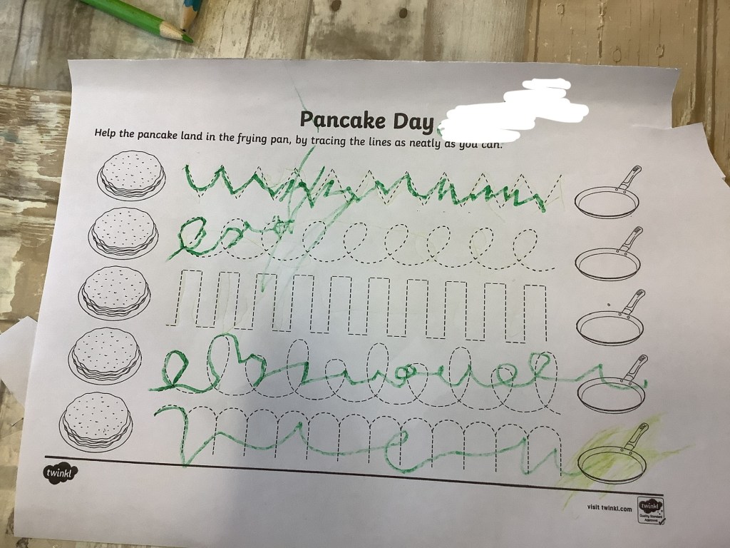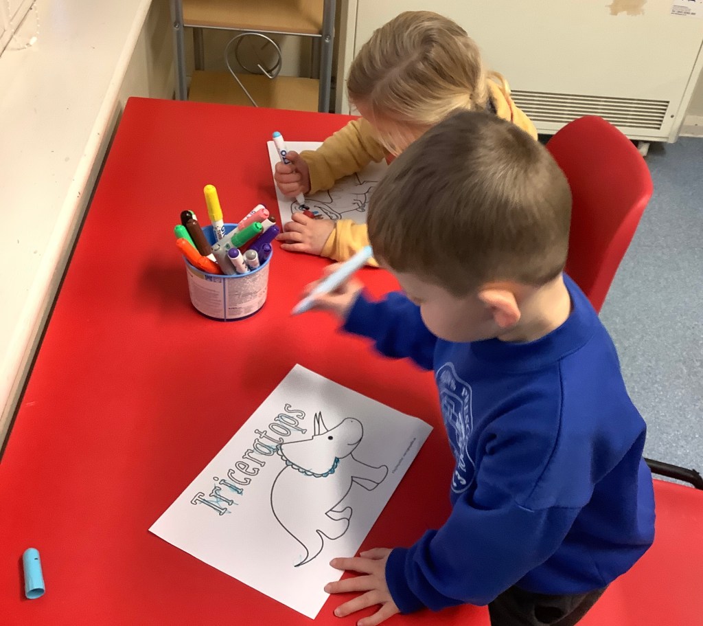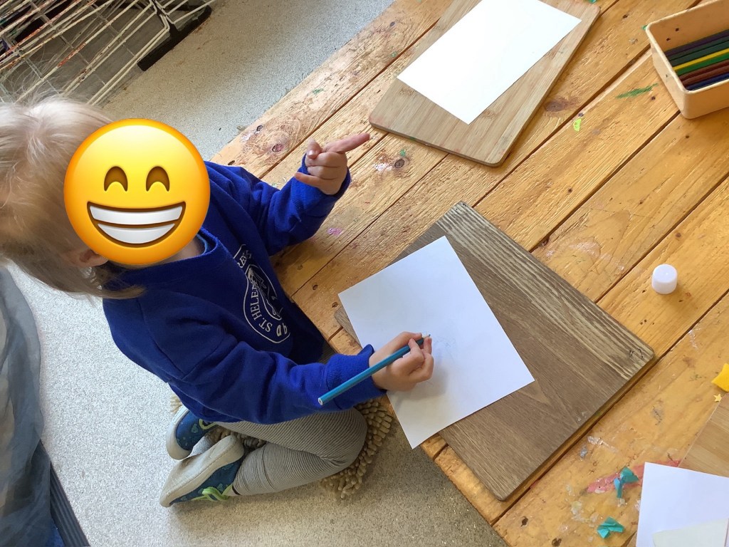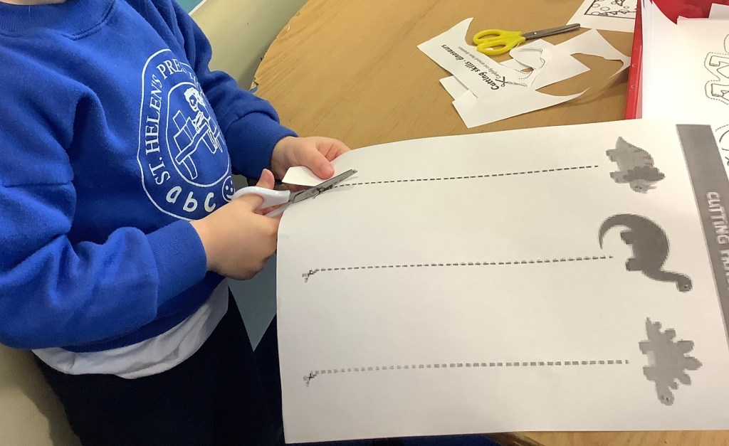 The children have been practising concentration and control, following lines using scissors, or pencils, and colouring sheets. And some children had a turn in the woodwork area, creating their own masterpieces.