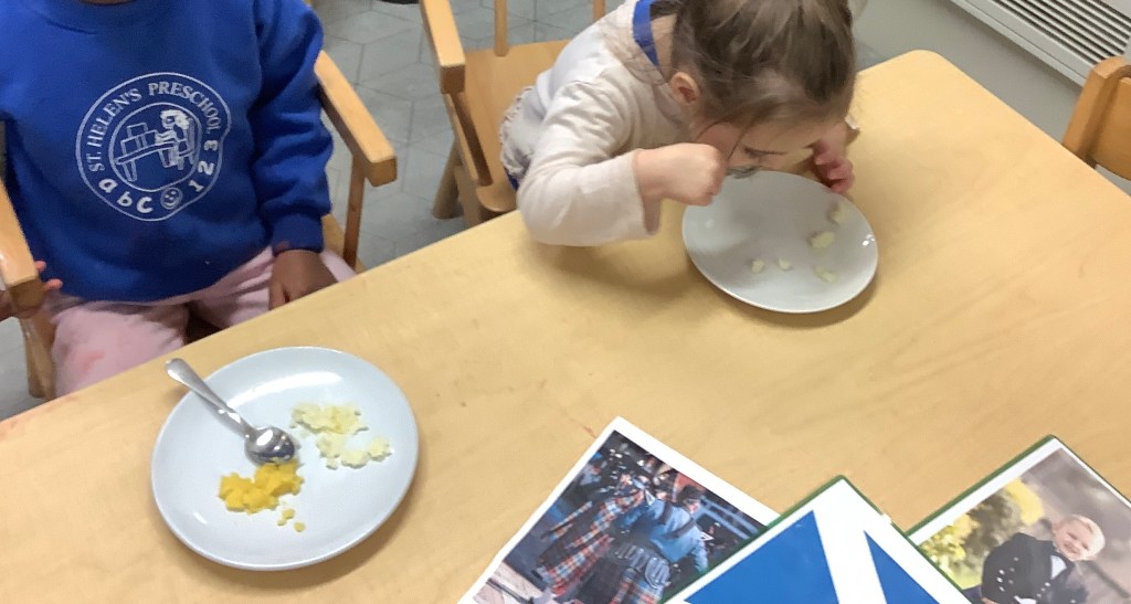 We started the month celebrating St Andrews day, we took part in some Scottish dancing and had a special visit from 2 of our parents playing some Scottish sounds using flutes. The children tried haggis, and neeps and tattys and decorated Scottish flags.