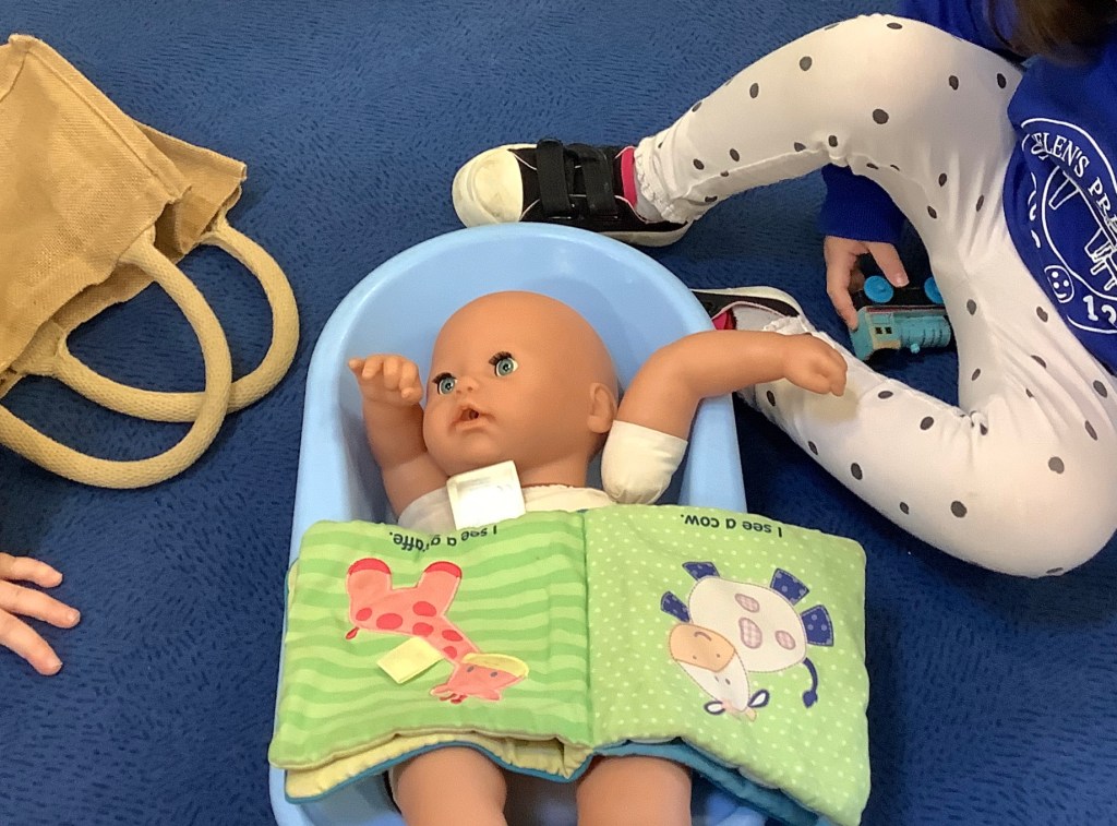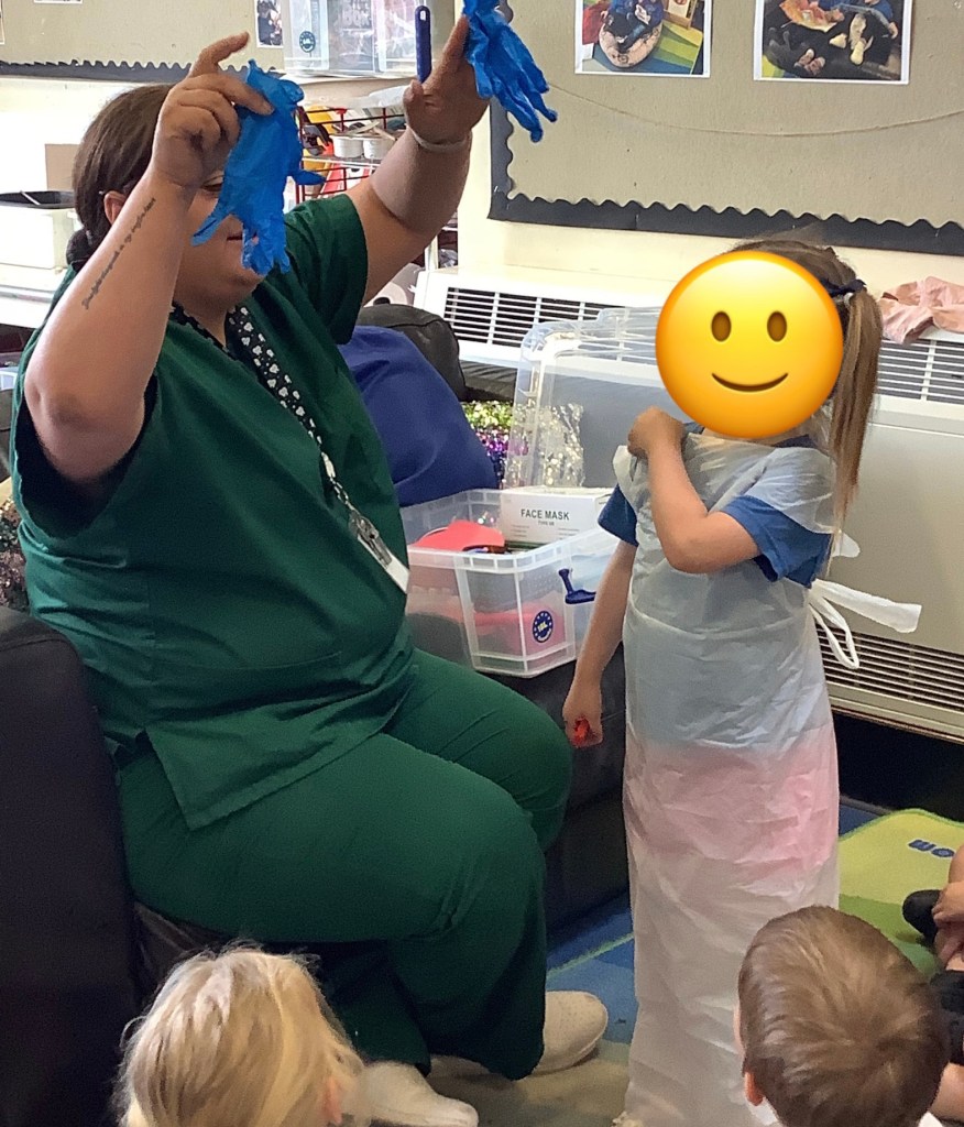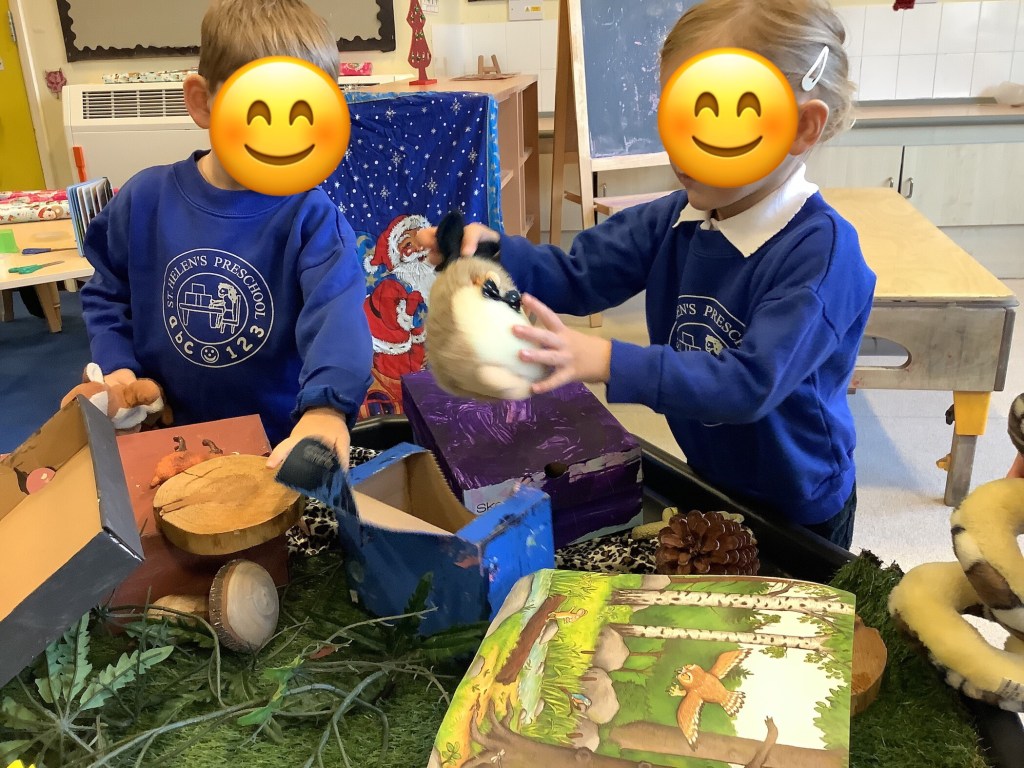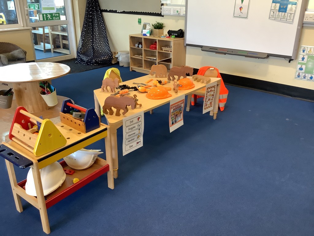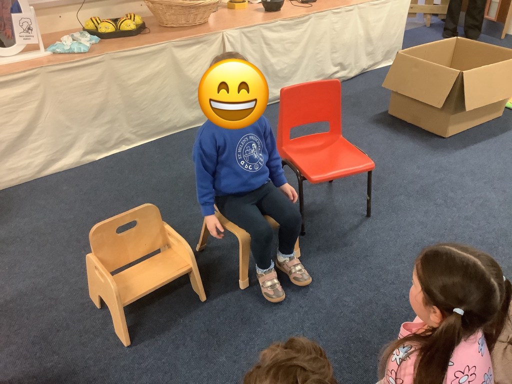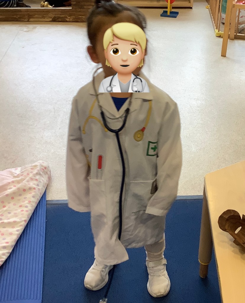 Moving on to our theme of occupations, the children have been roleplaying in St Helens doctors surgery. Using the apparatus to check their patients in, taking turns to be the patient or the doctor and even caring for some of the ladies!