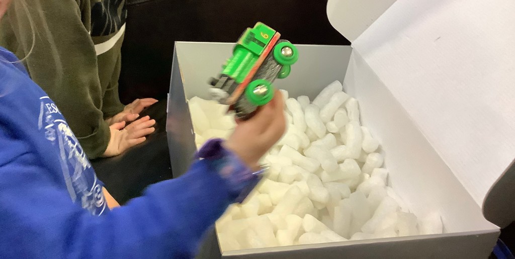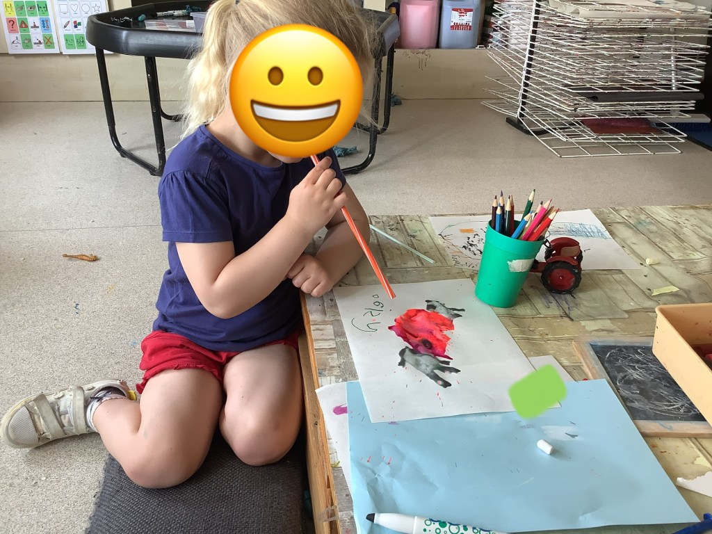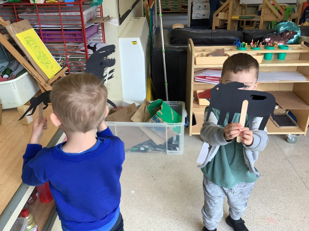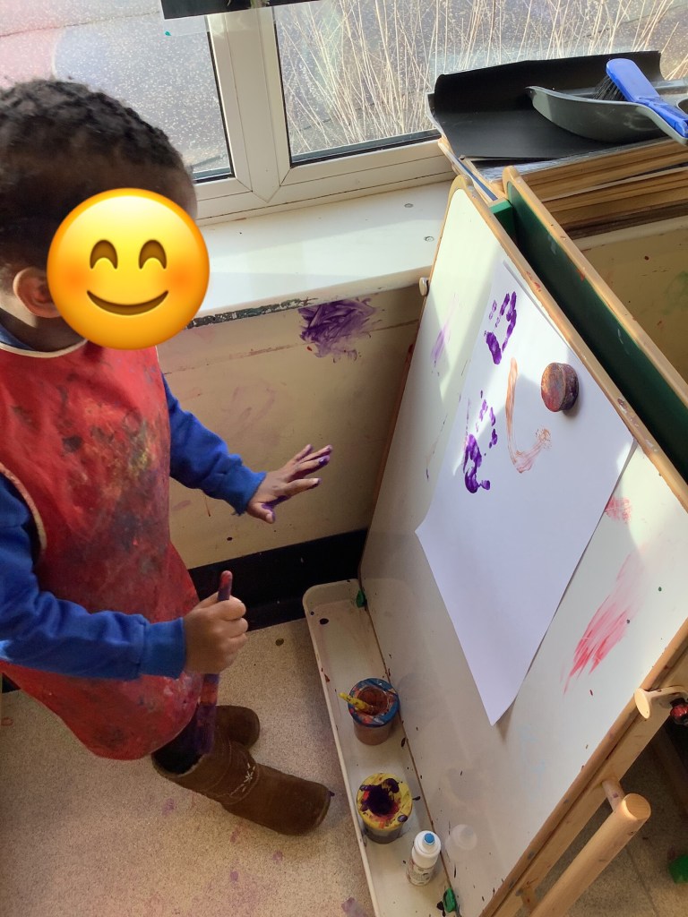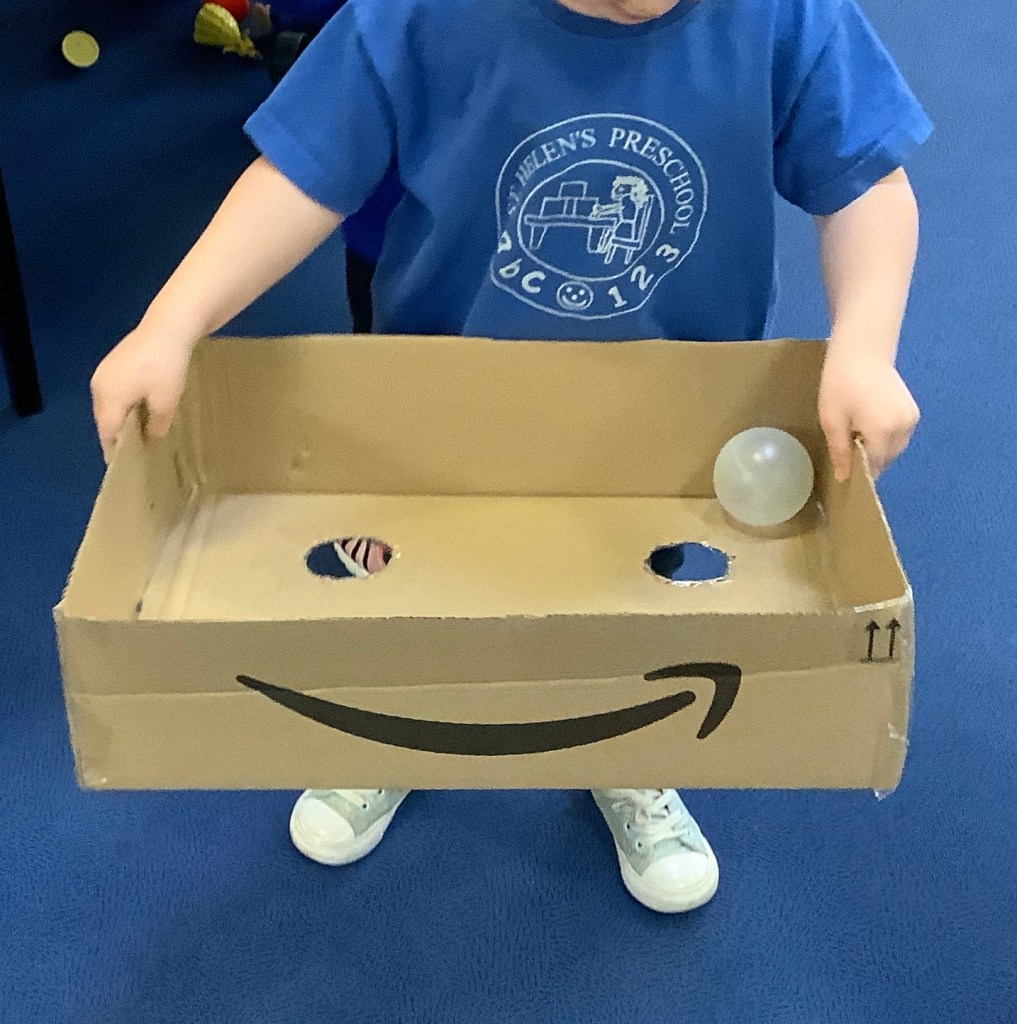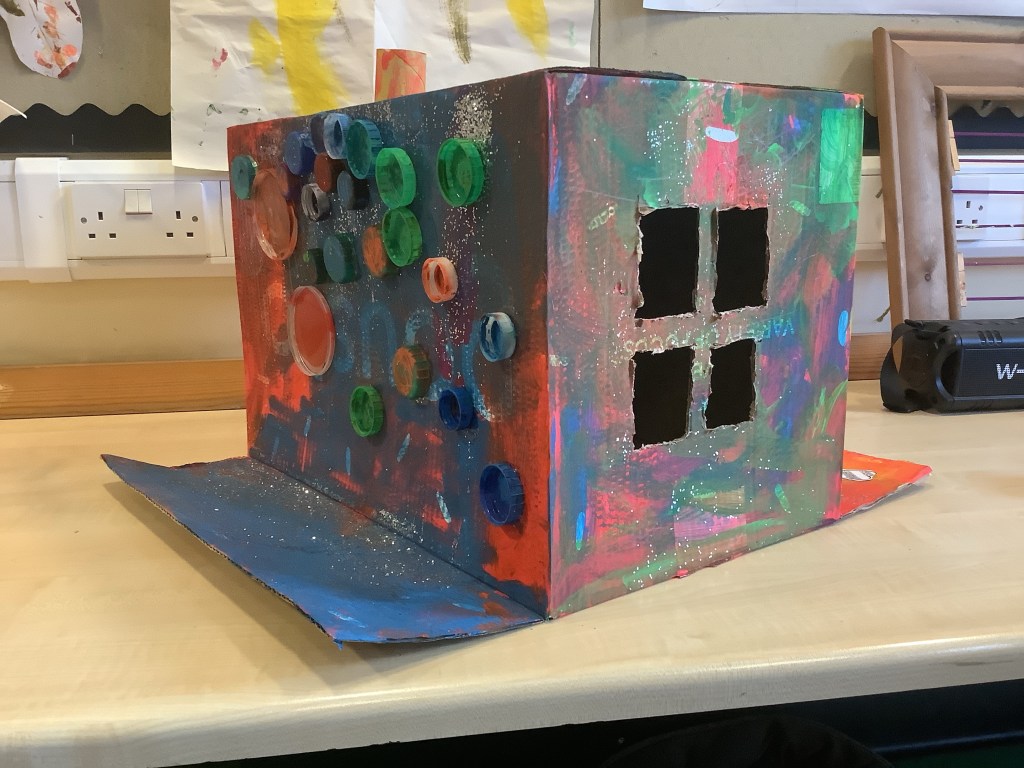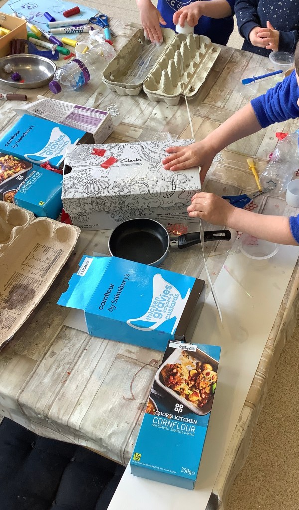 The children have been showing us some new interests this year already. Including crafting – we’re always happy to take any old boxes you don’t want especially big ones, so many learning opportunities can come from a big box!!
