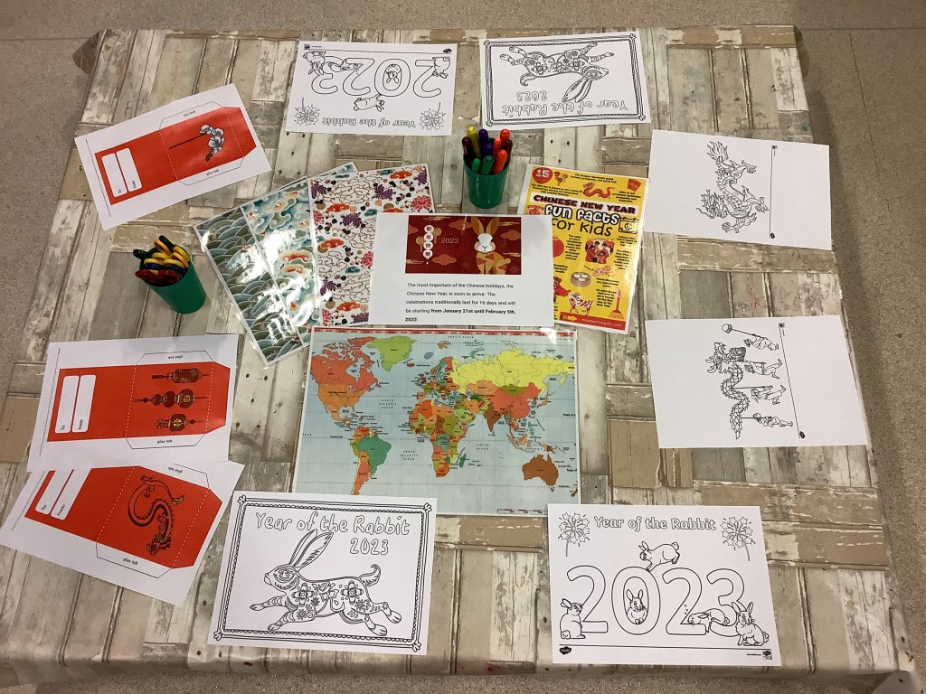 Chinese new year came along and this year is the year of the rabbit. The children tried some Chinese food at snack time, ate with chopsticks, had a go at Chinese dragon dancing, made some Chinese fans and money wallets and with lots of conversation on Chinese traditions and celebrations.