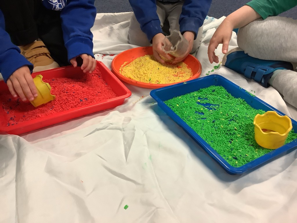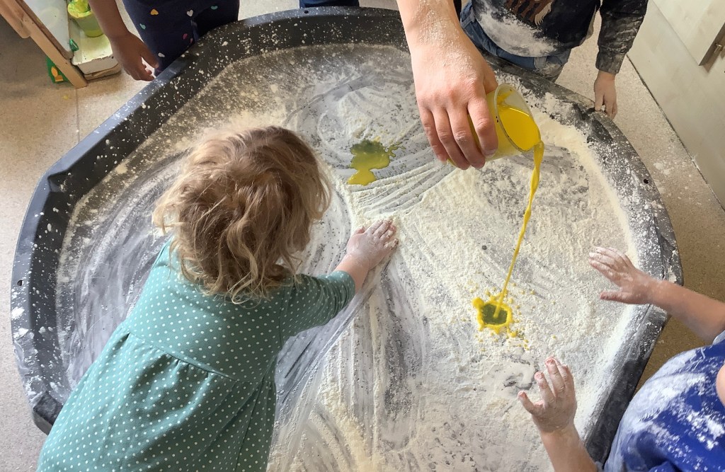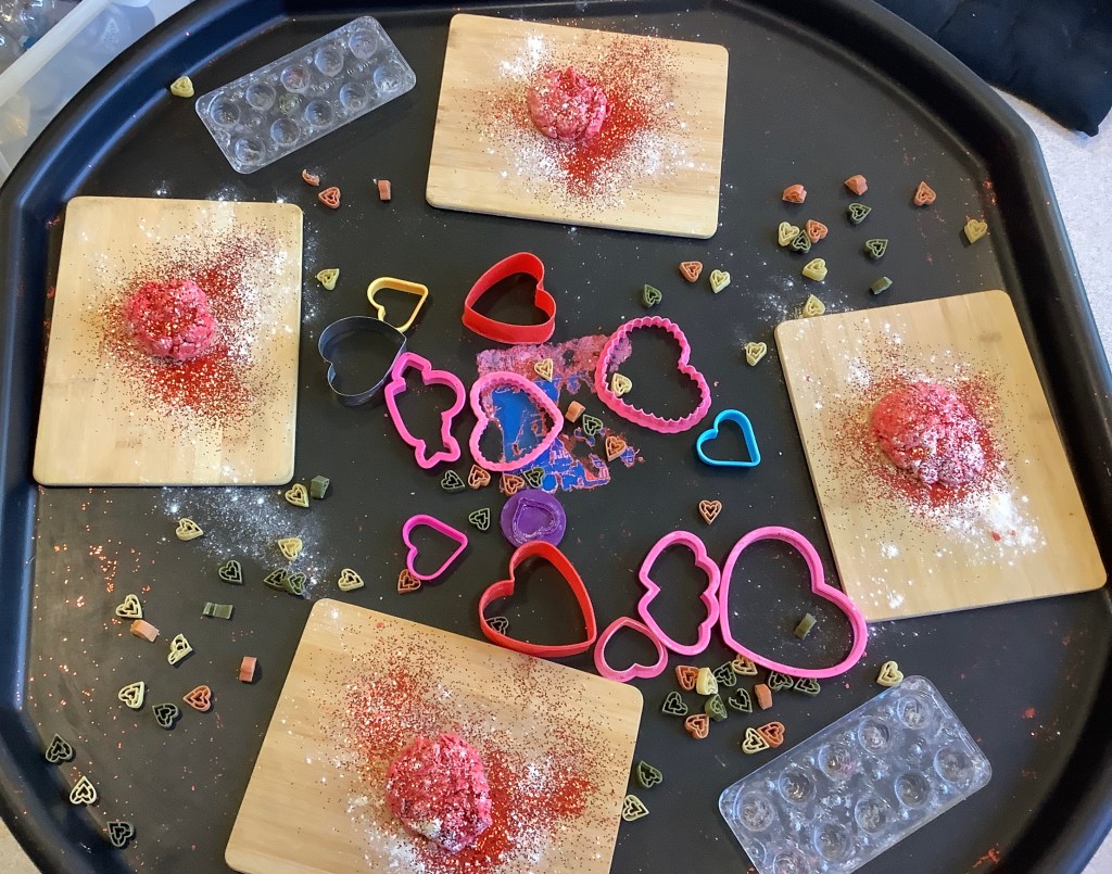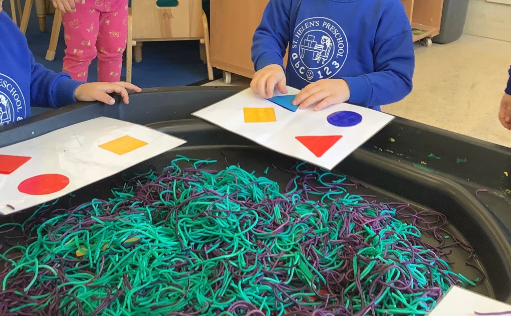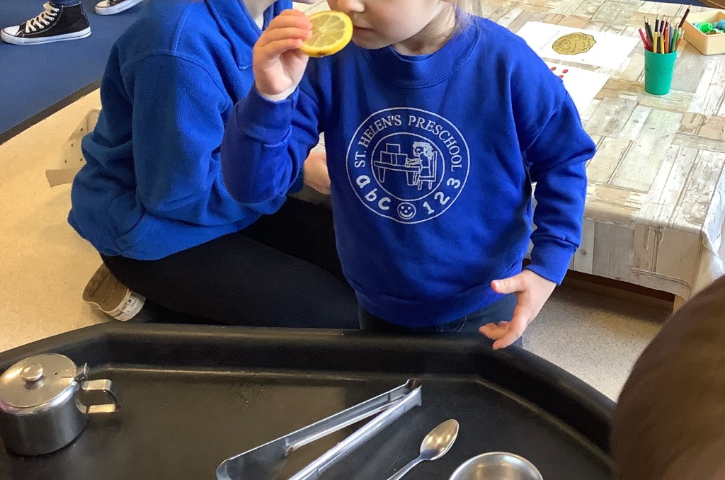 We do love our messy play here at St Helens, and this month we were not short of fun opportunities to get messy. Shaving foam, painting with sponges, heart shapes, our hands and fingers, more shaving foam, playdough (valentines themed) and a sensory fruity water tray using fruits we have on our pancakes.