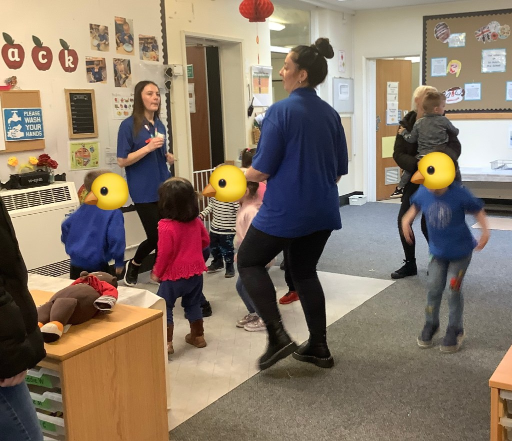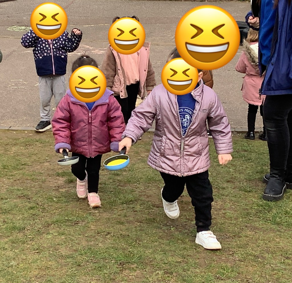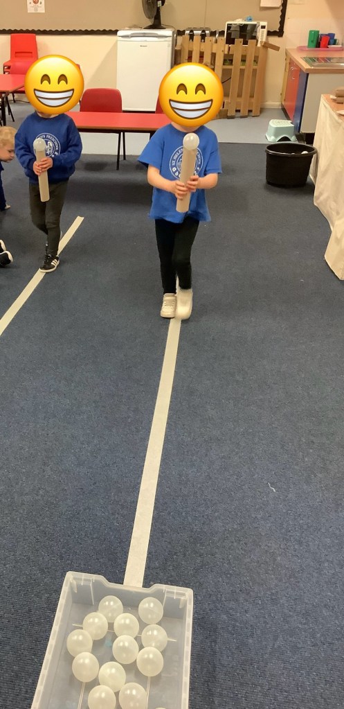Indoor and outdoor physical activities this month saw us scoring goals into happy and sad themed goals, playing musical statues then when the music stopped the children had to find the correct coloured heart and stand by it. The great pancake race took place during pancake week (like egg and spoon race… but with a pancake… in a frying pan) what fun we have had! We introduced Danny Go Go (you’re welcome parents) to our music and movement sessions! The ice king is now a firm daily favourite, the monkey song coming a close second.
