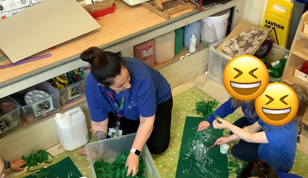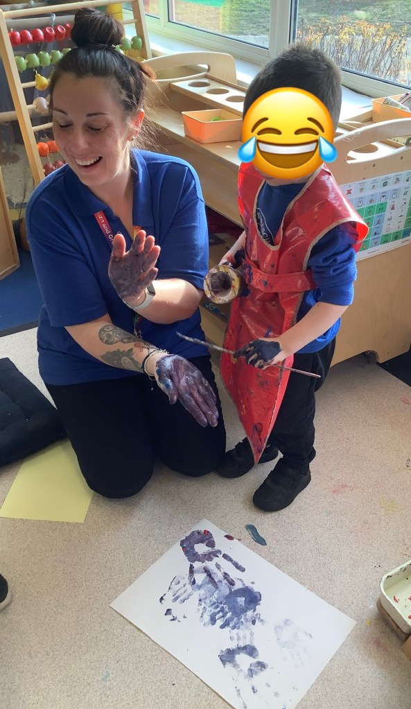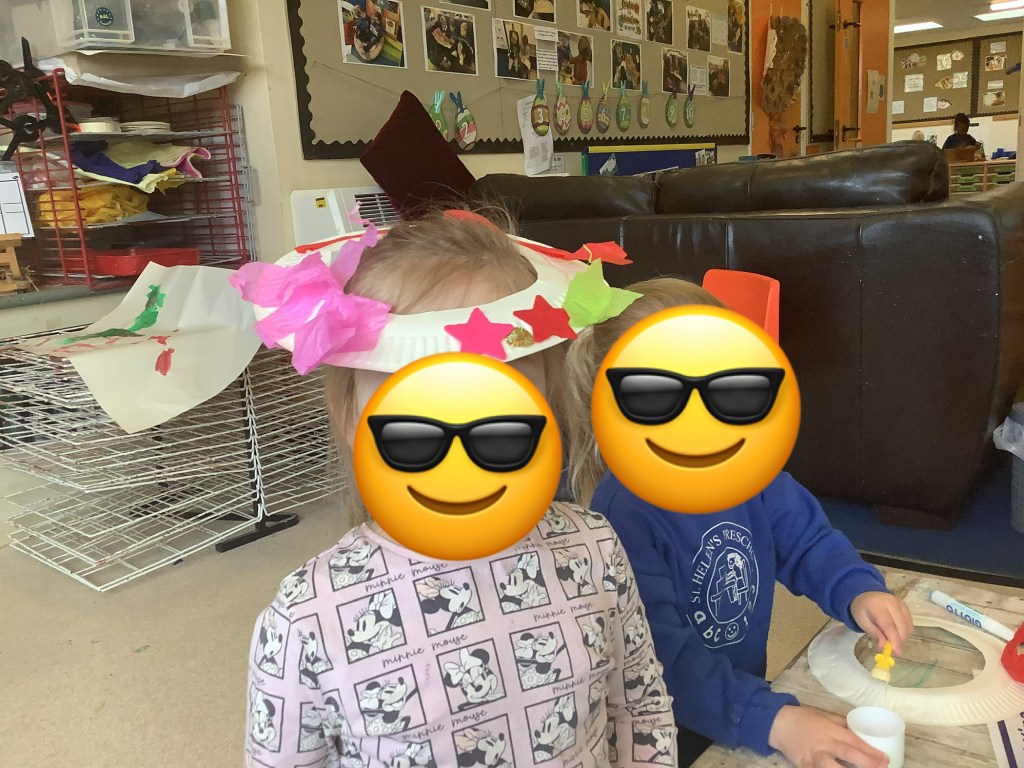Something new this year we tried out some activities “just for fun” (even though we do this all the time anyway) it is so important to look after your wellbeing and just have fun. We jumped in muddy puddles, grew sea dragons, painted biscuits, sang into microphones, played with a SPACESHIP, practised hammer and nails, had a spa day and more!! The children have talked about these activities ever since, we’ve revisited some, enhancing them by adding resources relating to our planning and next steps. So much learning is done even through these fun activities, more importantly we experienced sheer joy, including staff.