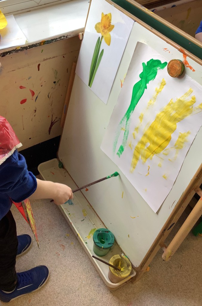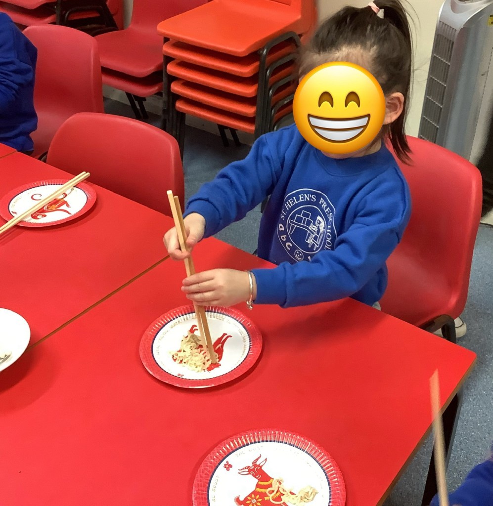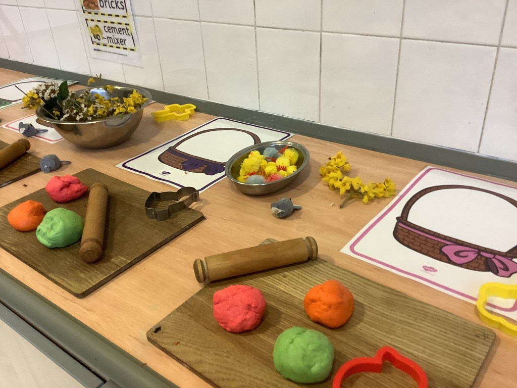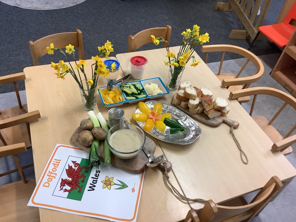 This term we’ve celebrated lots of themes and traditions including… National story telling week where we welcomed many special visitors in to read to us, some coming in their uniforms and talking about the work they do! Lunar new year, with a tasting session, dancing, writing Chinese numbers and more! Pancake day, with of course pancakes for snack, playdough and counting activities! Mother’s Day, St David’s day, and St Patrick’s day.