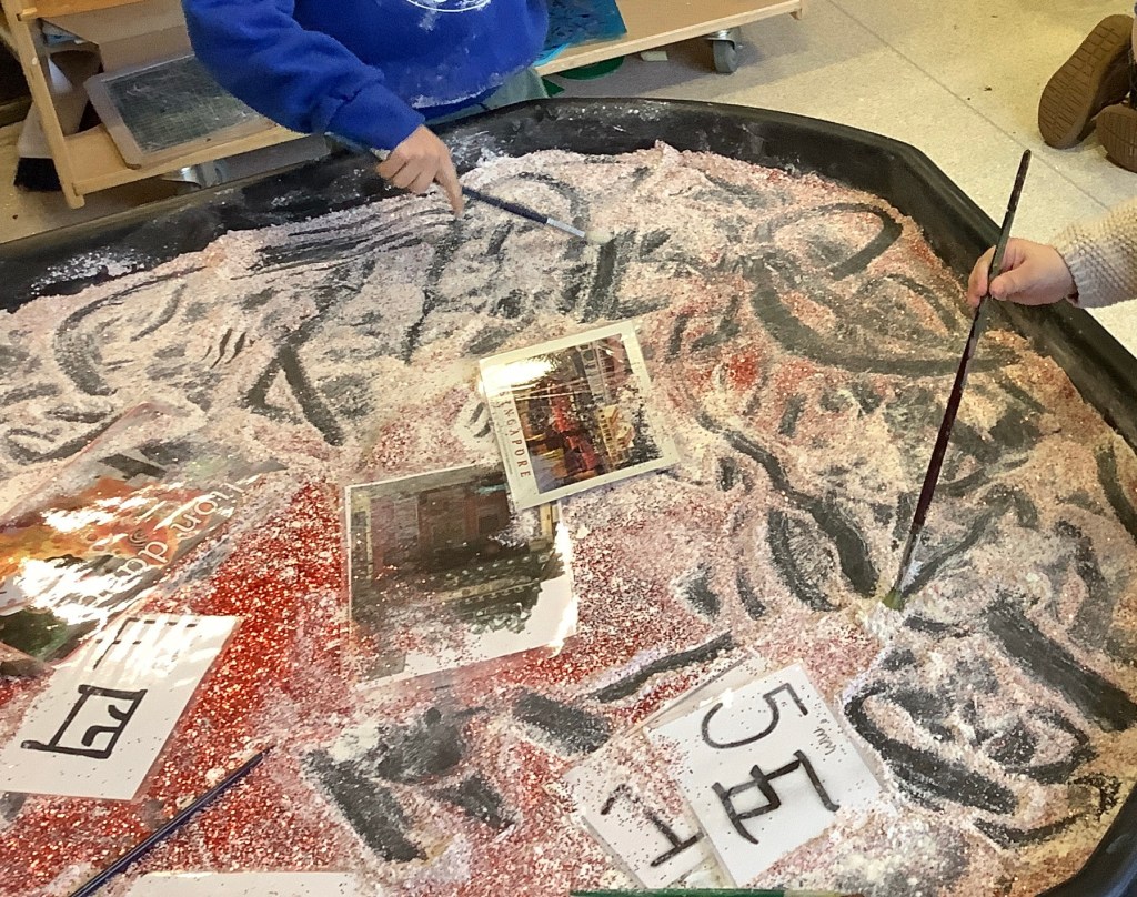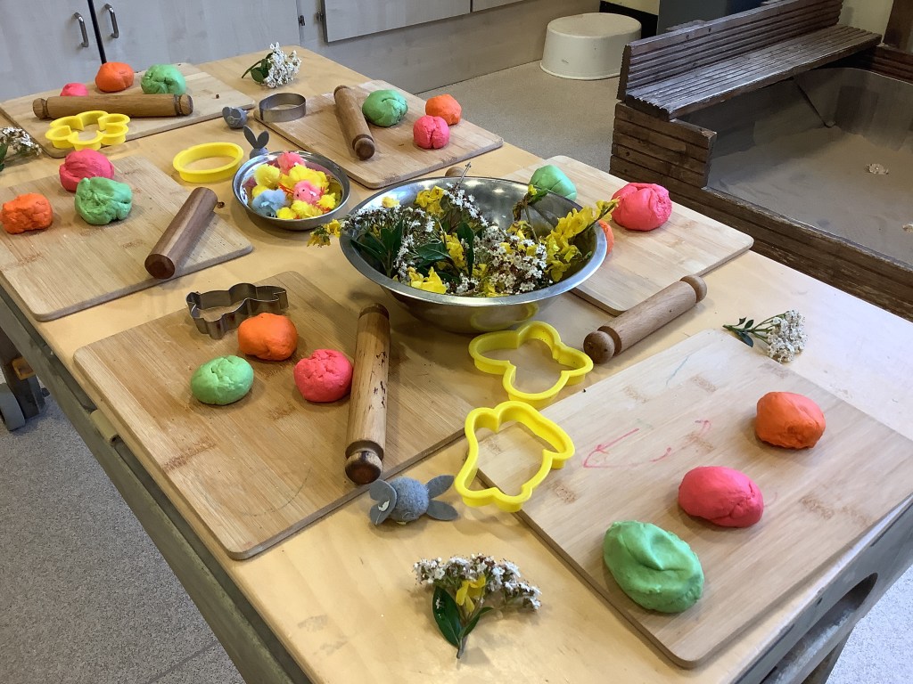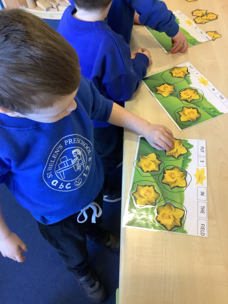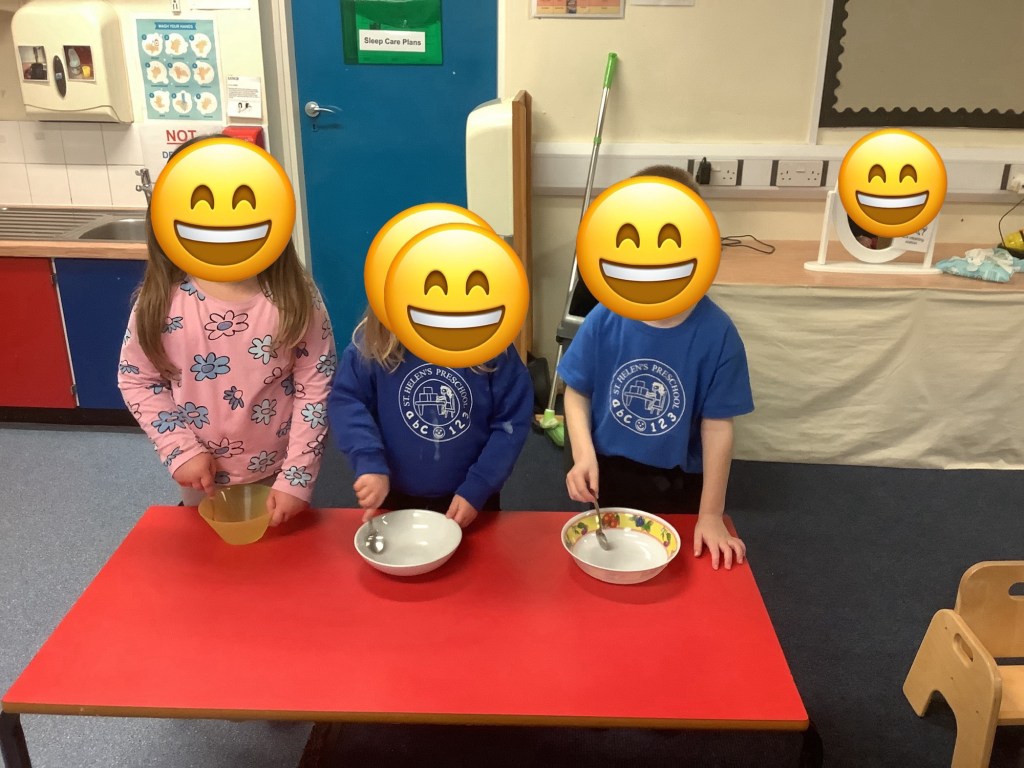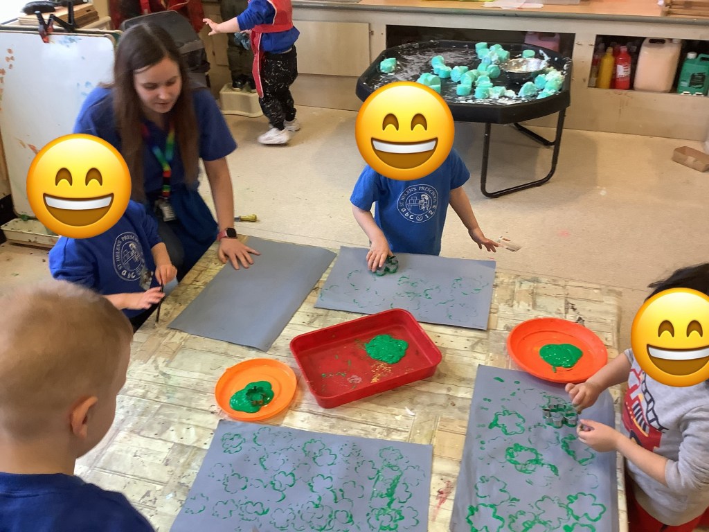 This term we’ve celebrated lots of themes and traditions including… National story telling week where we welcomed many special visitors in to read to us, some coming in their uniforms and talking about the work they do! Lunar new year, with a tasting session, dancing, writing Chinese numbers and more! Pancake day, with of course pancakes for snack, playdough and counting activities! Mother’s Day, St David’s day, and St Patrick’s day.