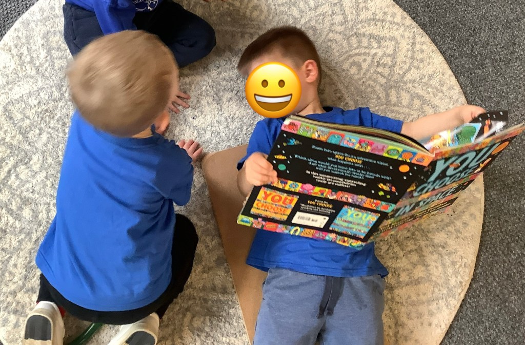 What a great time we had splashing in big puddles in the garden! We added powder paint and danced in the rain to music, it was the best day! Of course despite the wet suits we did get quite wet, so, after a quick change of clothes we got cosy under blankets and had a story – perfect for a rainy day… next time – hot chocolates all round 😉