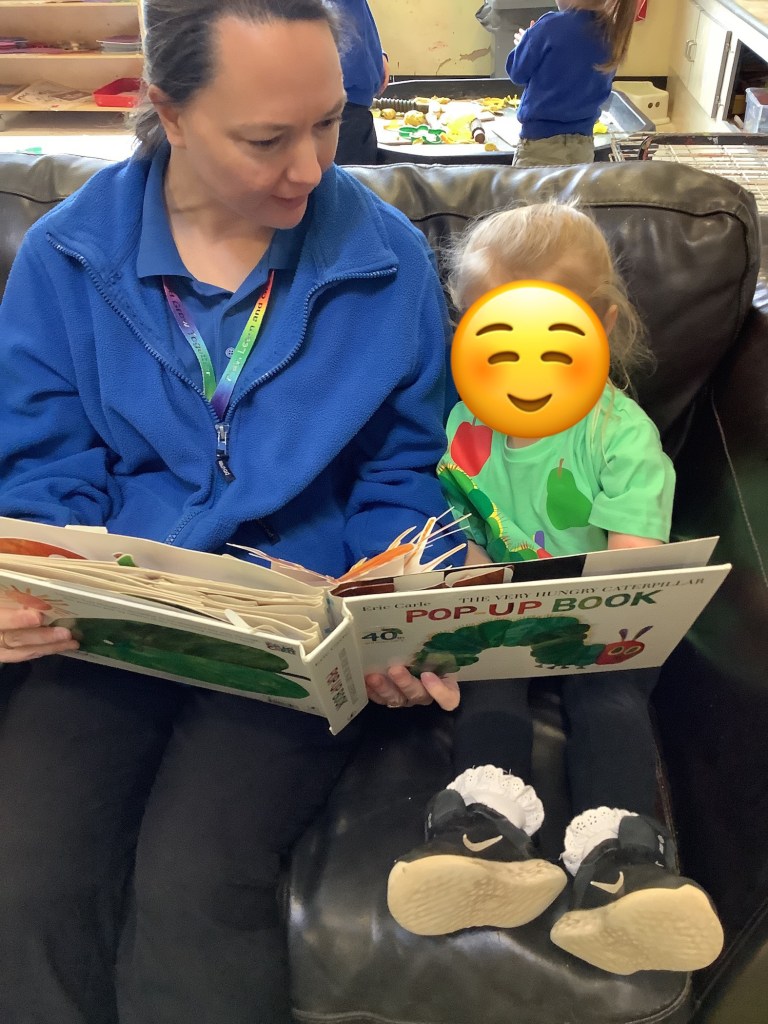 Carrying on from World Book Day the children came in wearing their costumes and brought their favourite books to share in our “book nook”. We had various book themed activities, including making a stick man, gingerbread man playdough, and story sacks.