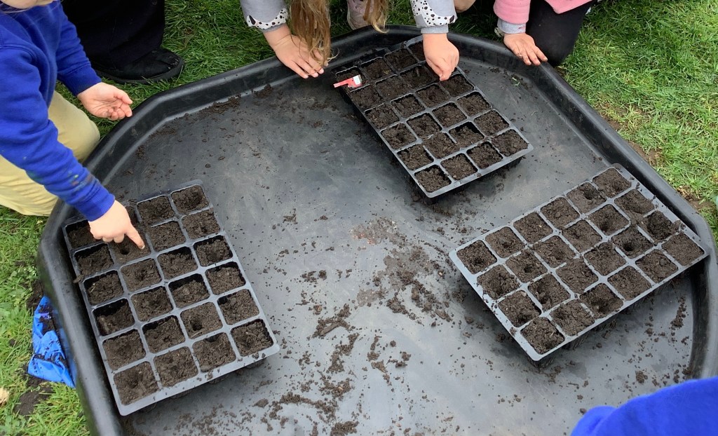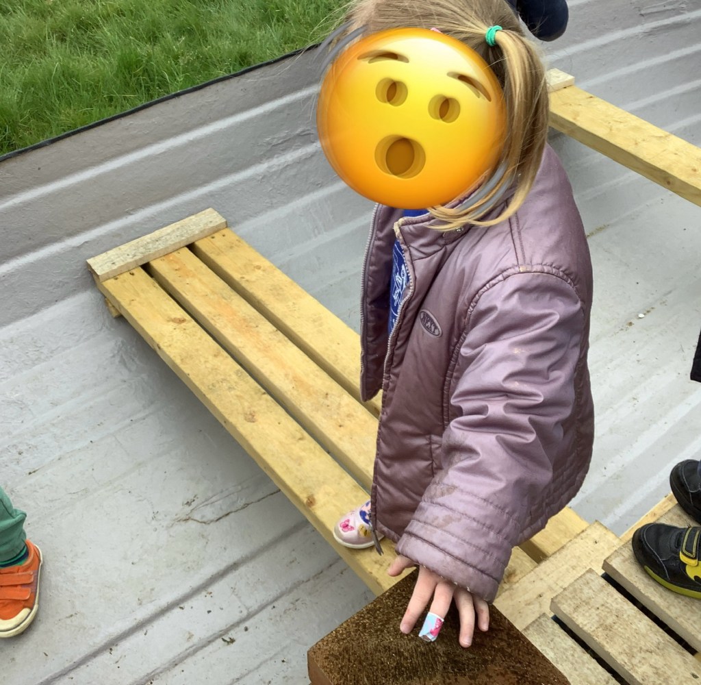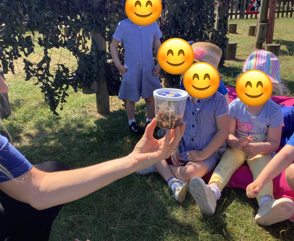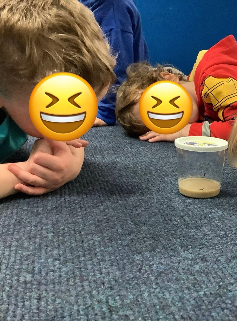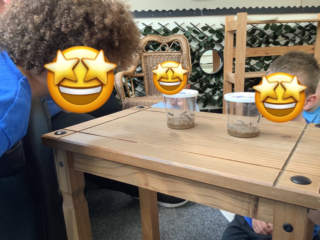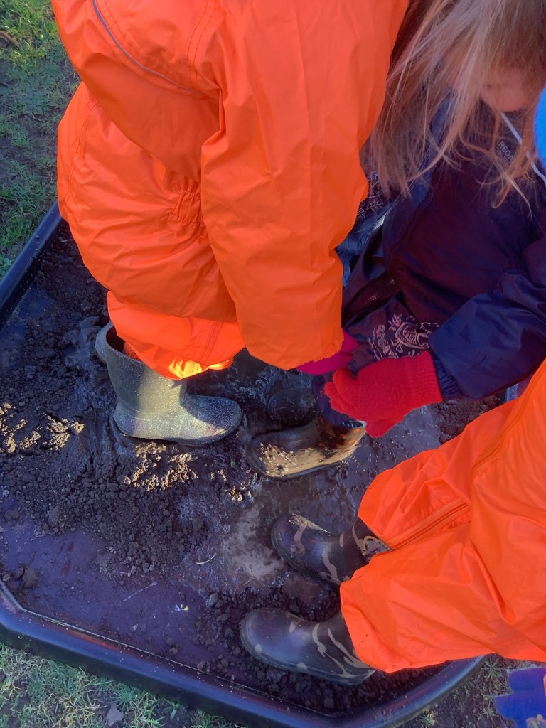 A heavy downpour of rain brought lots of wiggly worms onto the concrete. A group of children were keen to ‘save’ the worms and carefully collected them before placing them in one of our flower pots.