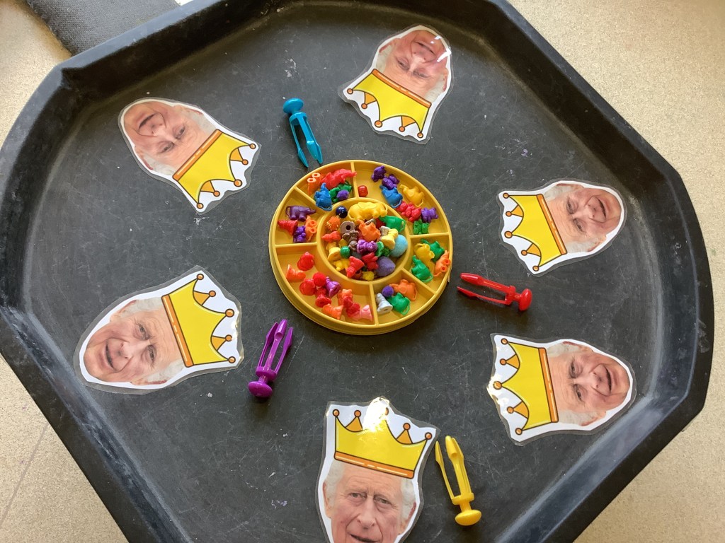 Then it was time to introduce the “kings coronation.” We added many activities including, afternoon tea for snack, creating our own crowns, stories, even a throne to have a go at being “royal”.
