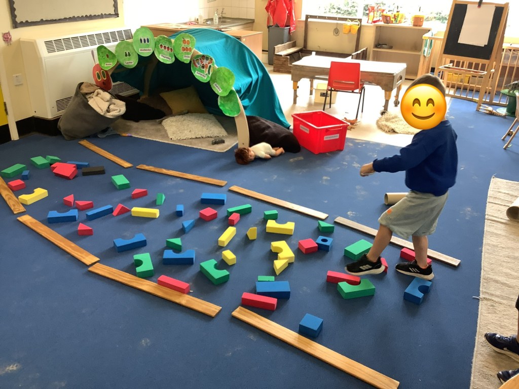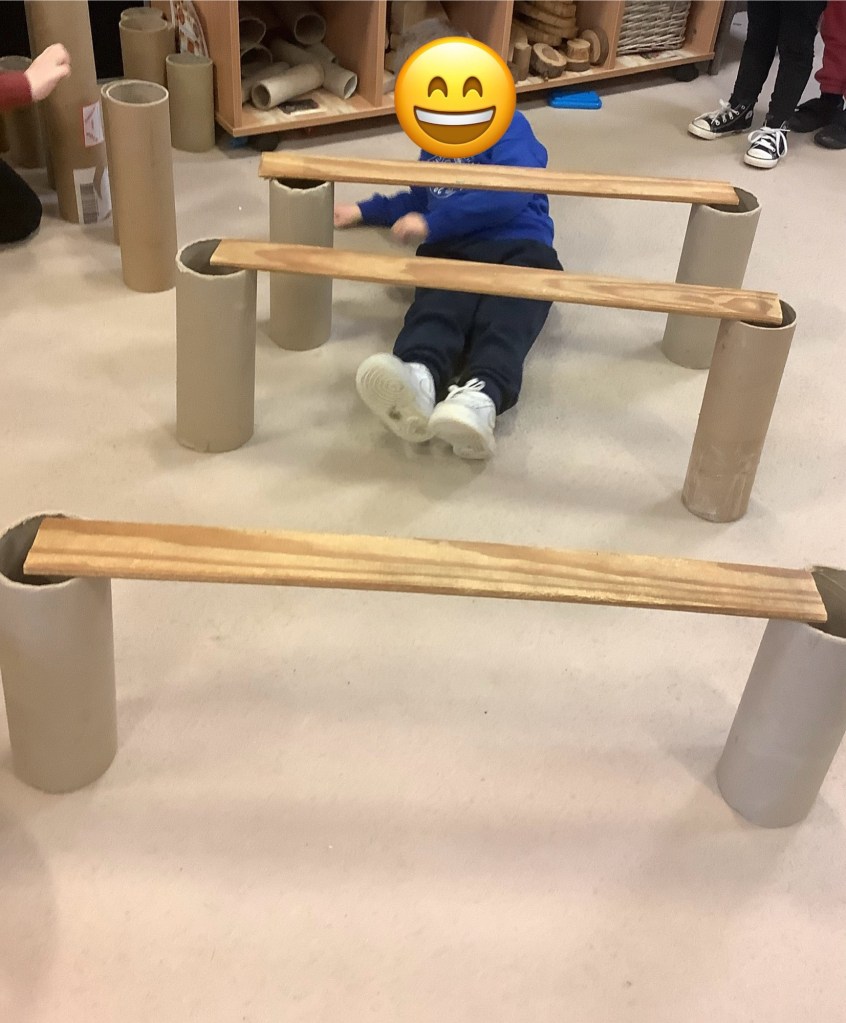 Lots of indoor physical play due to the bad weather, one day we had a giant obstacle course from the yellow room all the way to the lunch room!!