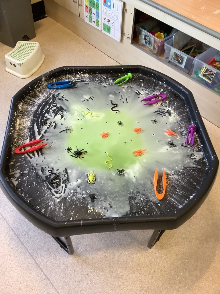 A MASSIVE theme this term has been “the show” lots of conversation about the cinema, theatre shows, circus etc. We created our own stage with lights, and even bought a karaoke machine. The children could take turns to put on a show for their friends either a dance, song or using puppets. This is a great opportunity to build on confidence and social skills, also sharing kindness to others by supporting them during their turn.