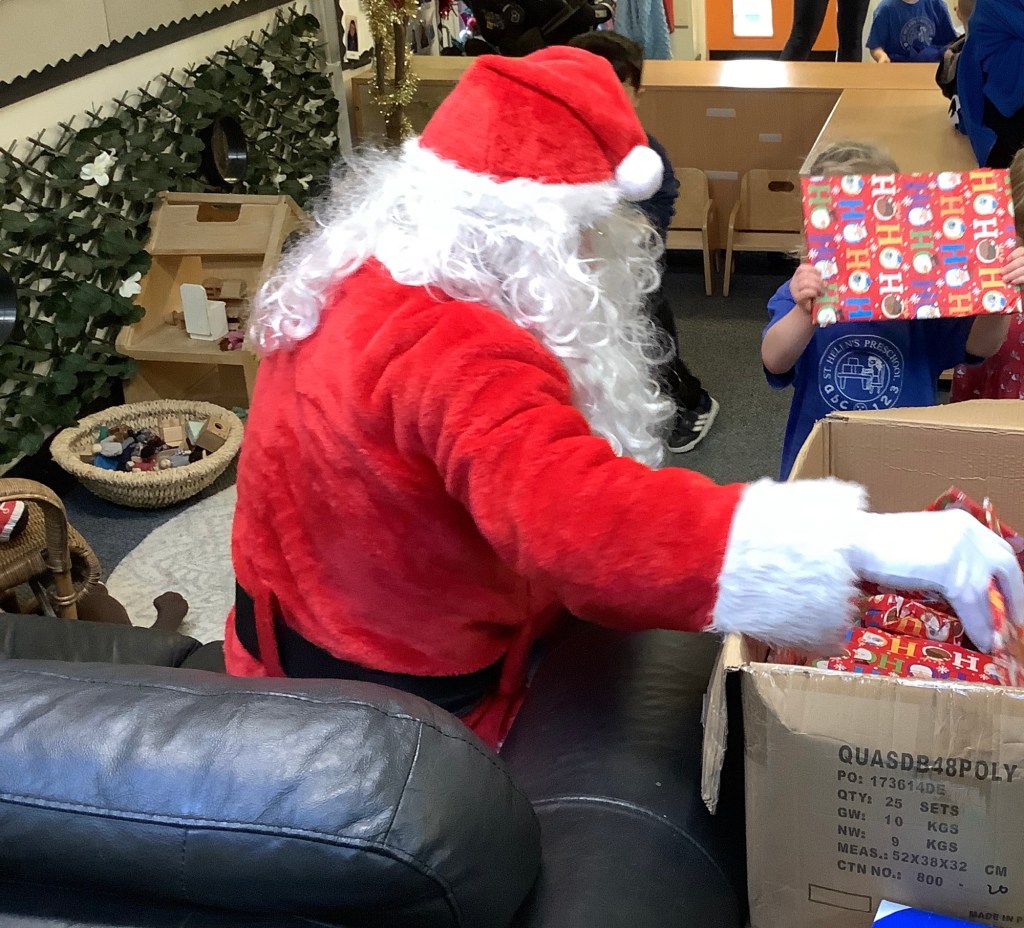 SANTA CAME!! What a special treat, he joined in with some songs from our Christmas singing box and gave out presents… we even heard the reindeer landing on the roof.