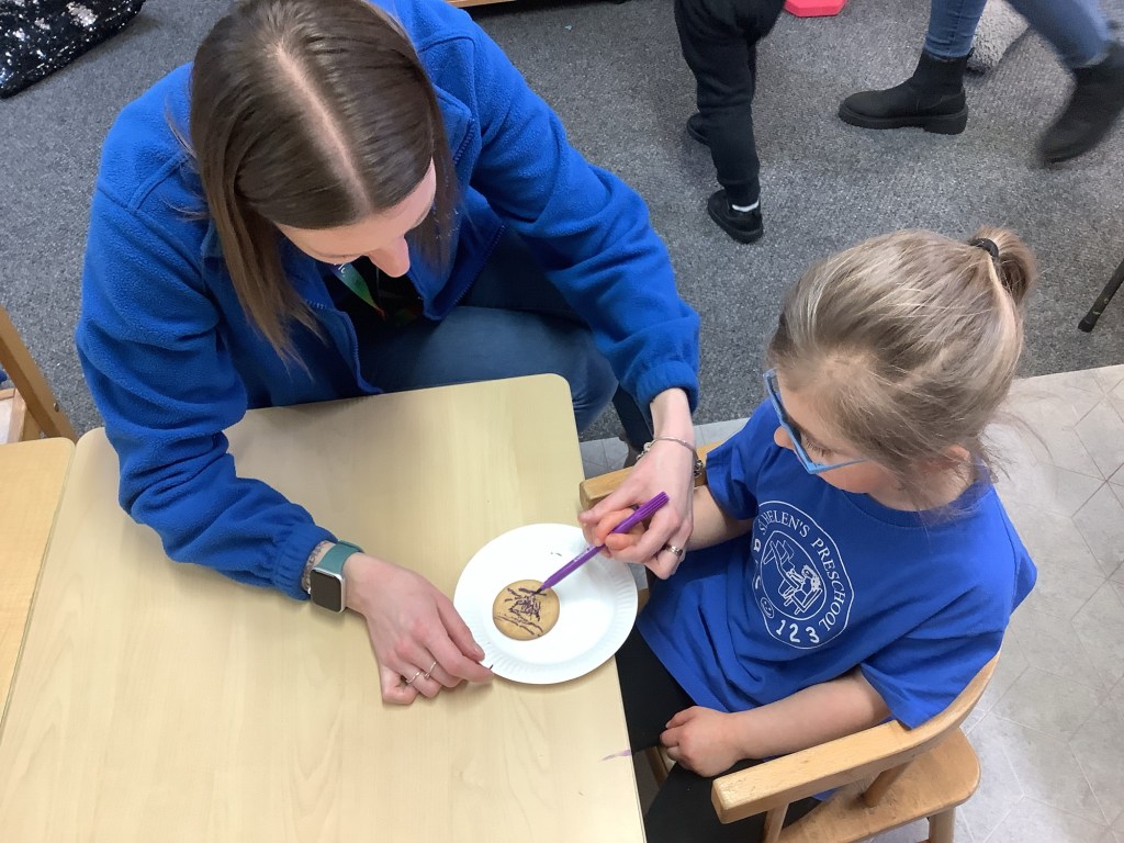 We finished the month with biscuit decorating and we all got to pull a cracker with our friends!!
