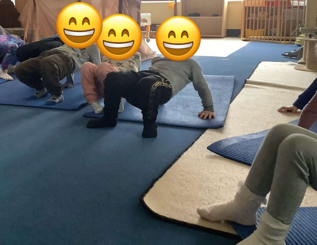 We’ve been practising using our motor skills this term, with obstacle courses, playdough disco, building using the construction resources, balance during music and movement and yoga sessions and more.