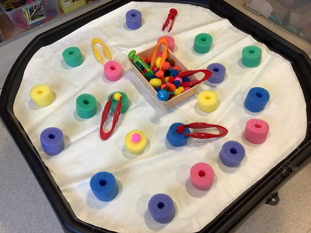 Alongside learning routines and boundaries, this month the children have been practising balance. Using tubes and paper plates with balls balanced on top, this will help them when managing plates at snack time.