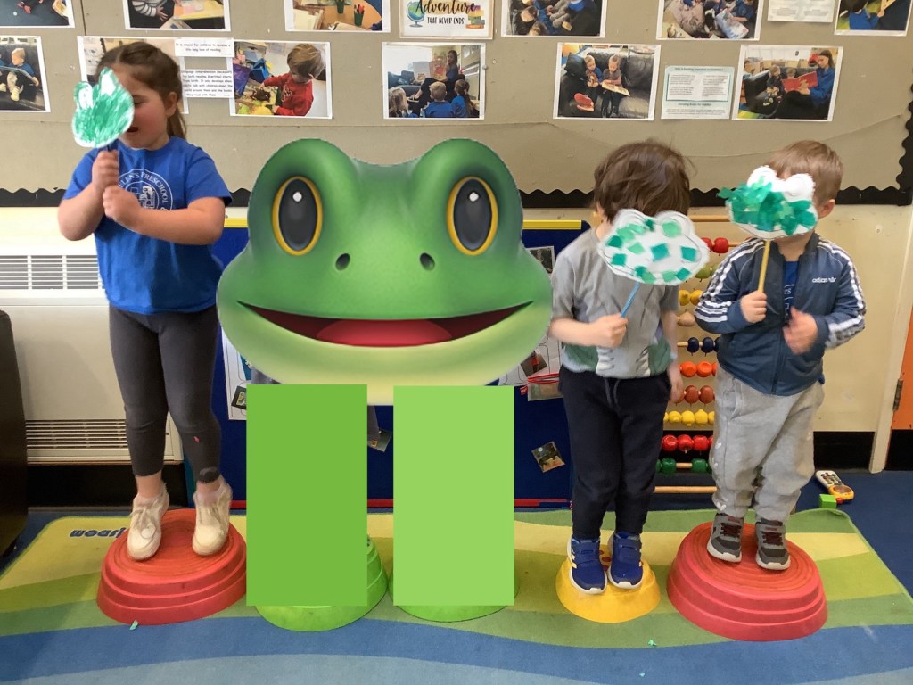 We started the term with some great activities including, a new painting experience using different kind of brushes to make blossom on a tree, colour mixing while making fairy potions, making our own frog head bands and acting out 5 little speckled frogs.