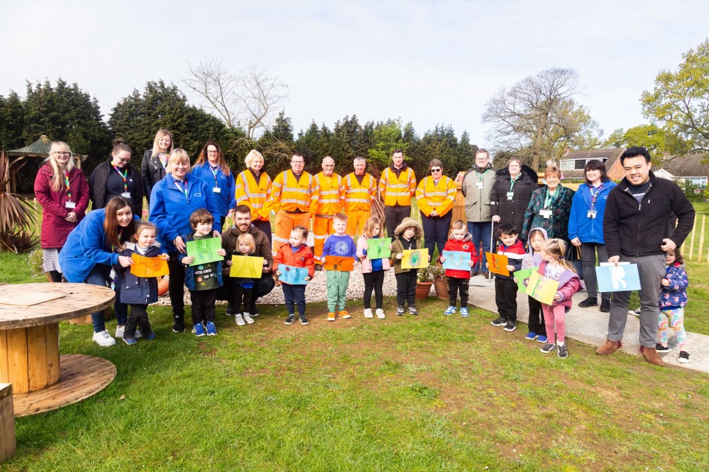 On Wednesday 24 April, St Helen’s Pre-School in Costessey, held a grand opening for their new and improved outdoor area. The space was designed by the Pre-School staff and their vision was then transformed by a fabulous team from KIER – amazingly they completed the project FREE as part of their charitable work.