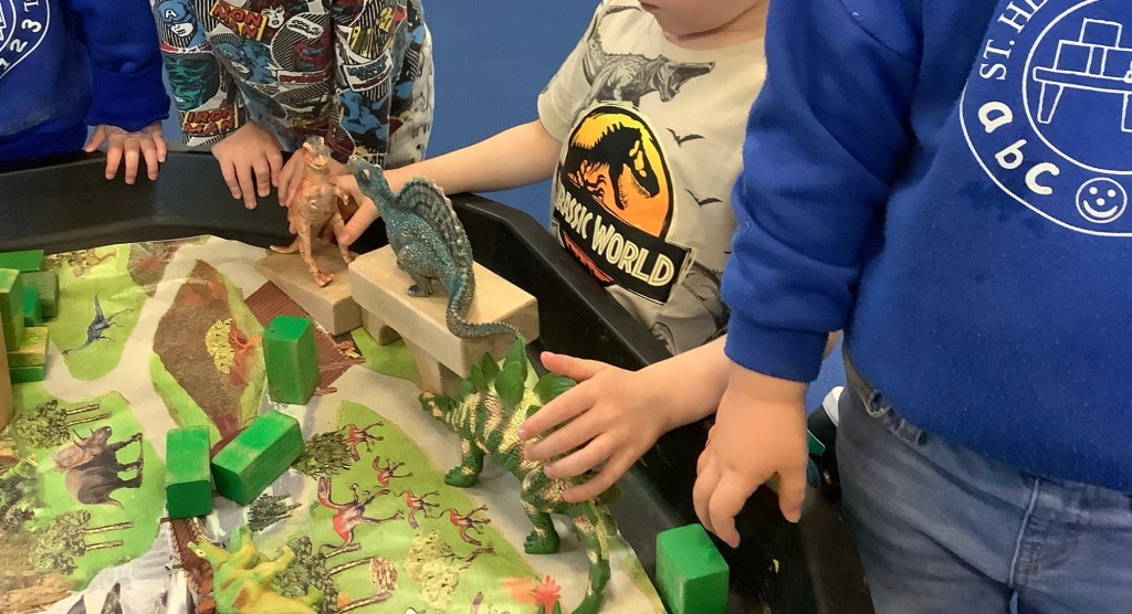 As always, dinosaurs are a firm favourite at preschool. So we transformed the lunch room into the dinosaur park!! With lots of physical play, climbing, balancing, throwing, but also building, colouring and some books to sit and read. Some boys and girls shared their stories from going to the dinosaur park.