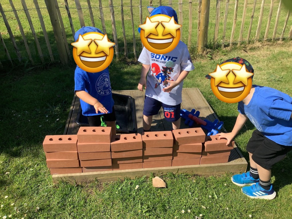 Using our new bricks and work station in the garden the children have been building walls and houses (hopefully the big bad wolf wont blow them down!! – can you guess what our book is this term???) Inside, the magnetic bricks have become a firm favourite with some children requesting to have them out each day. It takes a real team effort and lots of patience to build those tall towers.