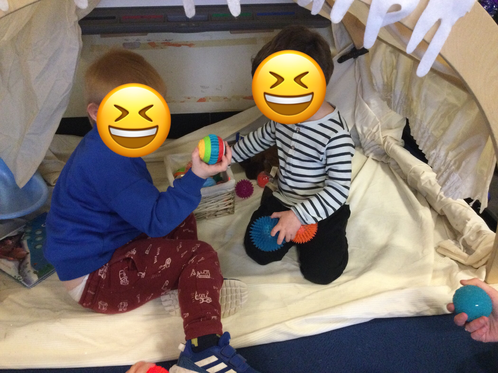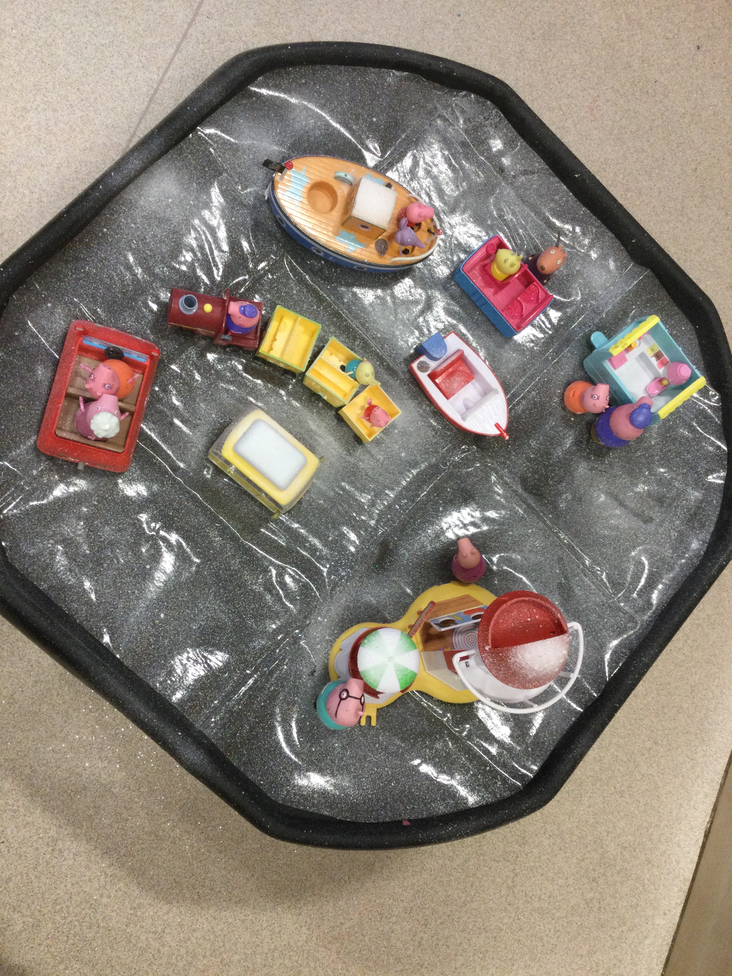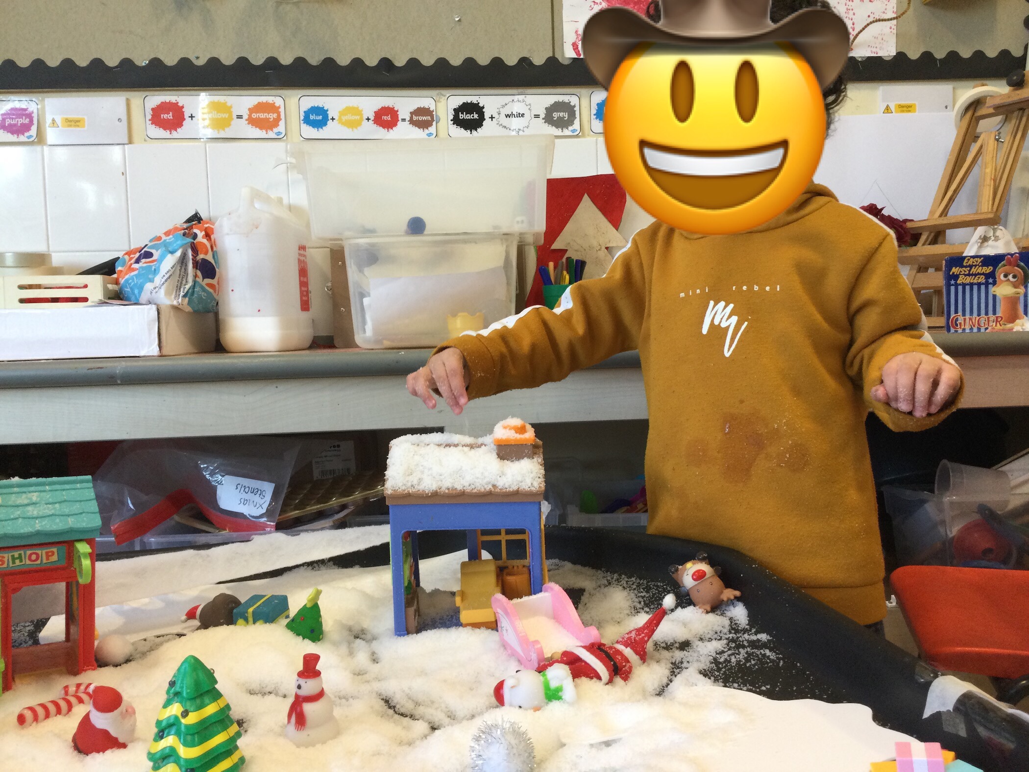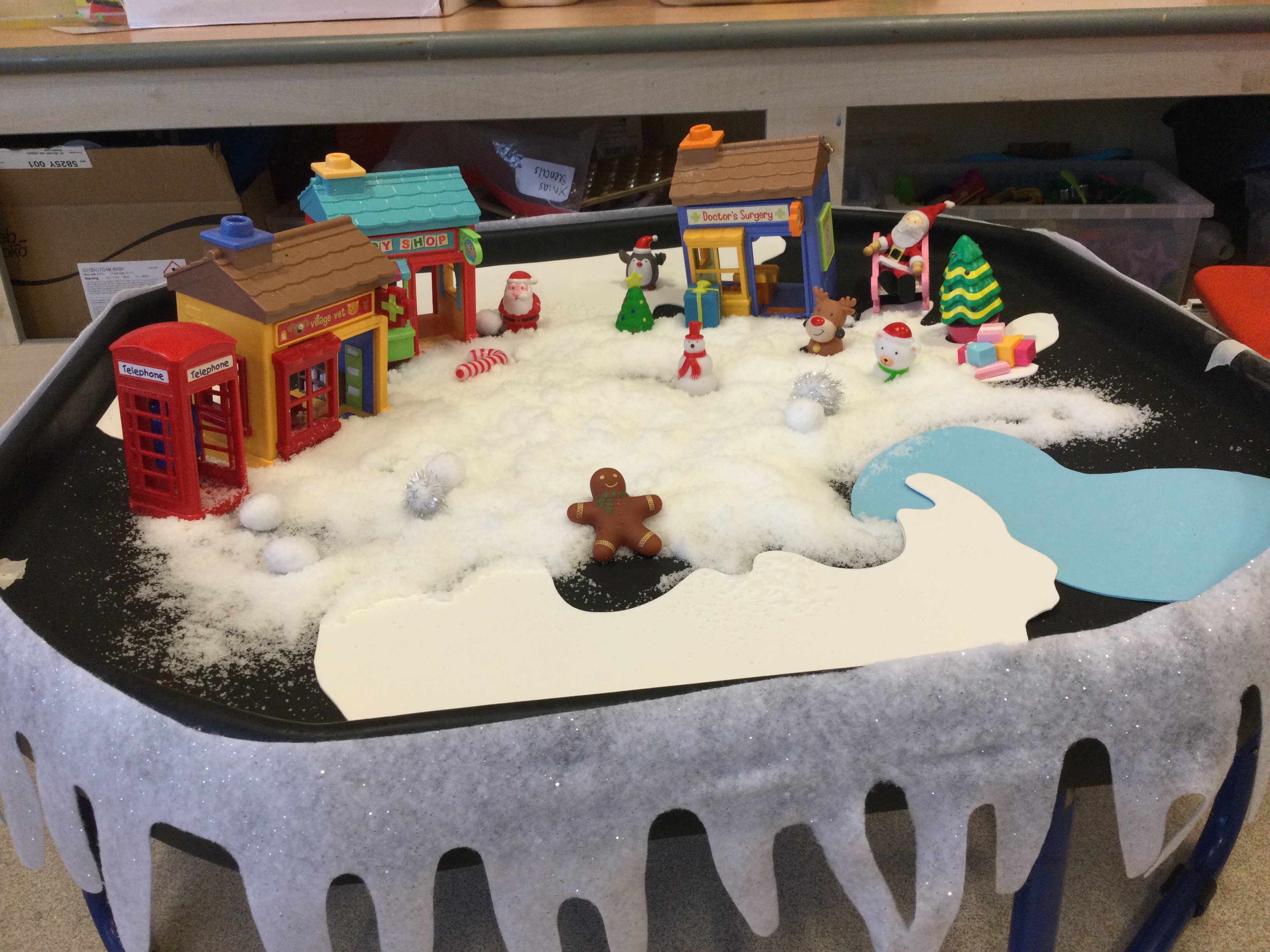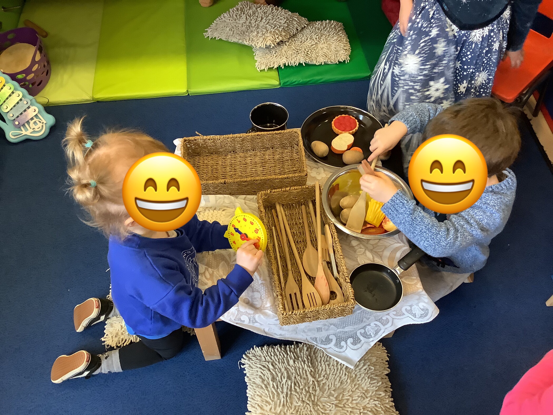 Orange room created a mini village, with real mini characters, allowing the children to role play going to each other’s homes and shops, to create a sense of belonging. Something which they have commented on during the pandemic. This also encouraged the children to recognise logos of familiar places.