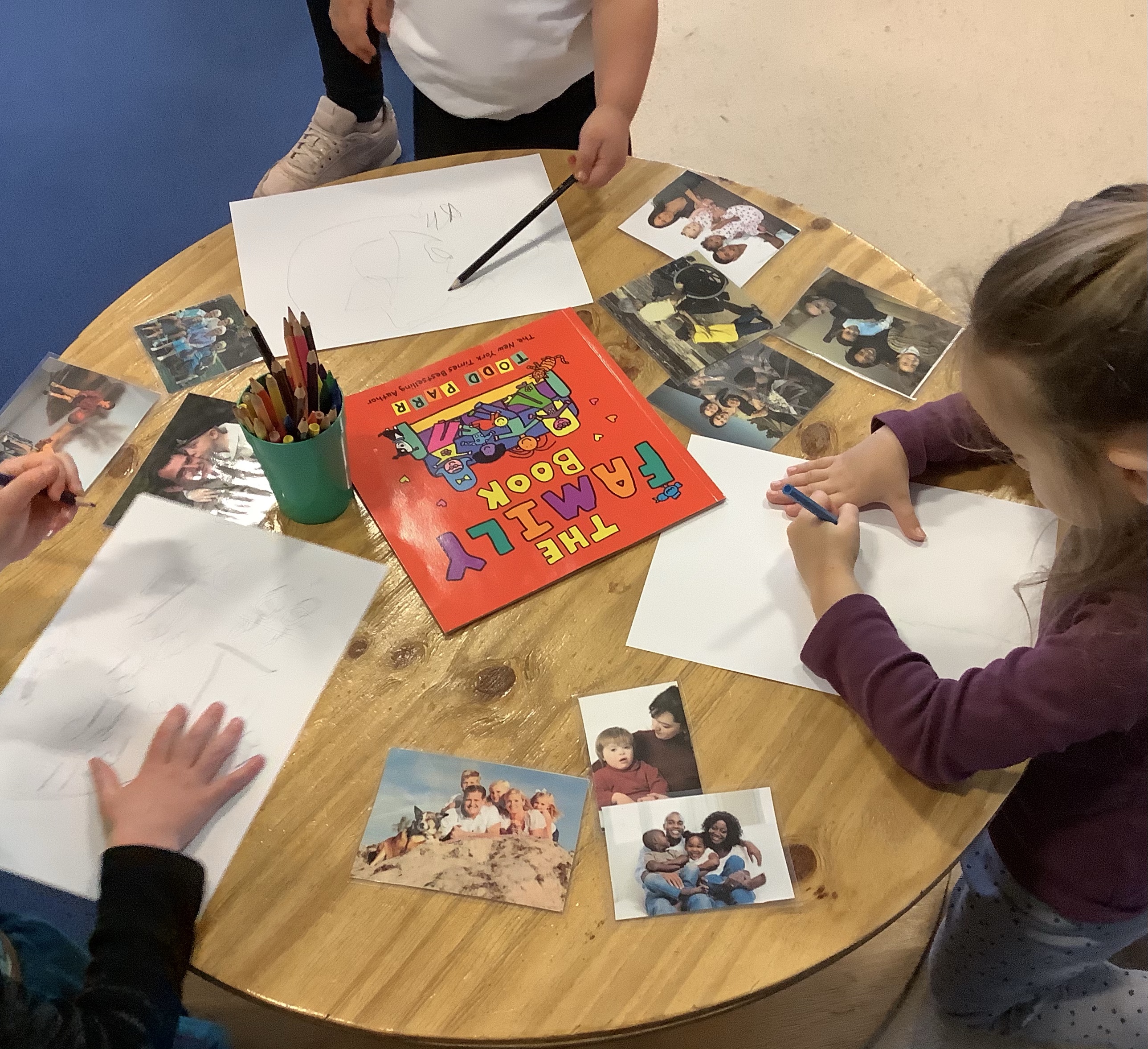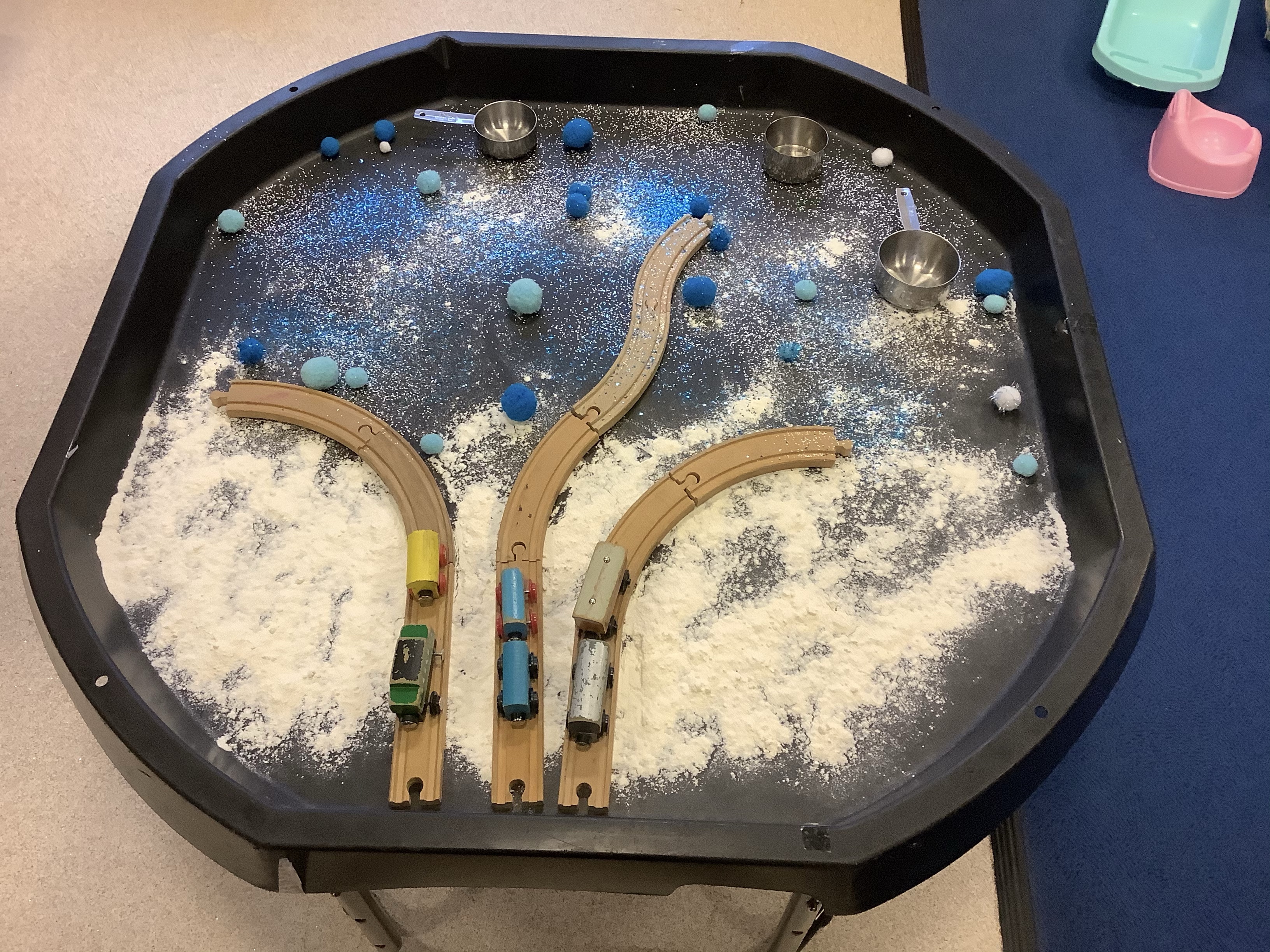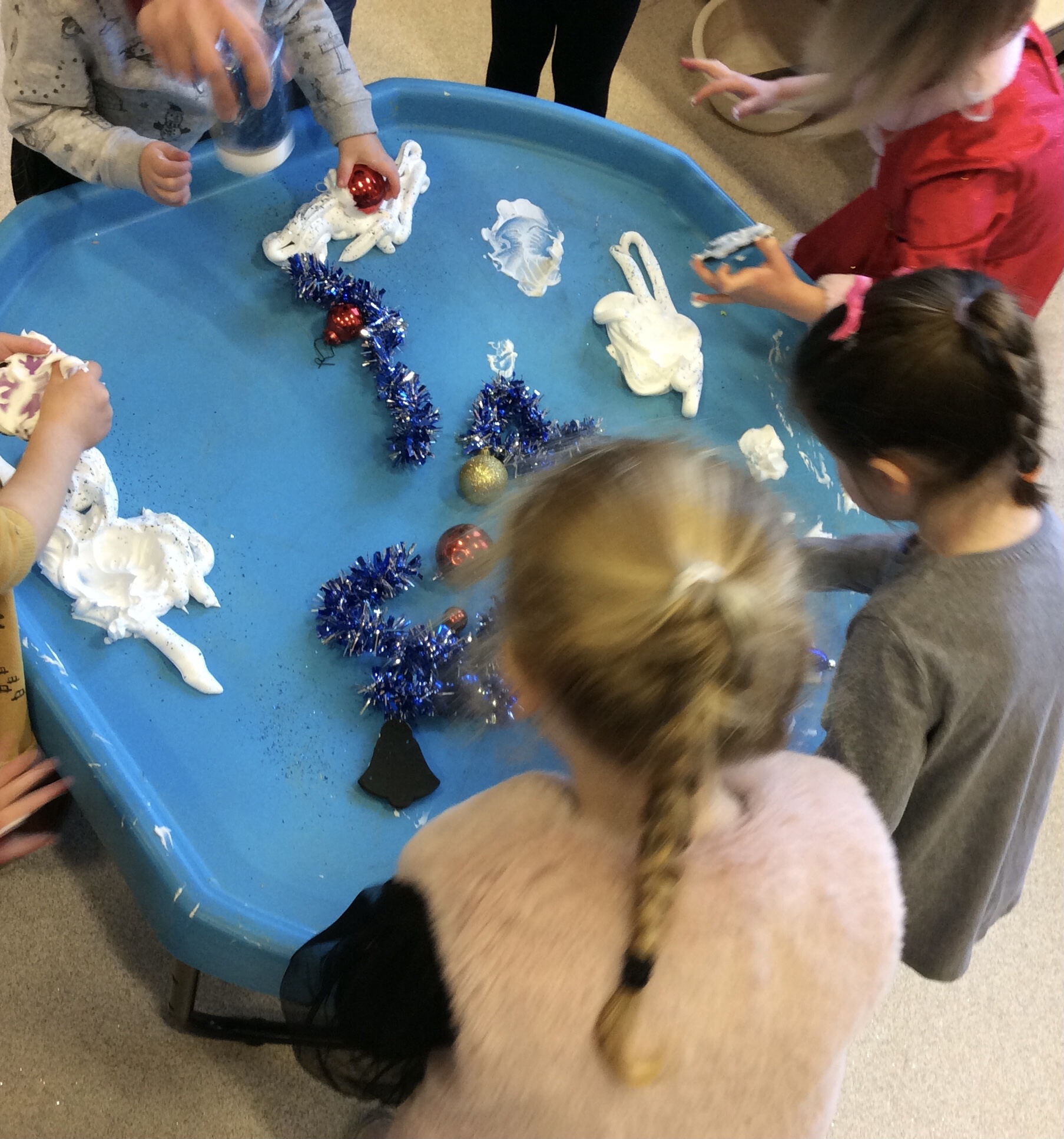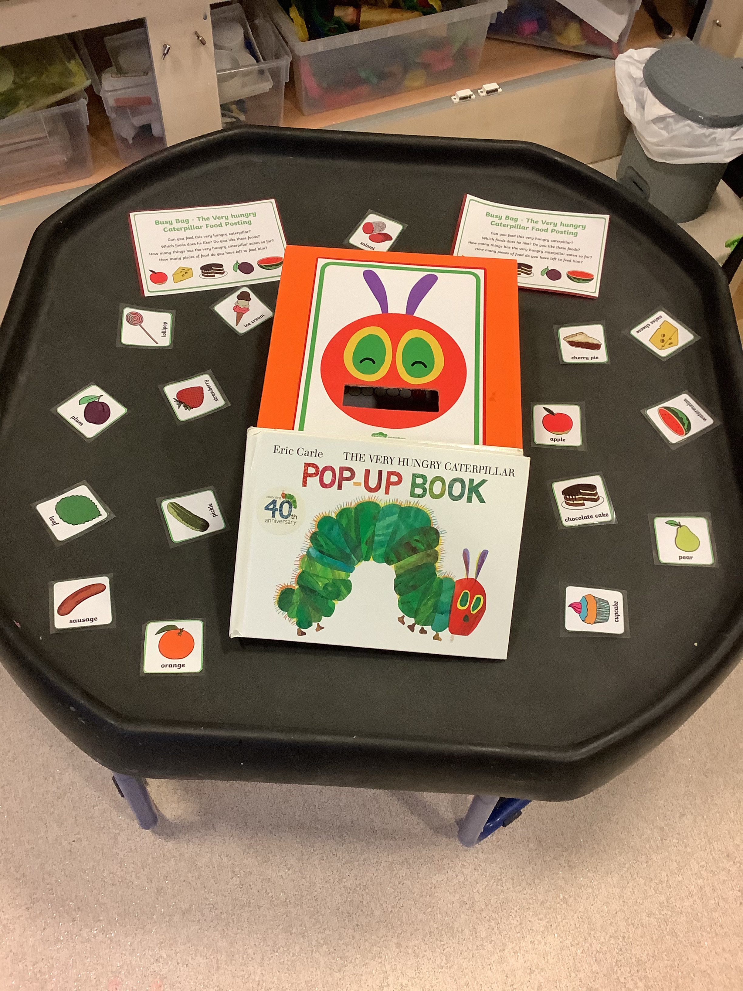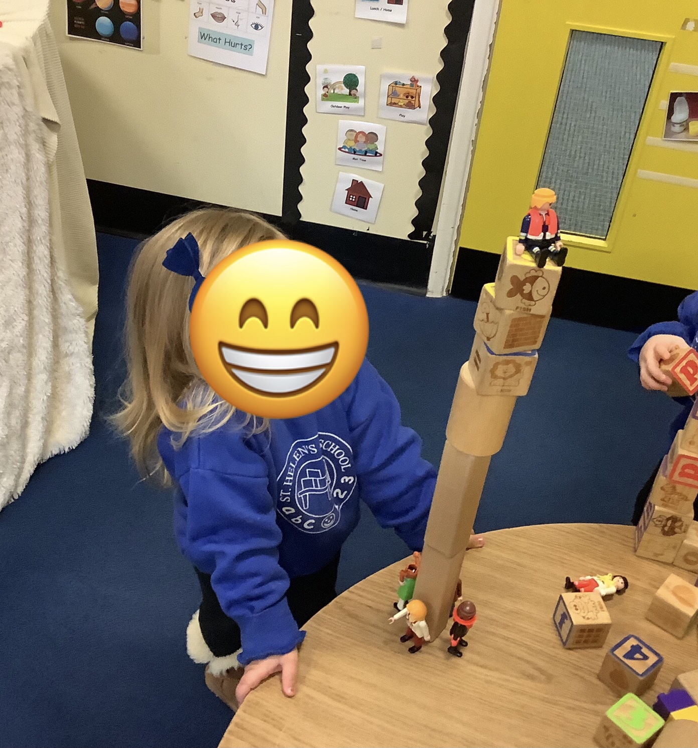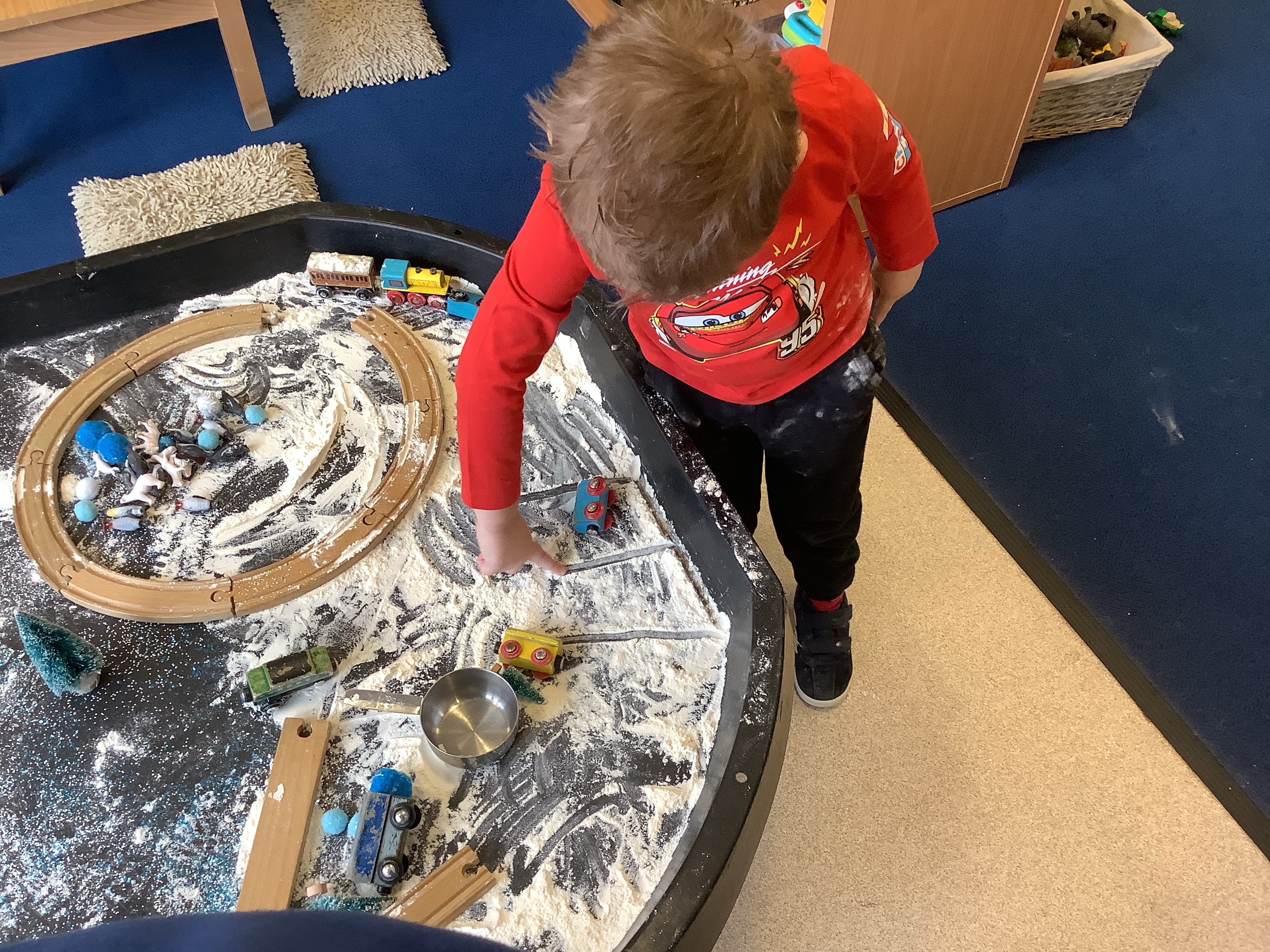 Orange room created a mini village, with real mini characters, allowing the children to role play going to each other’s homes and shops, to create a sense of belonging. Something which they have commented on during the pandemic. This also encouraged the children to recognise logos of familiar places.