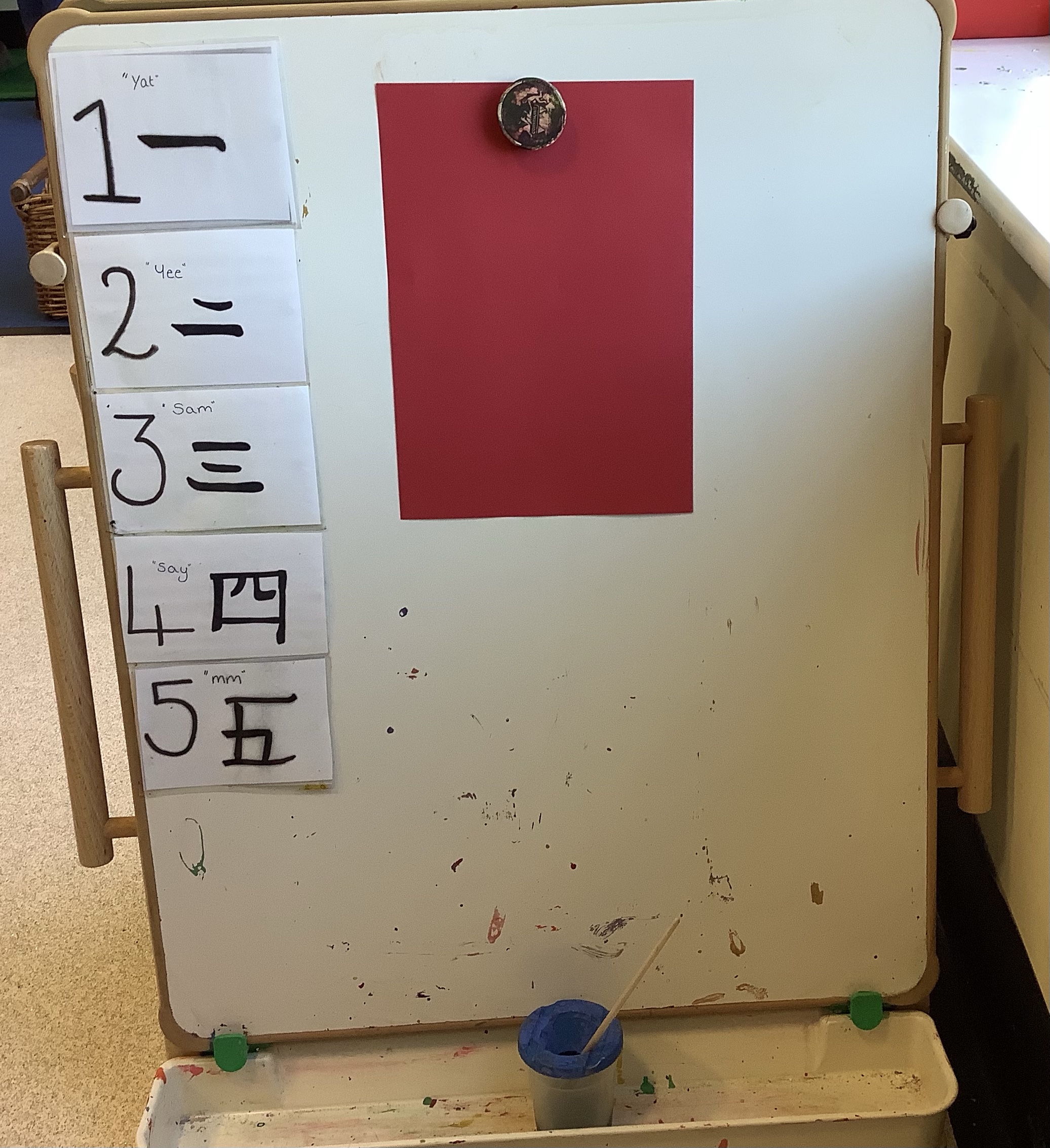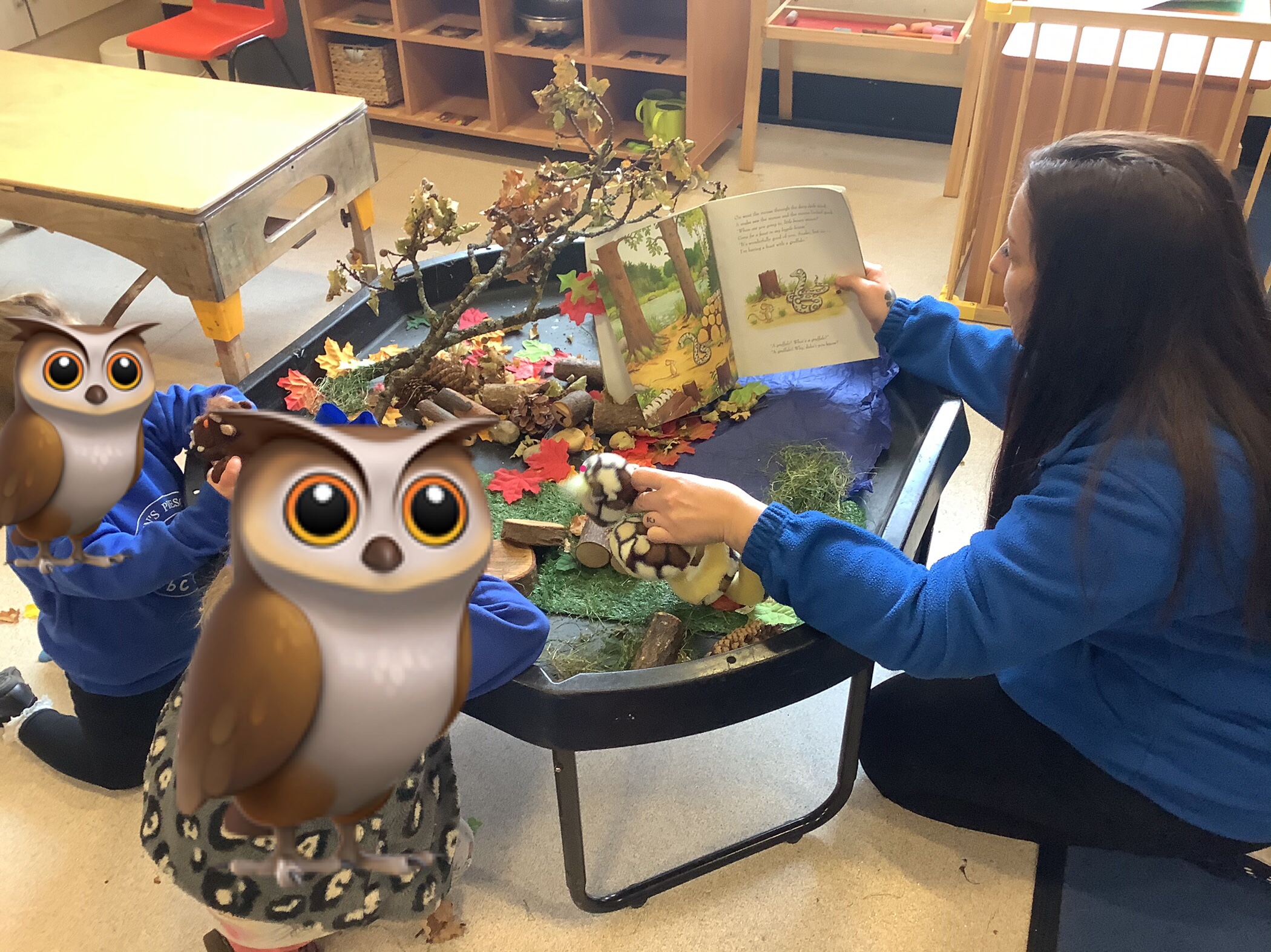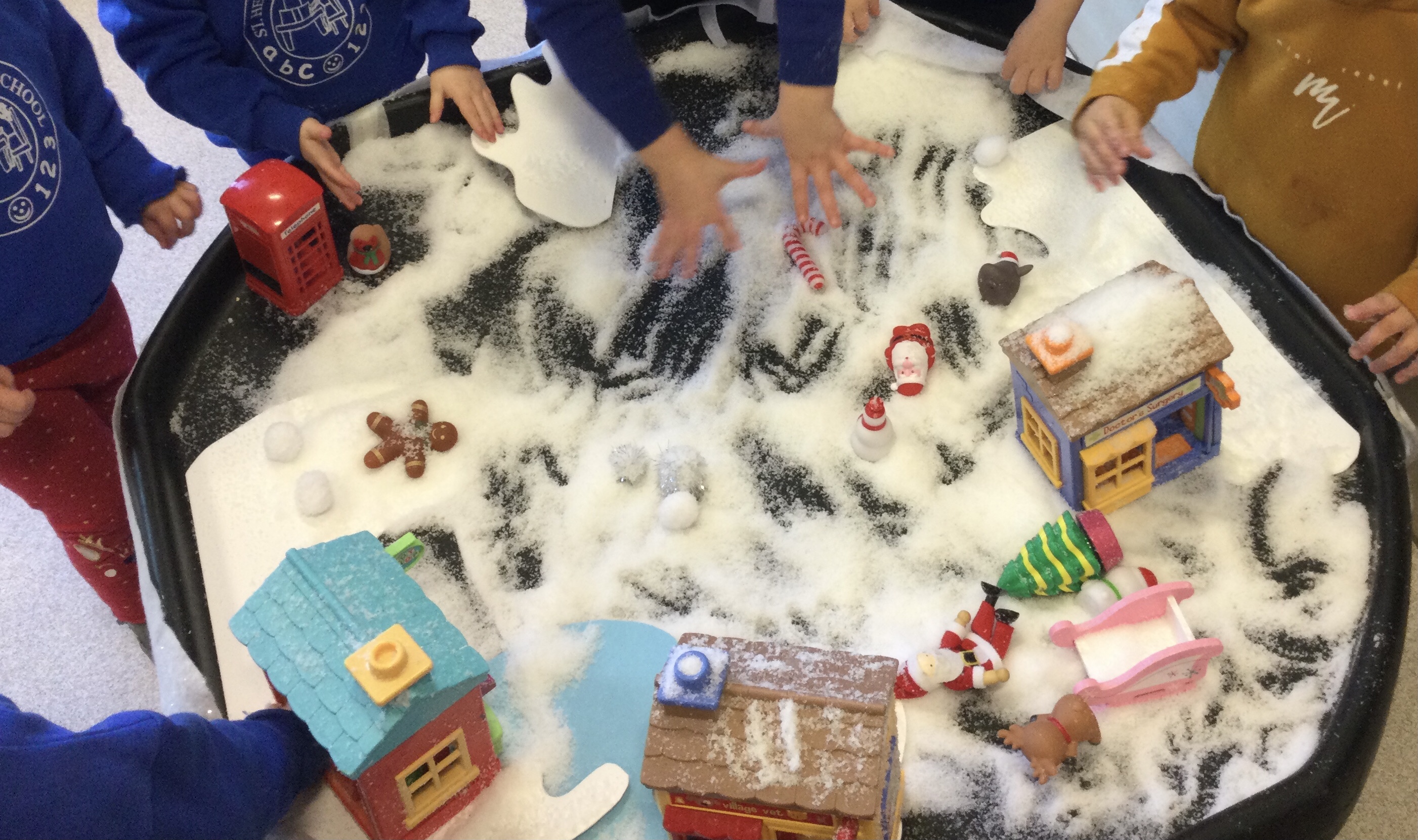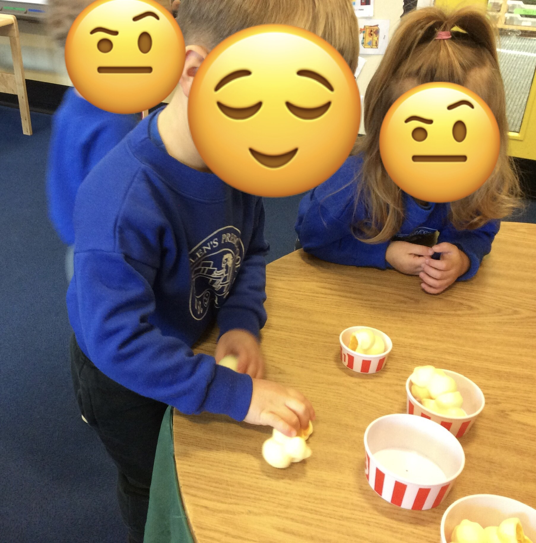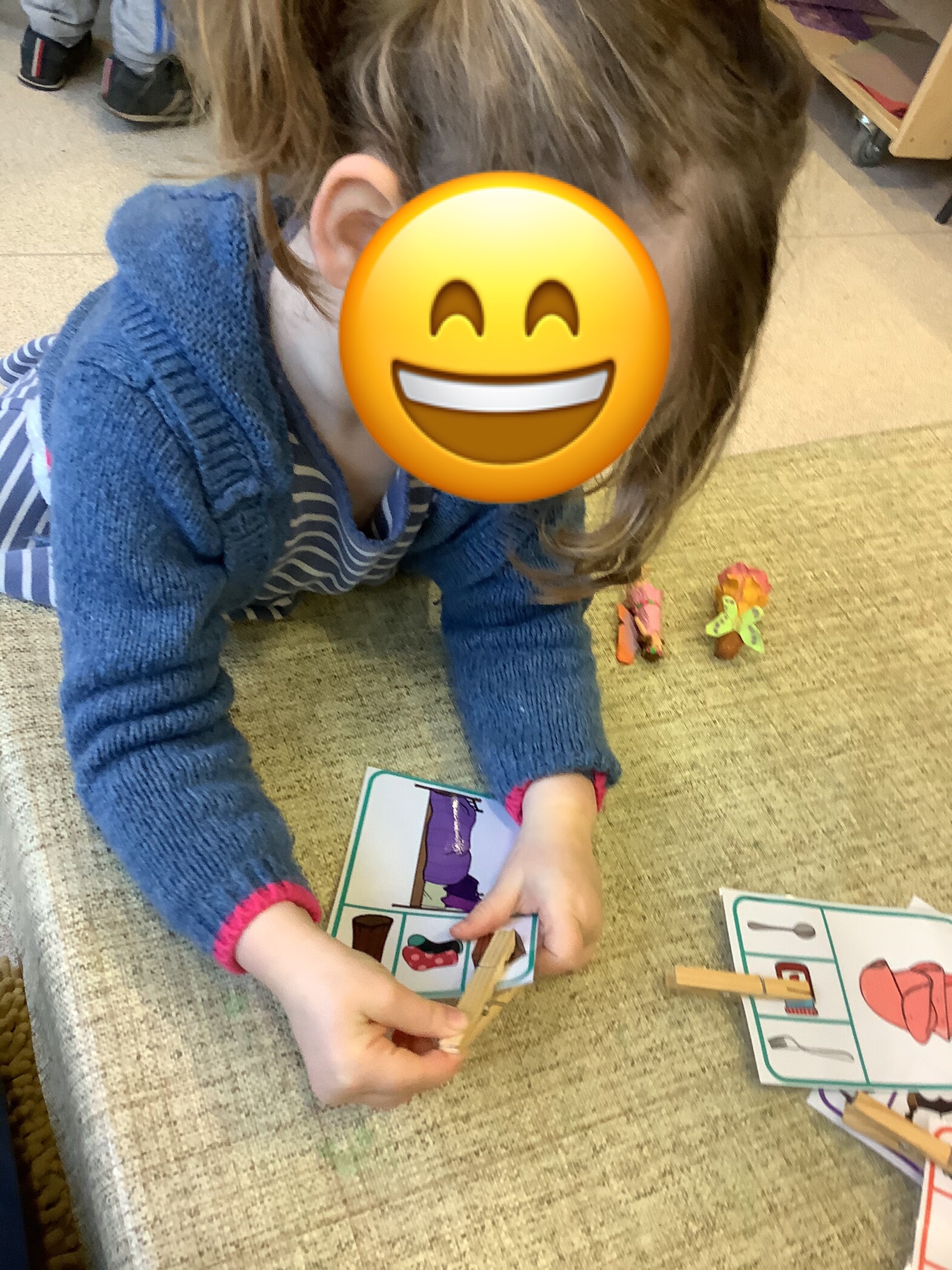 Orange room created a mini village, with real mini characters, allowing the children to role play going to each other’s homes and shops, to create a sense of belonging. Something which they have commented on during the pandemic. This also encouraged the children to recognise logos of familiar places.
