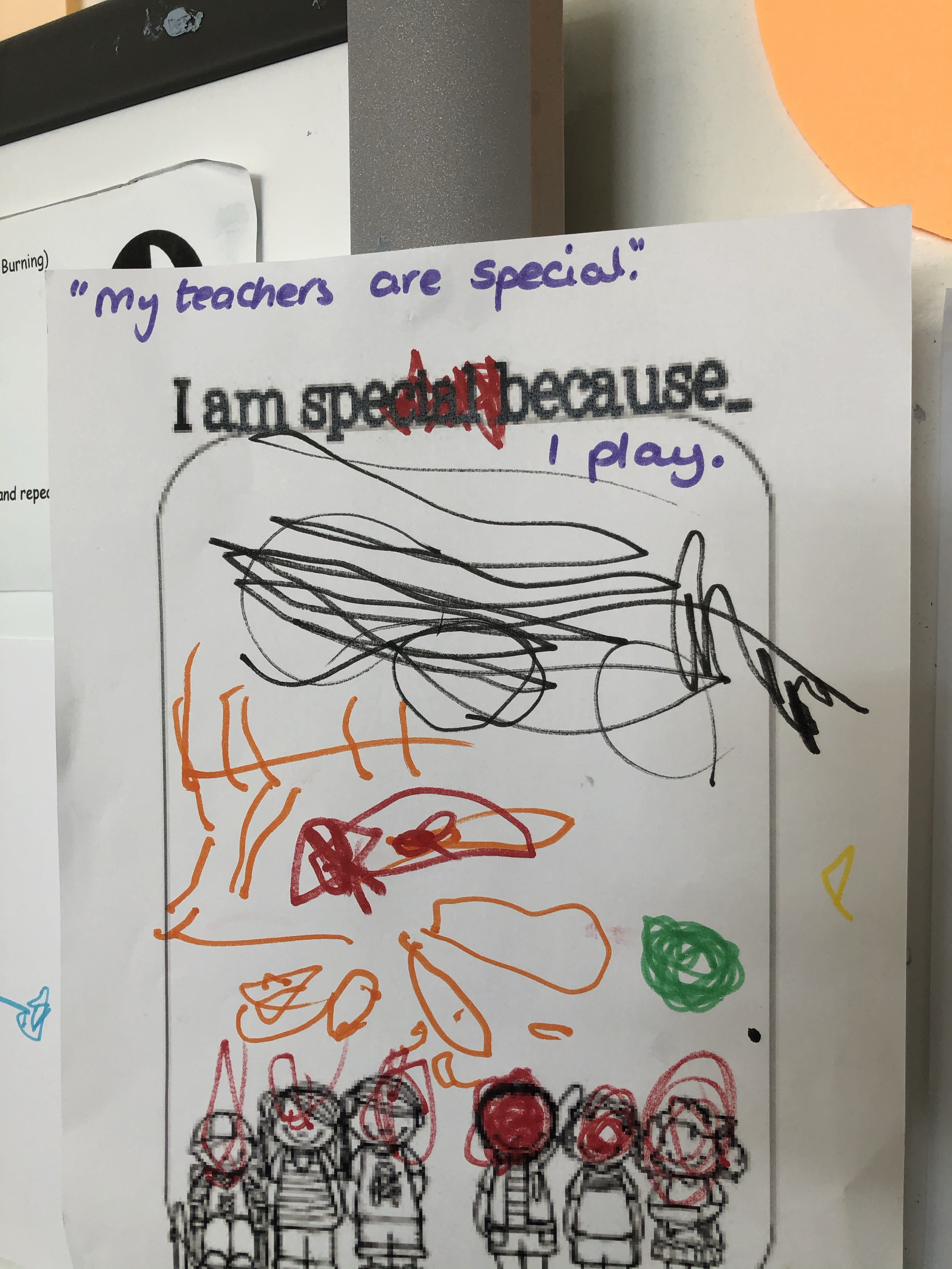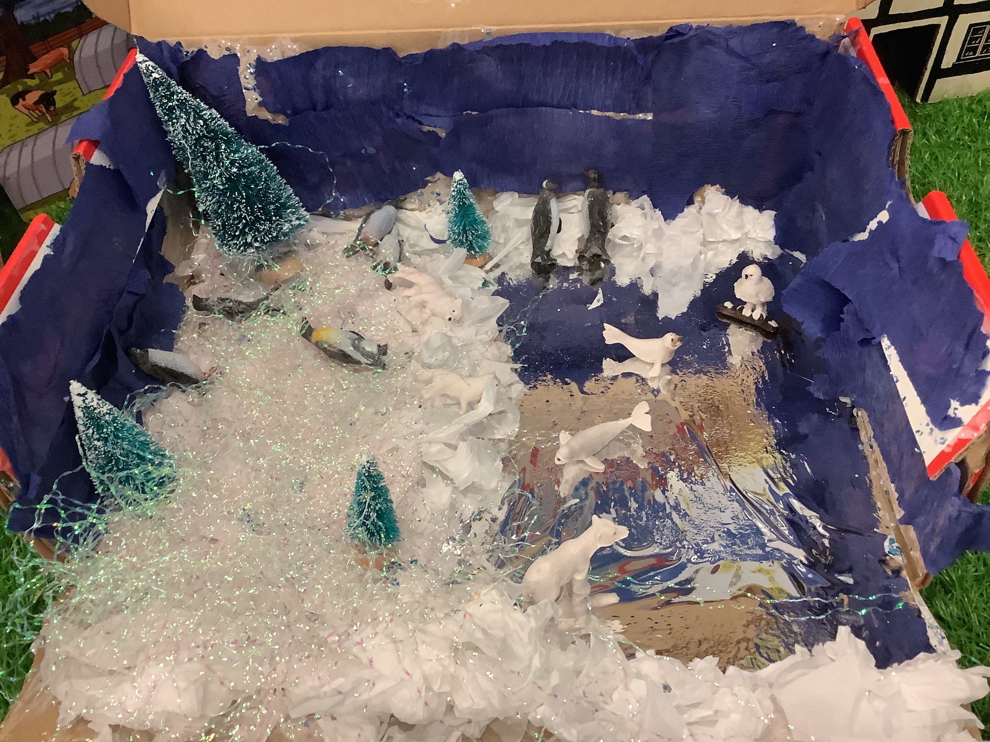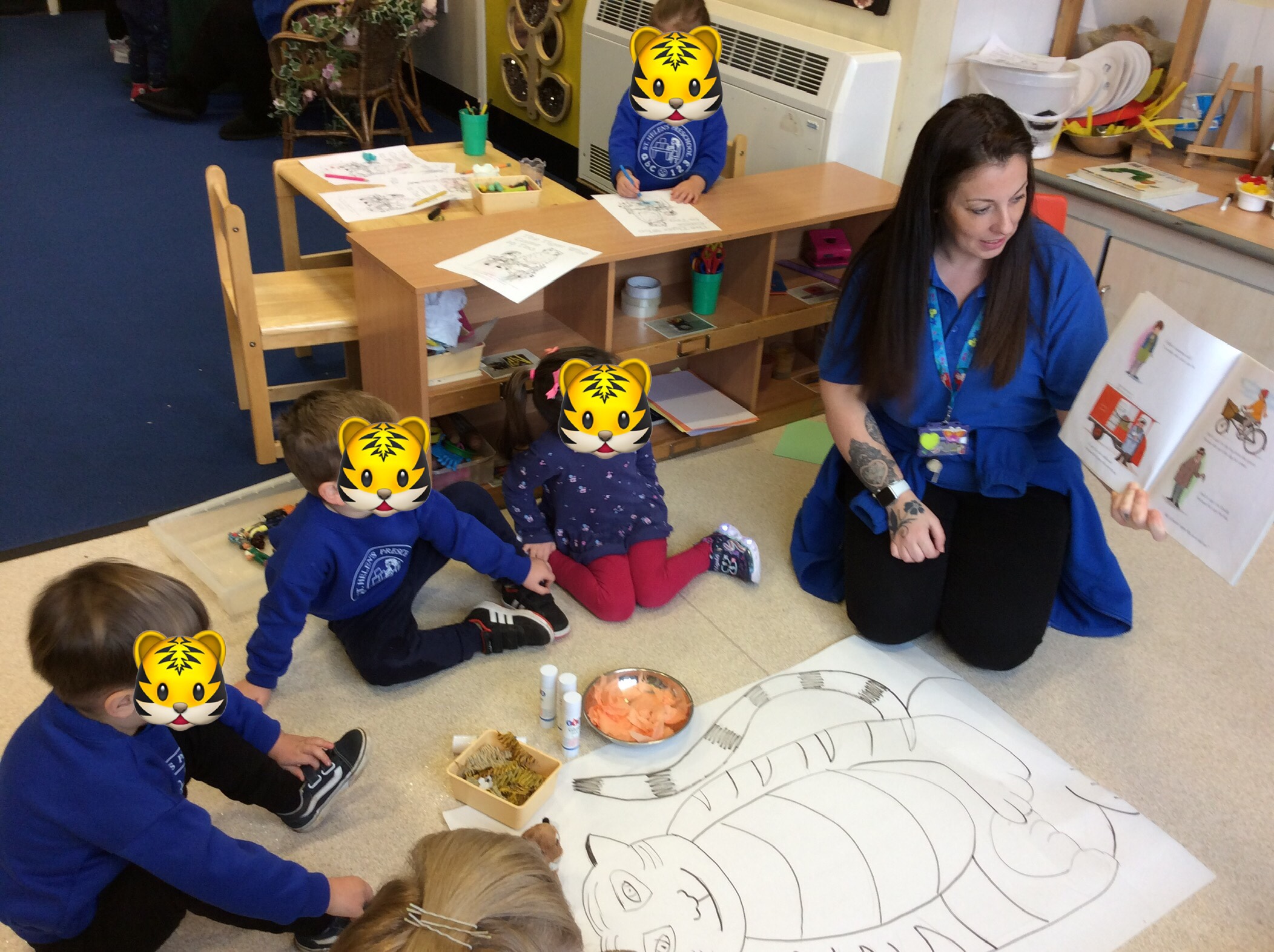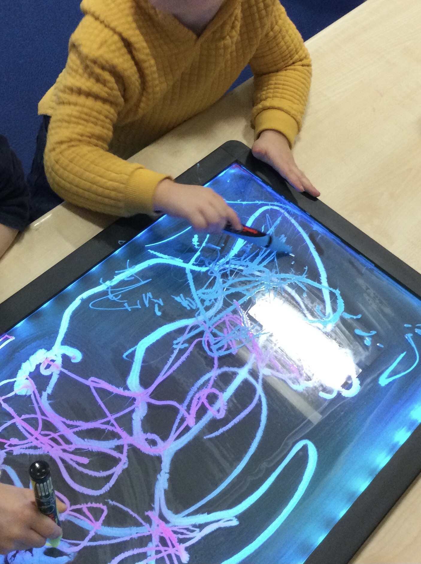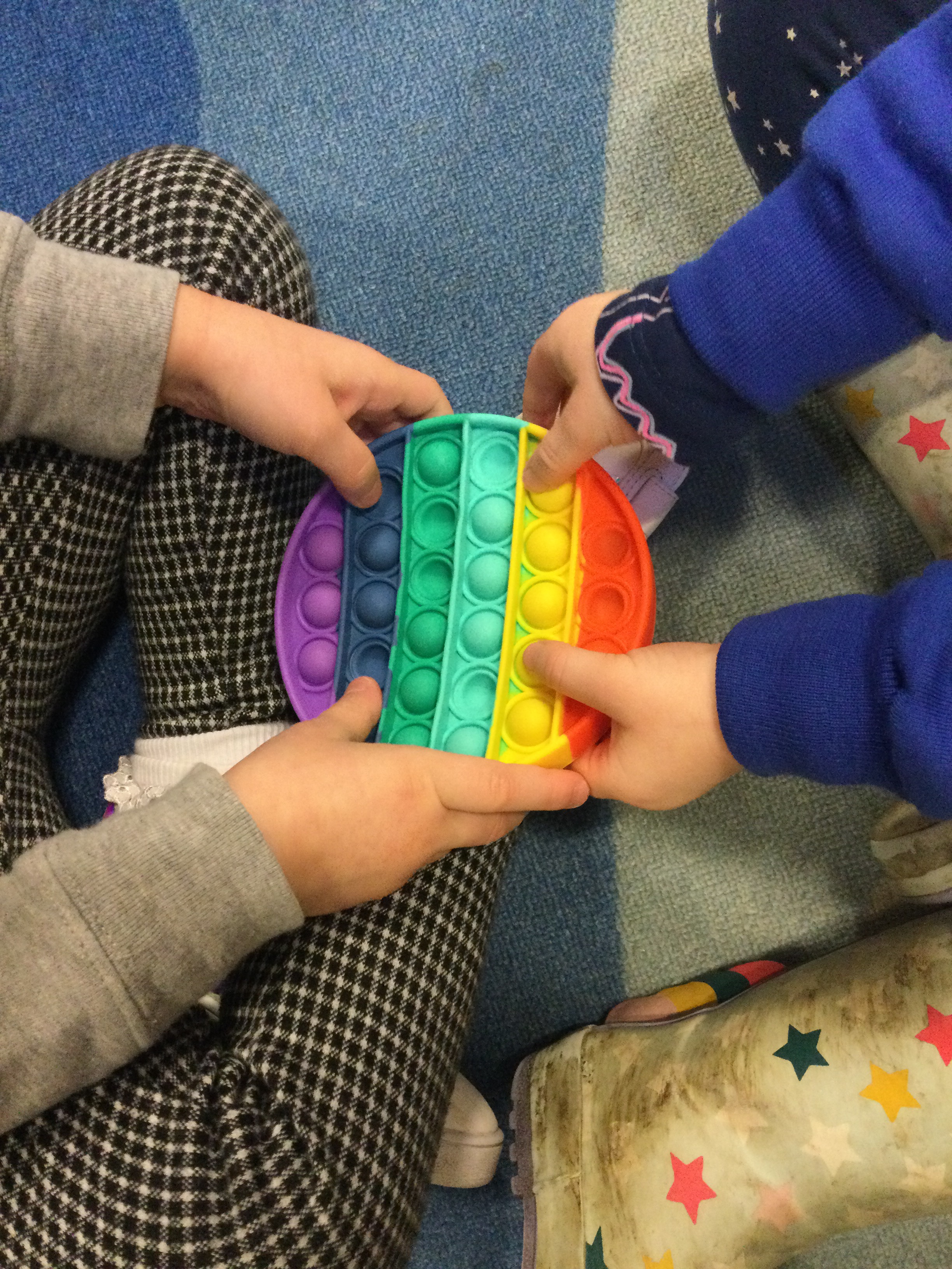 Orange room created a mini village, with real mini characters, allowing the children to role play going to each other’s homes and shops, to create a sense of belonging. Something which they have commented on during the pandemic. This also encouraged the children to recognise logos of familiar places.
