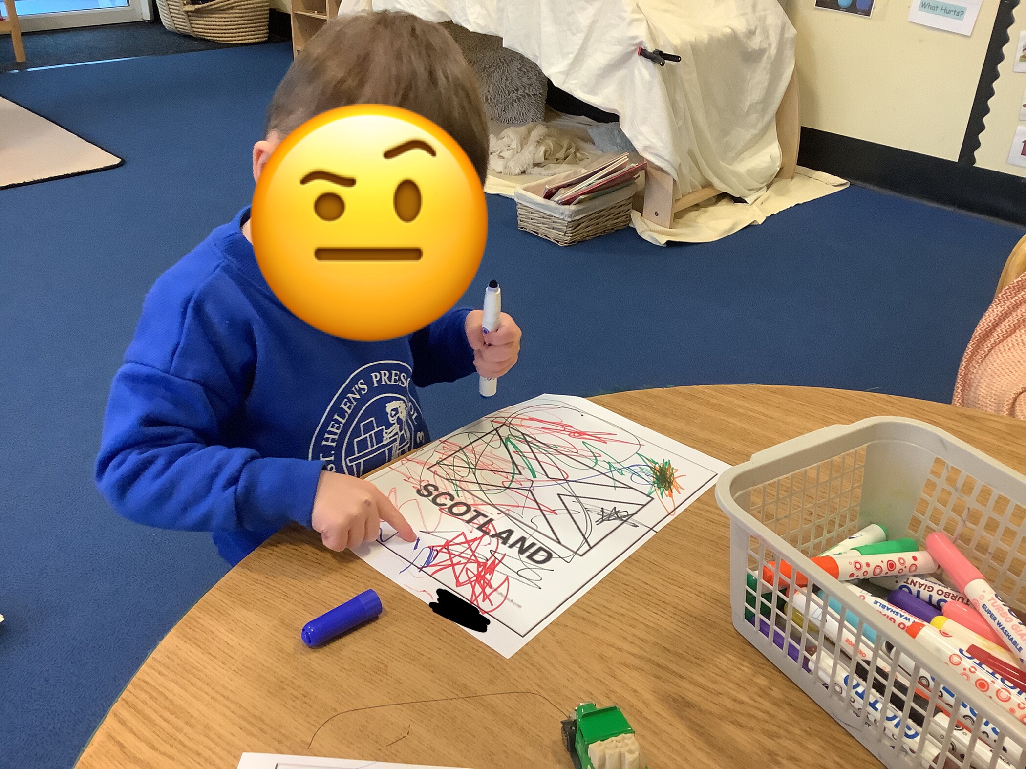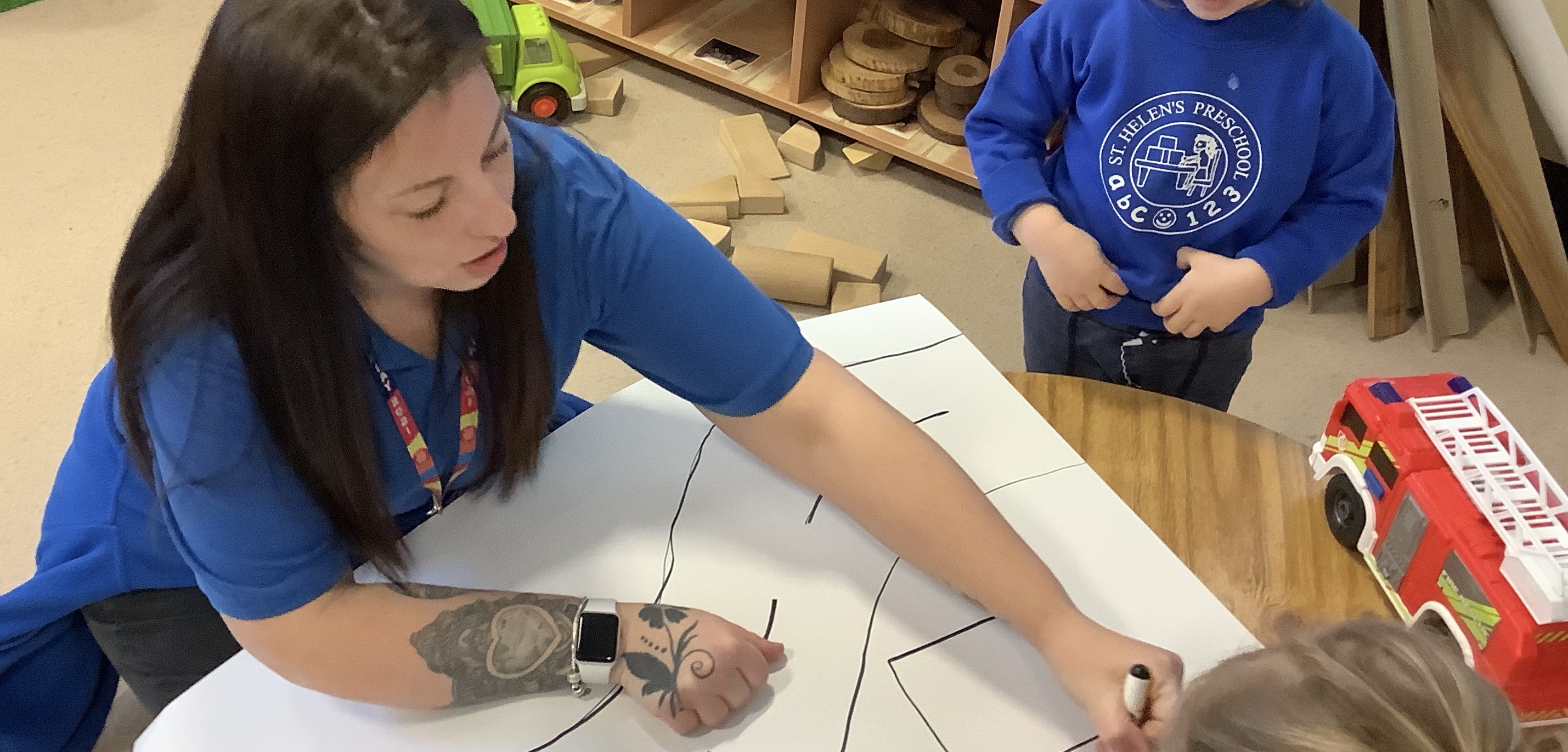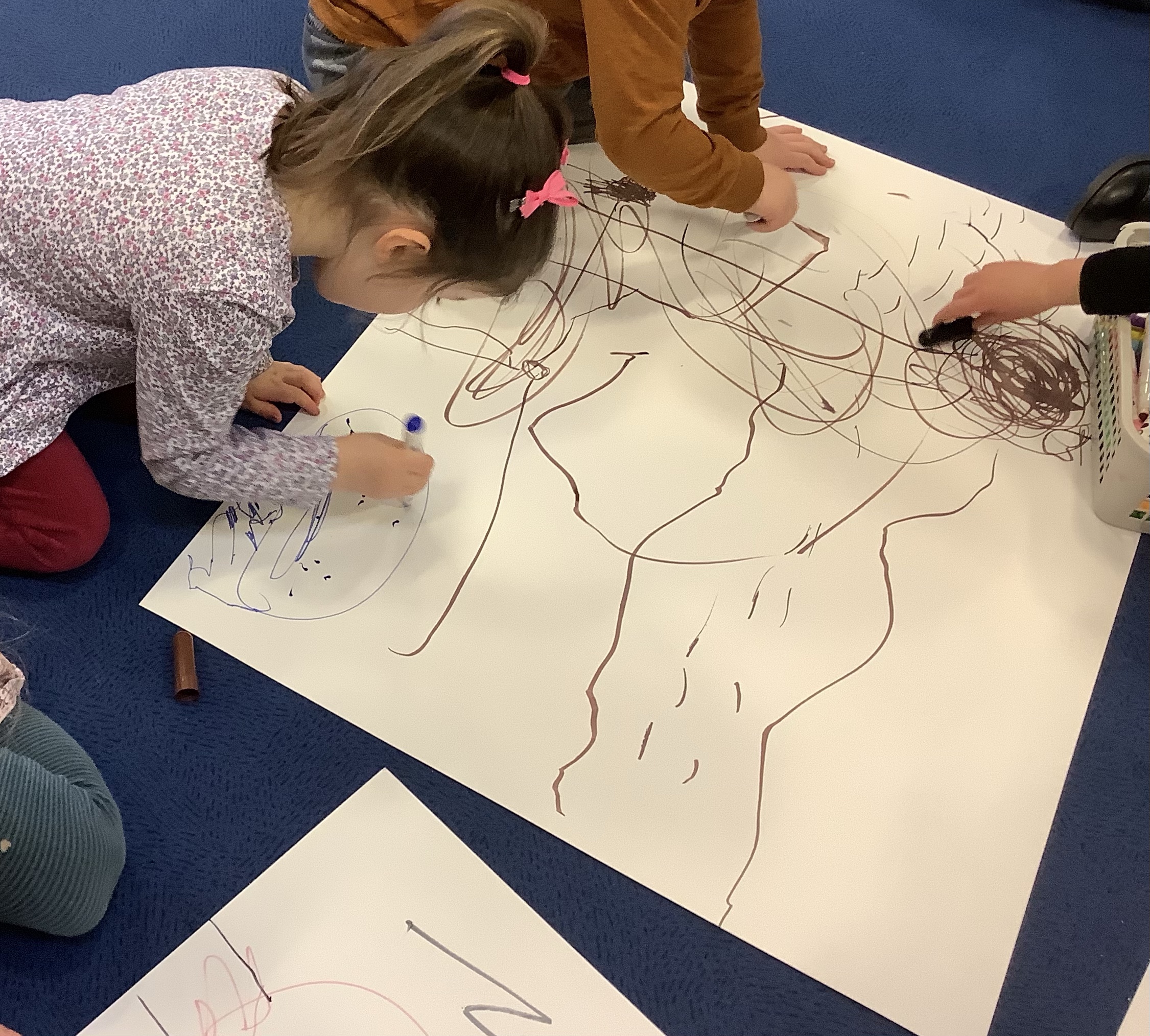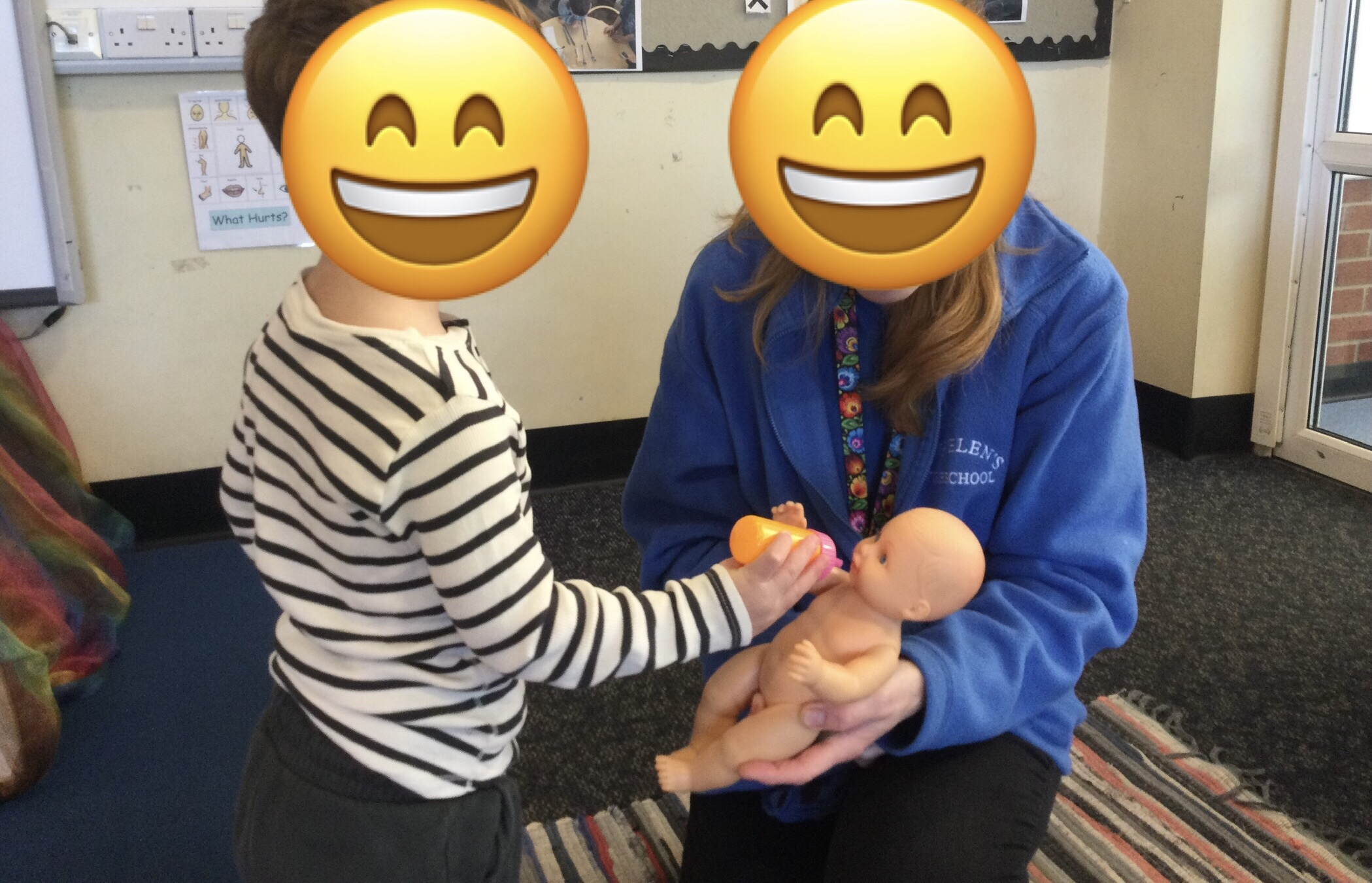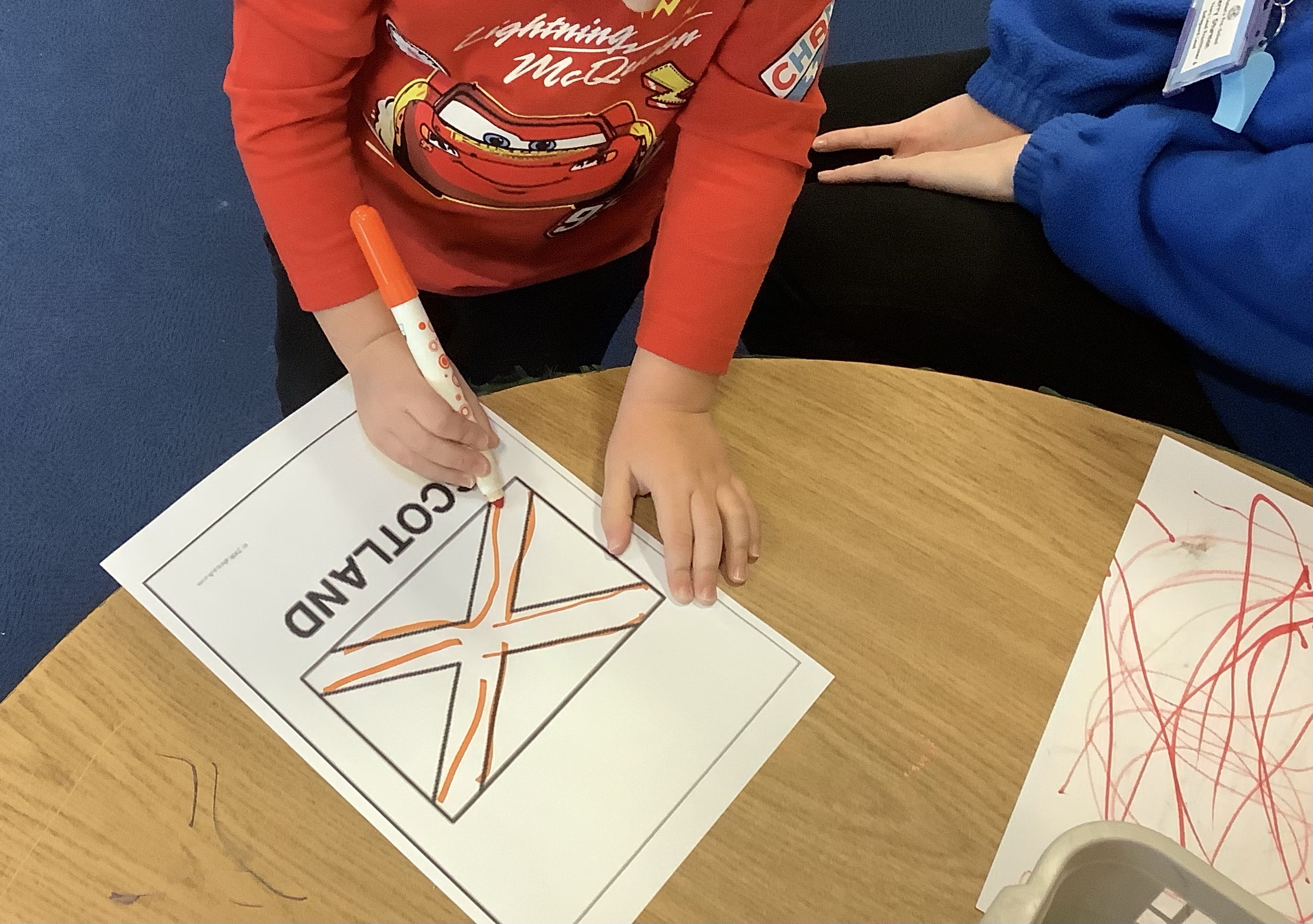 Orange room created a mini village, with real mini characters, allowing the children to role play going to each other’s homes and shops, to create a sense of belonging. Something which they have commented on during the pandemic. This also encouraged the children to recognise logos of familiar places.