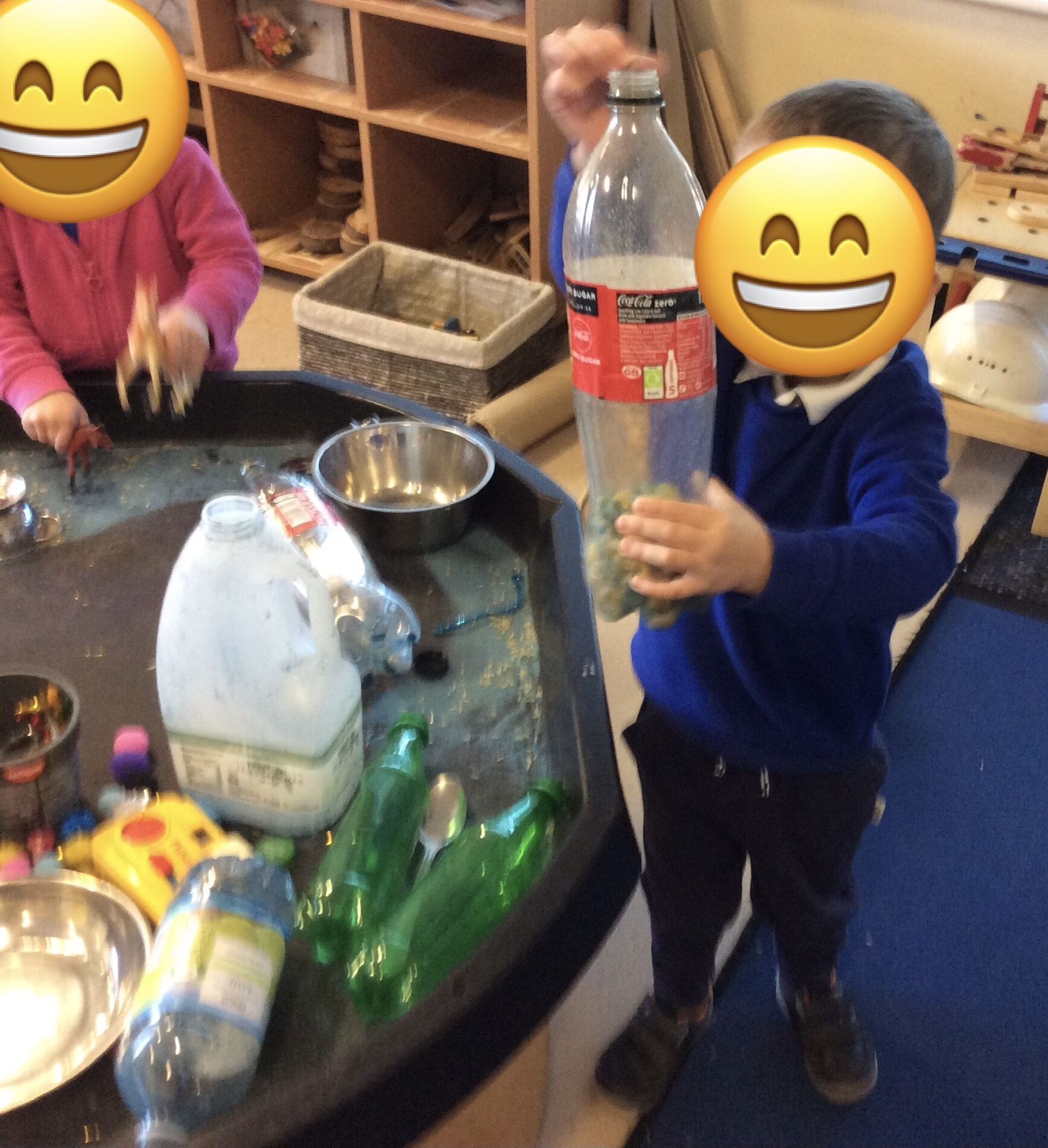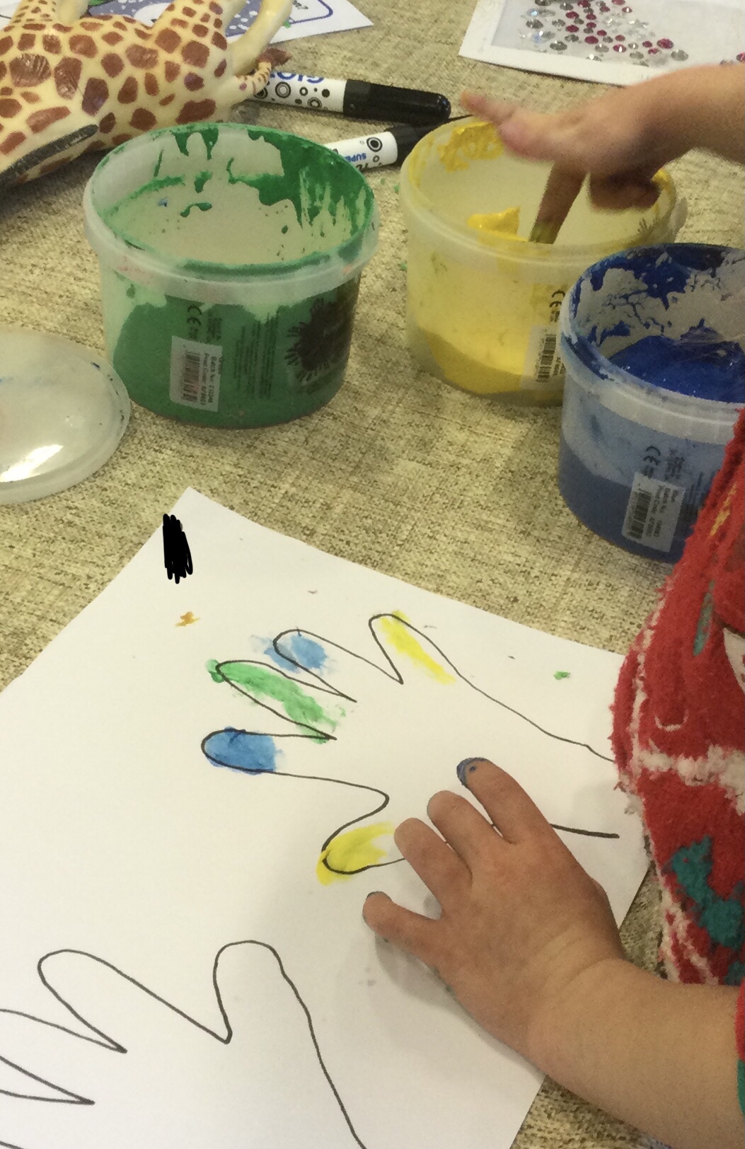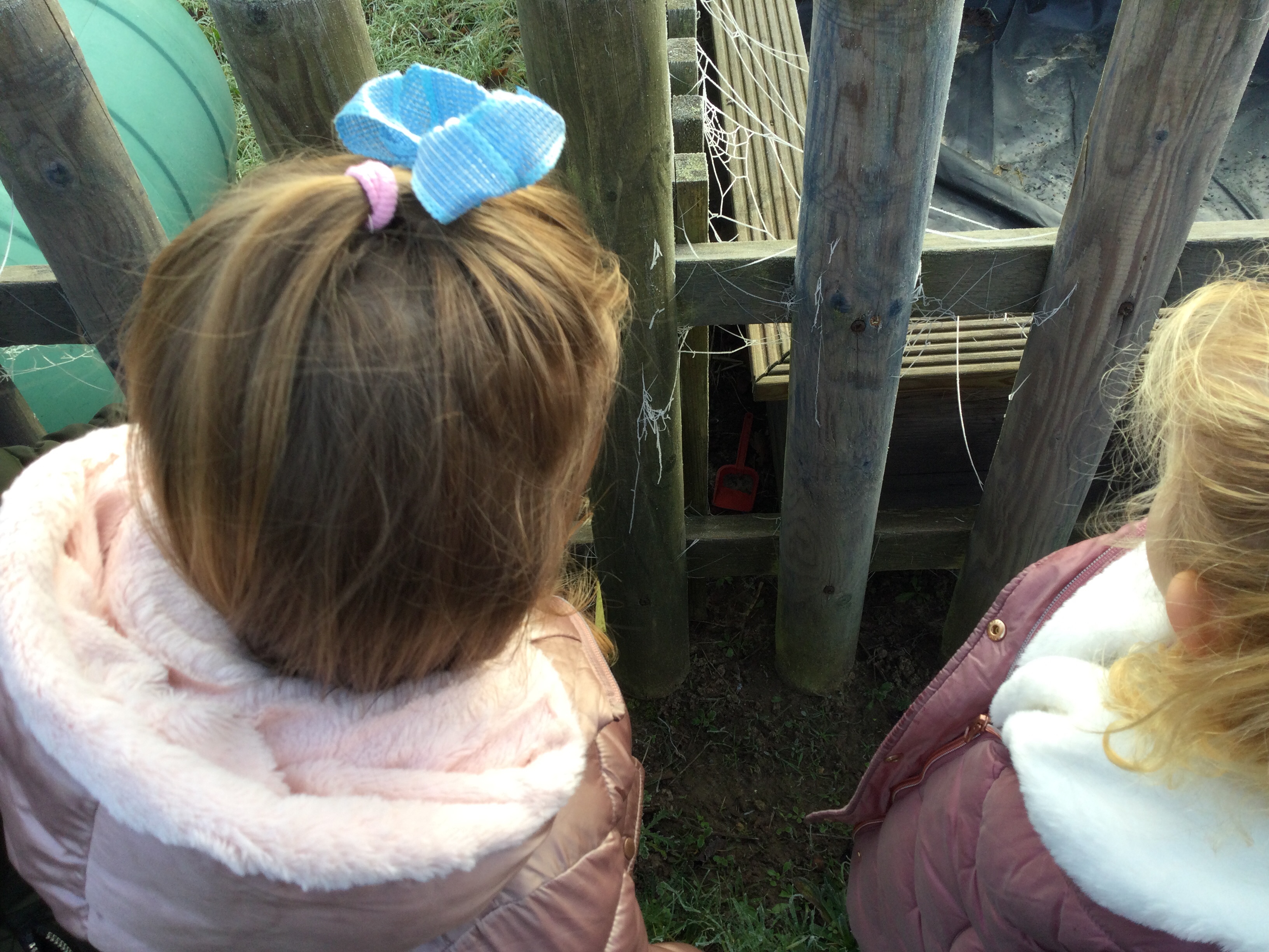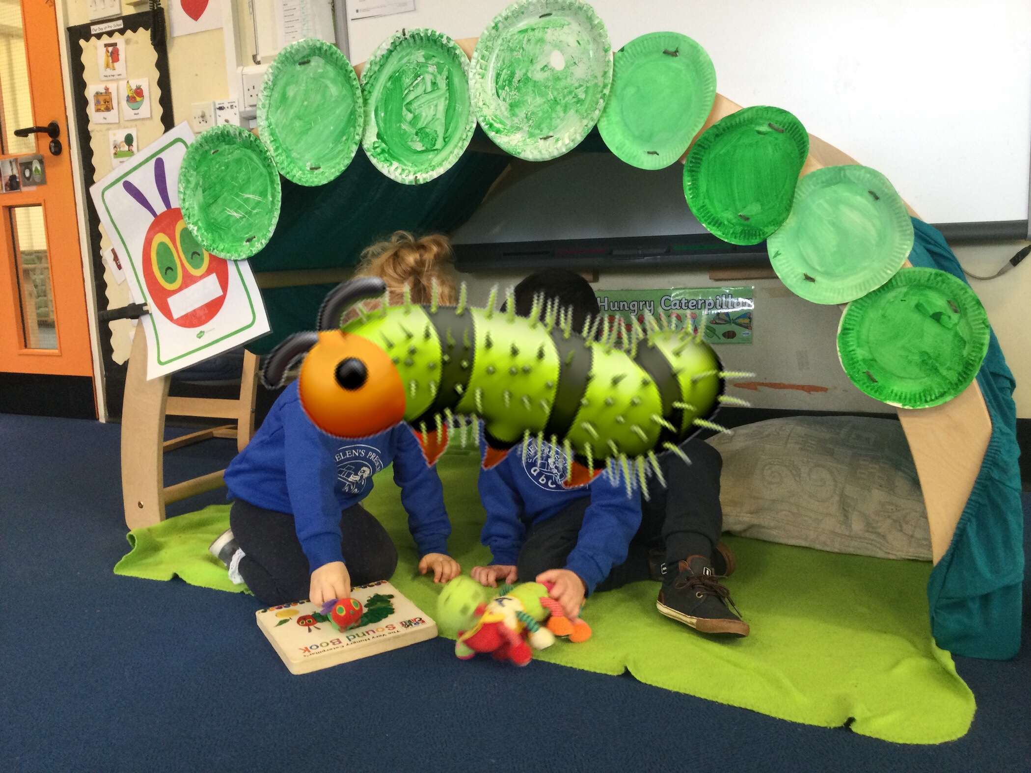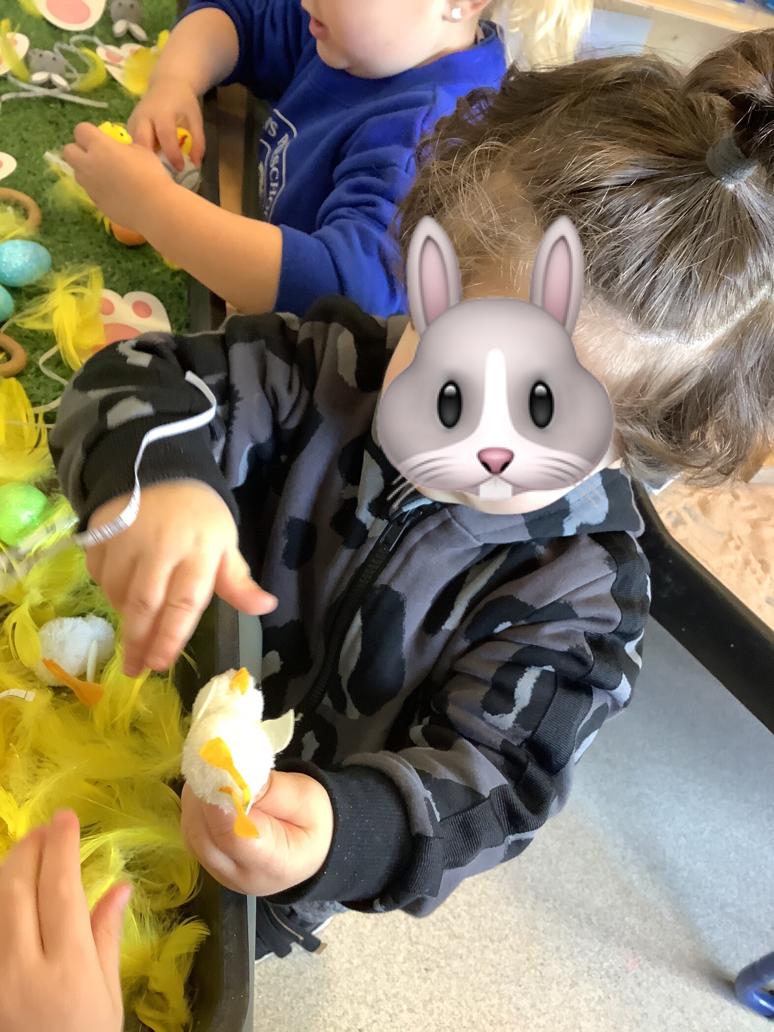 The children love to sing “we’re going on a bear hunt” and in orange room the children used random items that they pretended were binoculars to look out of the windows for bears. Following on from this, we made our own binoculars. We extended this activity even further by going into the garden using the bug hunt resources to search for living creatures (luckily no bears were found). All the while promoting care and concern for living things and our environment.