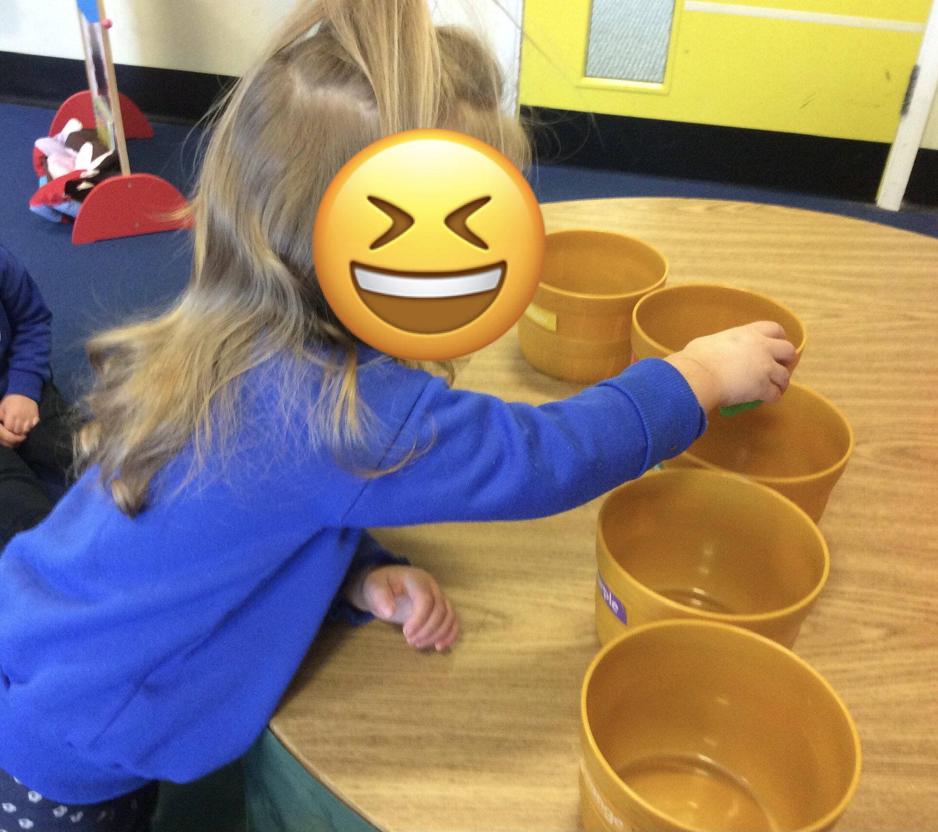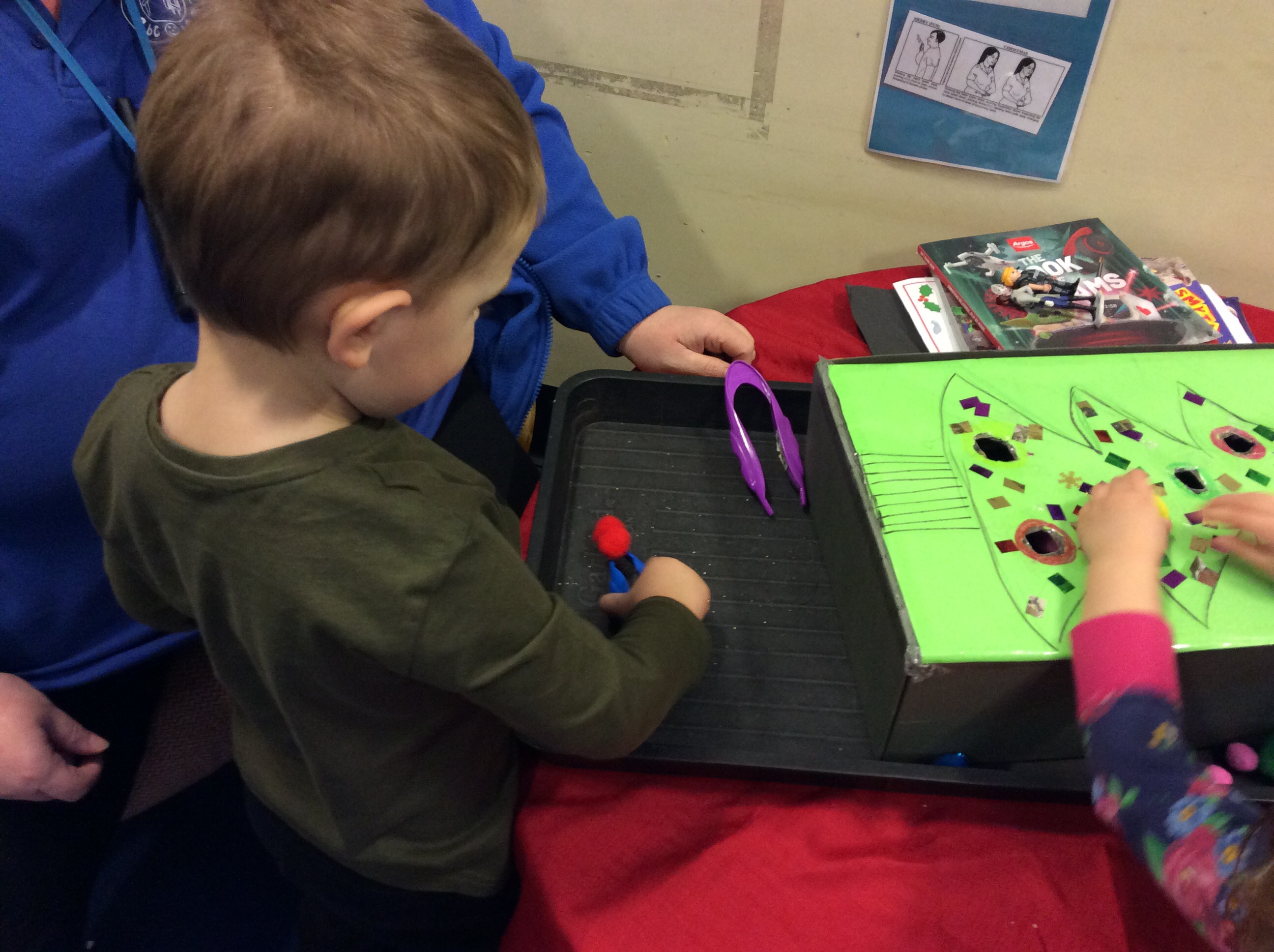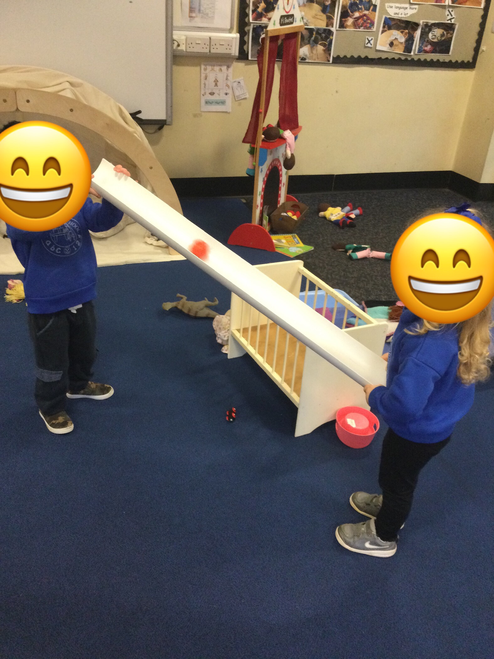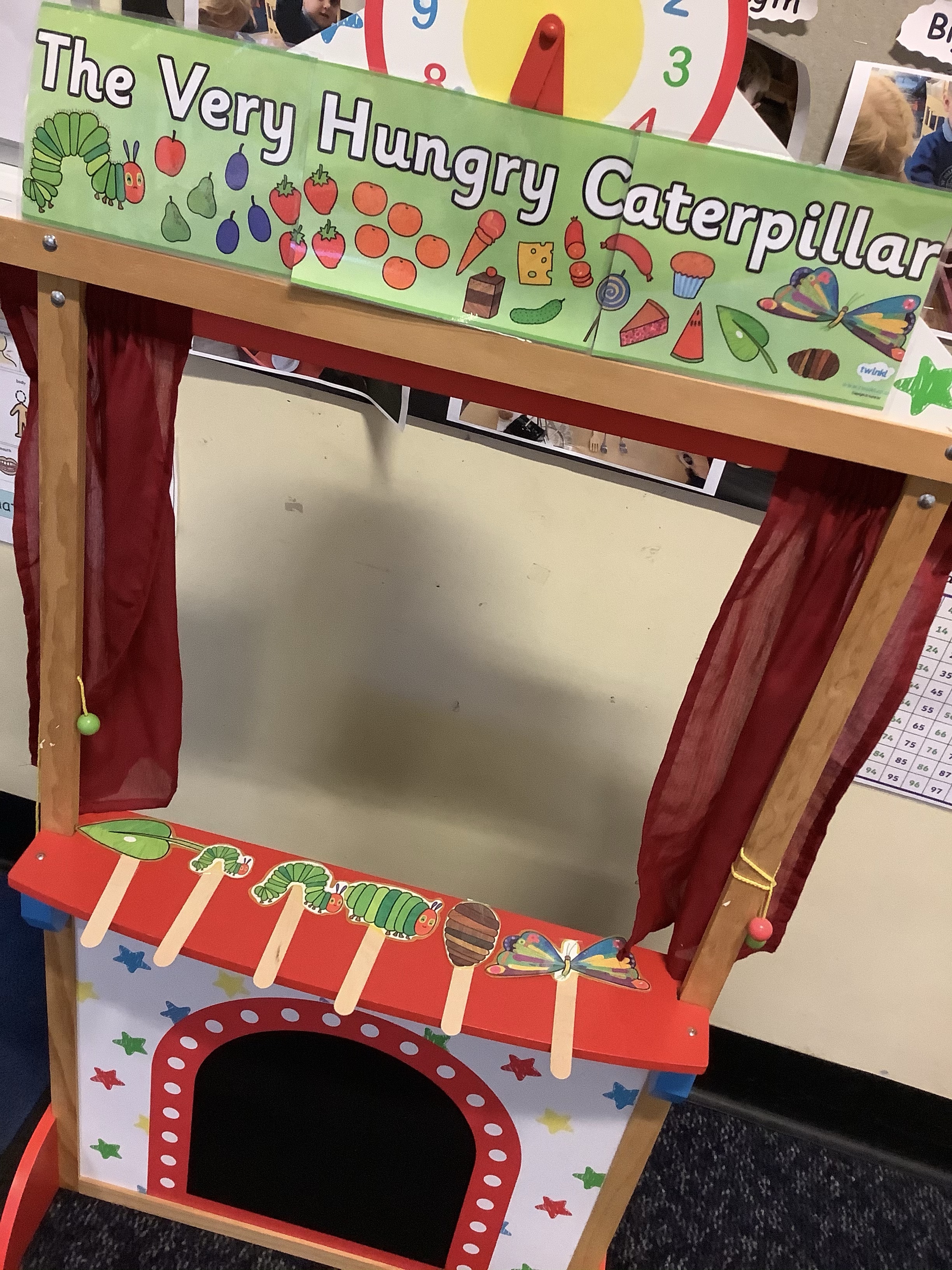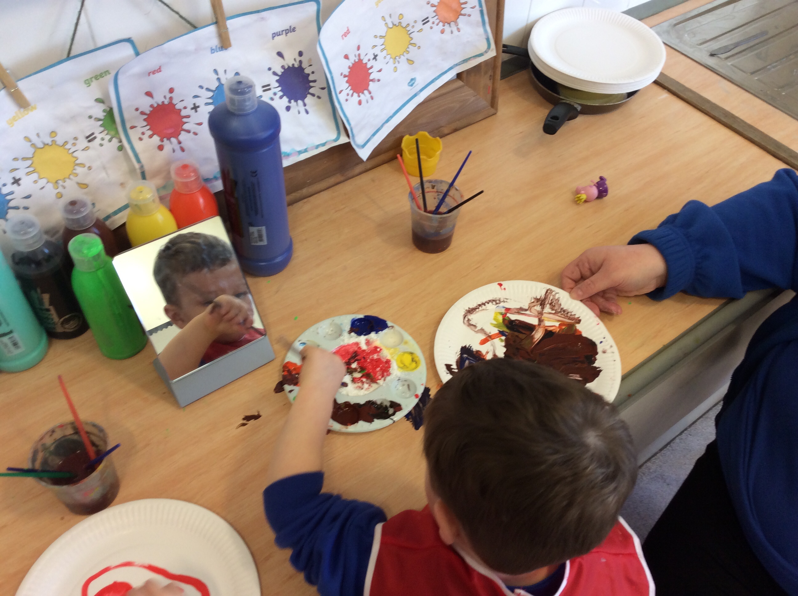 The children love to sing “we’re going on a bear hunt” and in orange room the children used random items that they pretended were binoculars to look out of the windows for bears. Following on from this, we made our own binoculars. We extended this activity even further by going into the garden using the bug hunt resources to search for living creatures (luckily no bears were found). All the while promoting care and concern for living things and our environment.