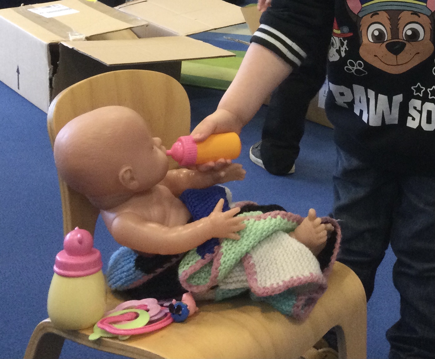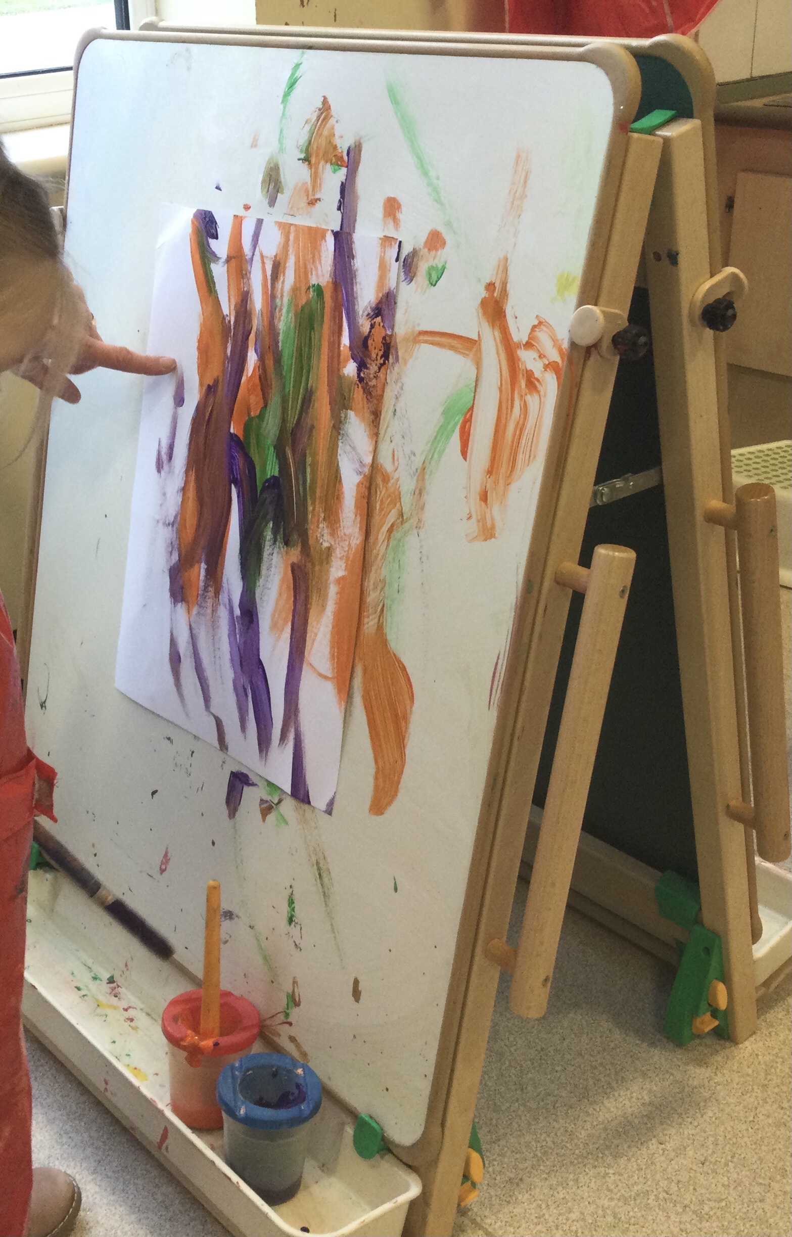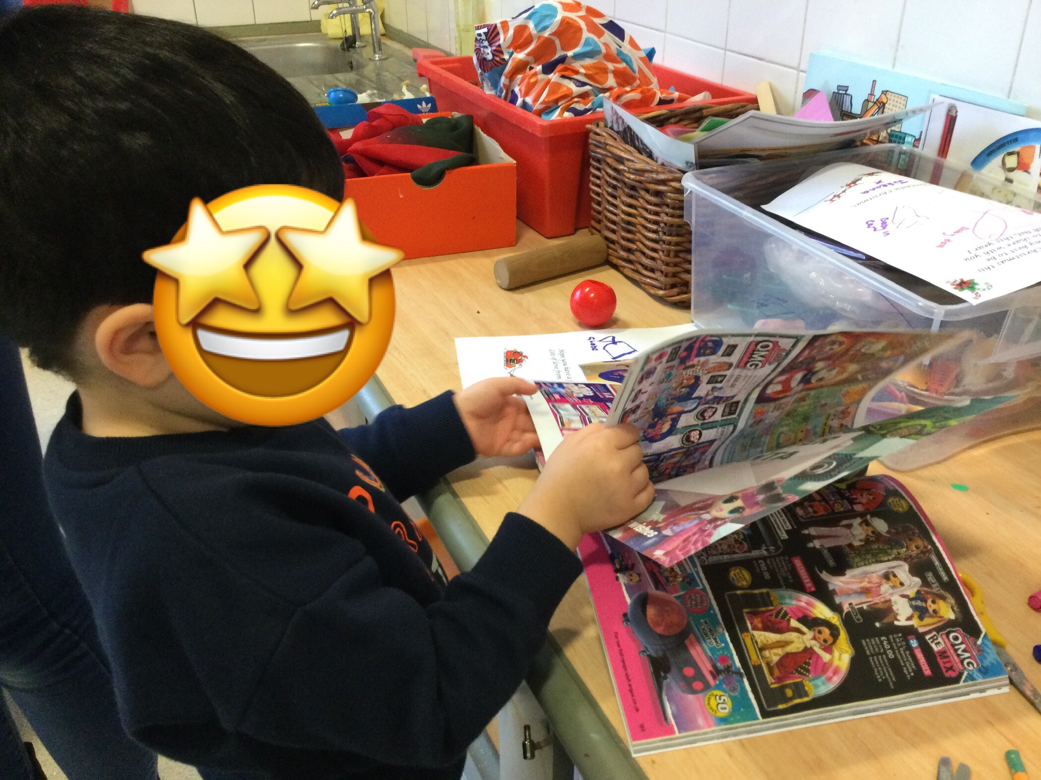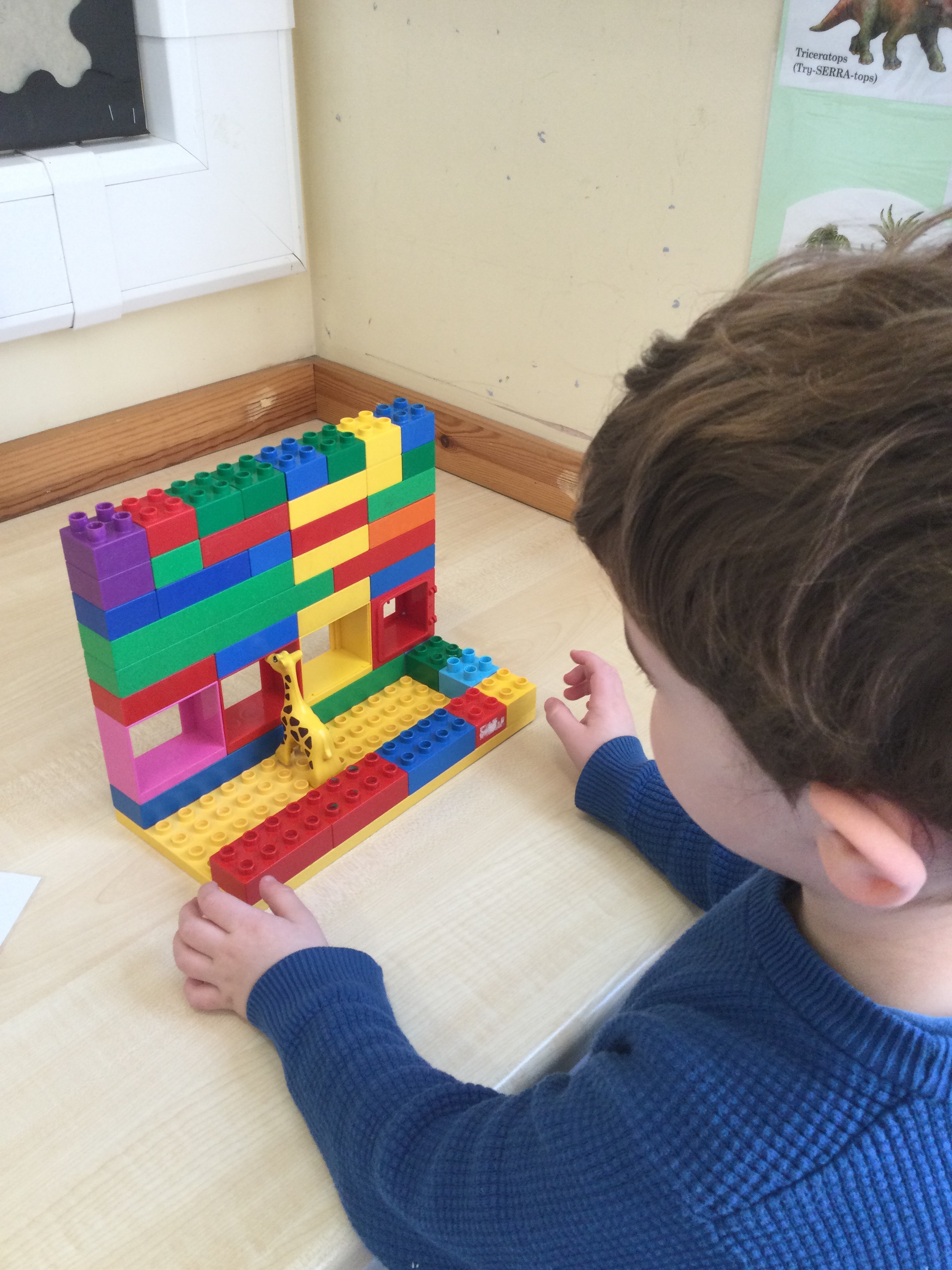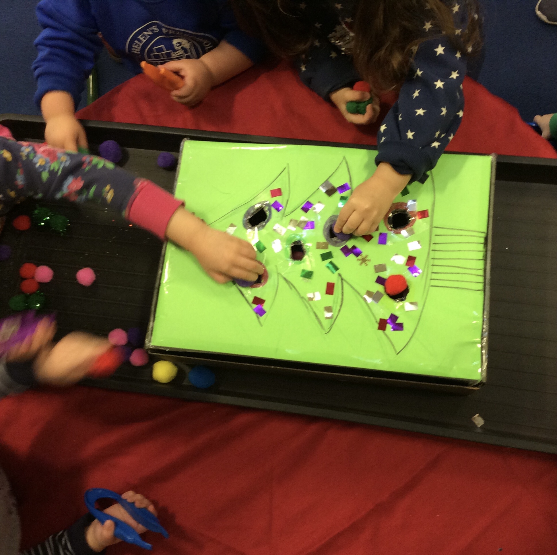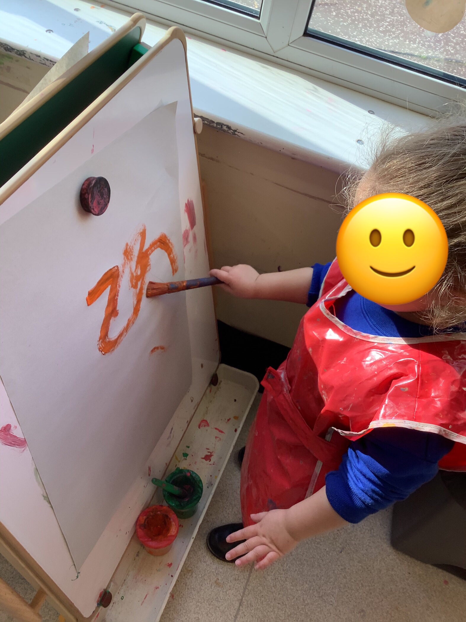 The children love to sing “we’re going on a bear hunt” and in orange room the children used random items that they pretended were binoculars to look out of the windows for bears. Following on from this, we made our own binoculars. We extended this activity even further by going into the garden using the bug hunt resources to search for living creatures (luckily no bears were found). All the while promoting care and concern for living things and our environment.