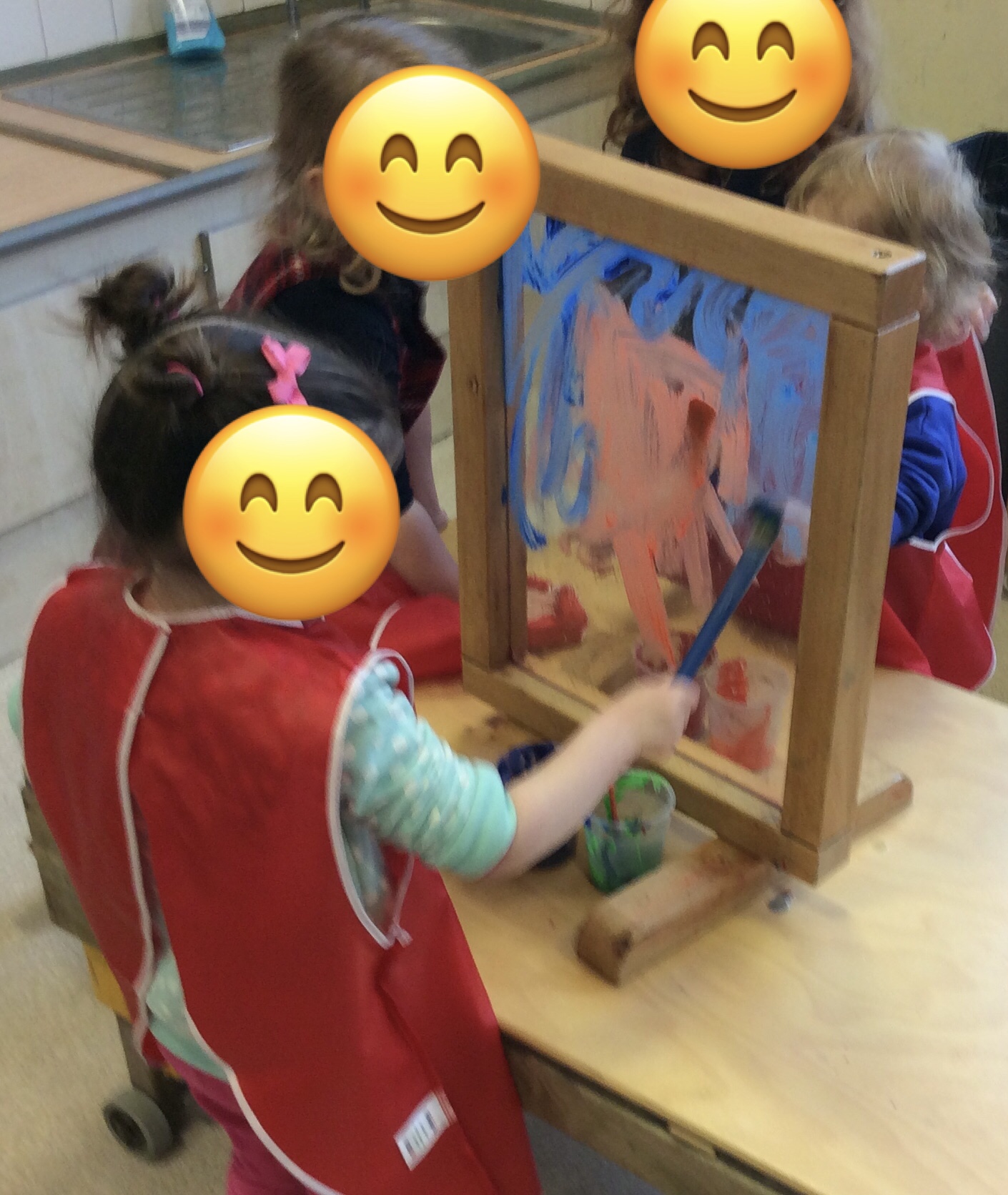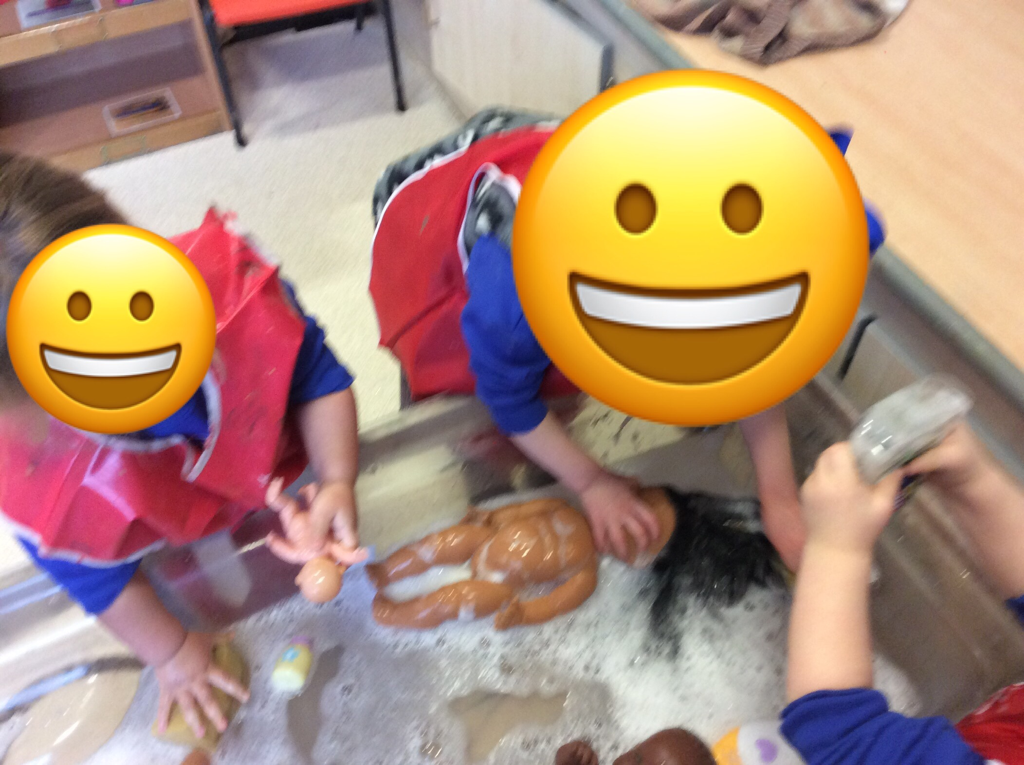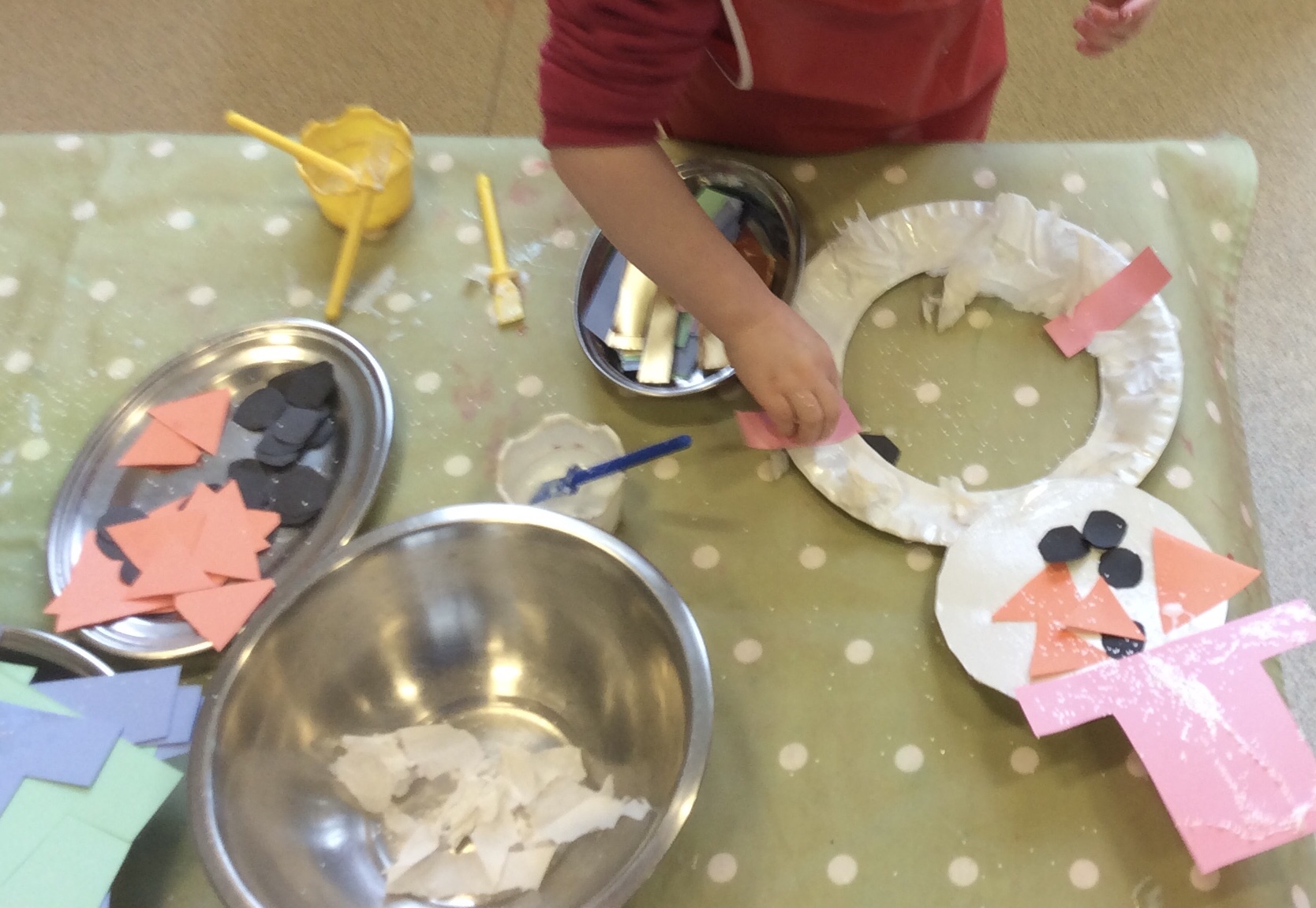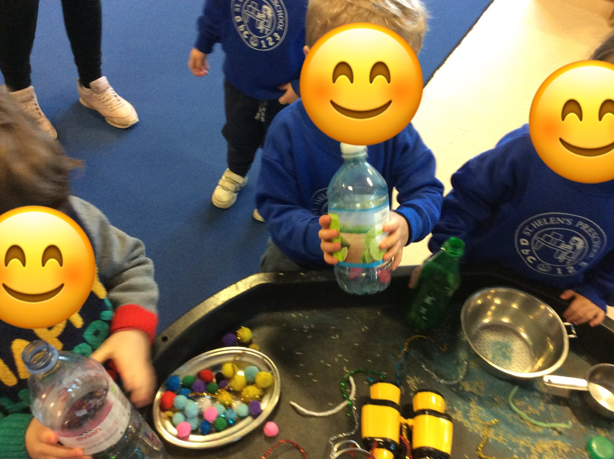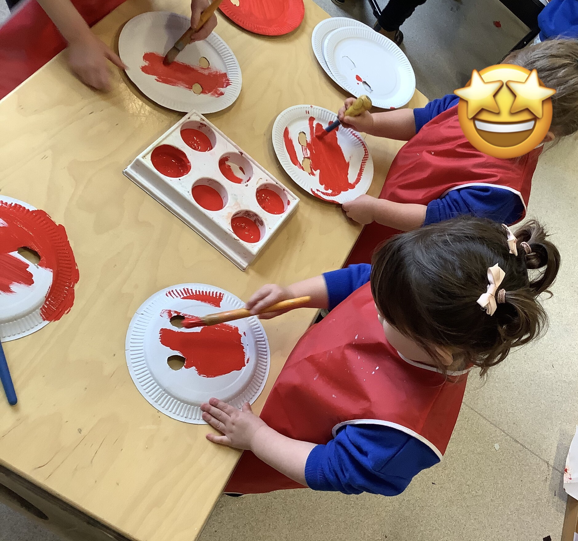 The children love to sing “we’re going on a bear hunt” and in orange room the children used random items that they pretended were binoculars to look out of the windows for bears. Following on from this, we made our own binoculars. We extended this activity even further by going into the garden using the bug hunt resources to search for living creatures (luckily no bears were found). All the while promoting care and concern for living things and our environment.
