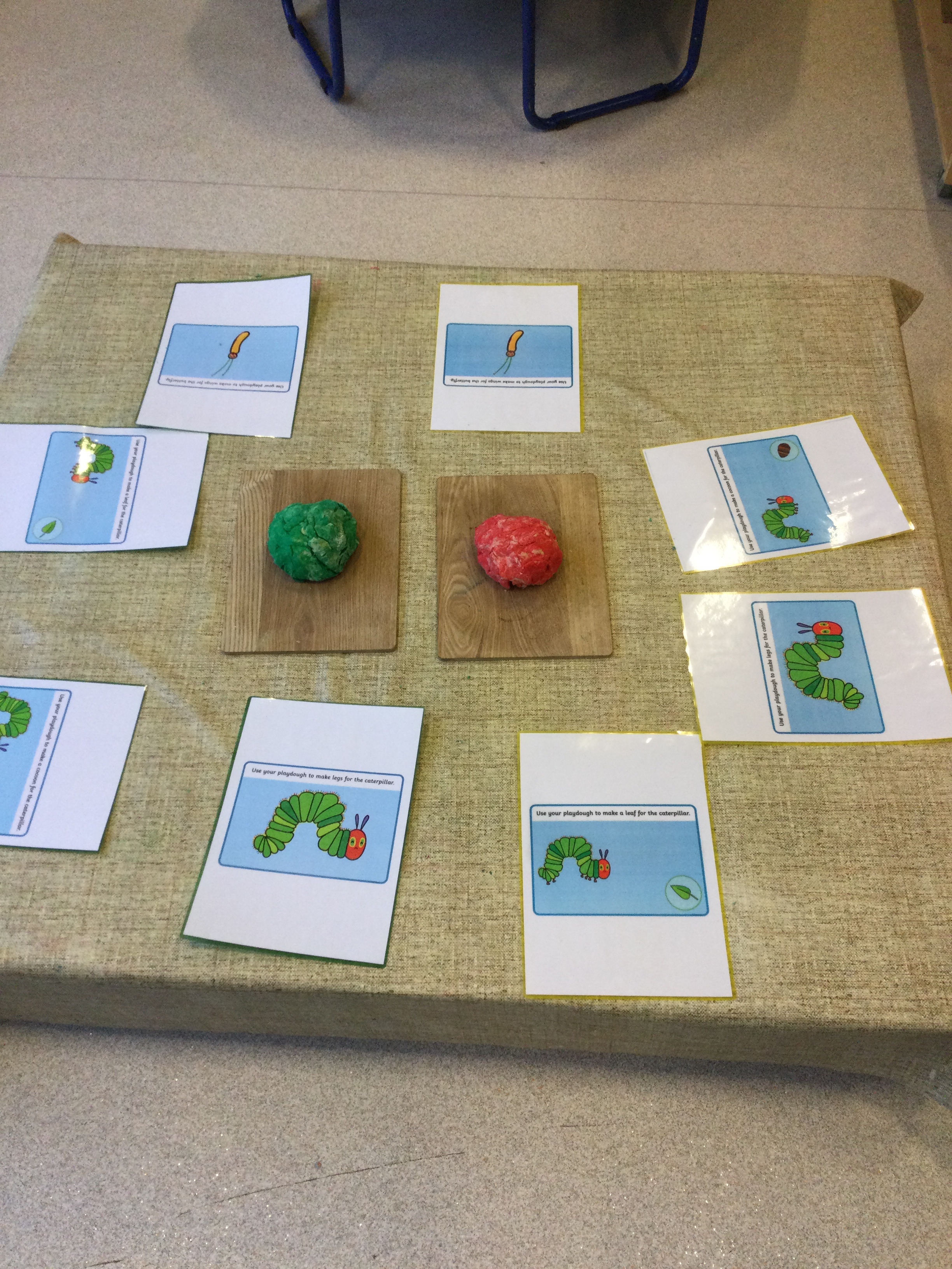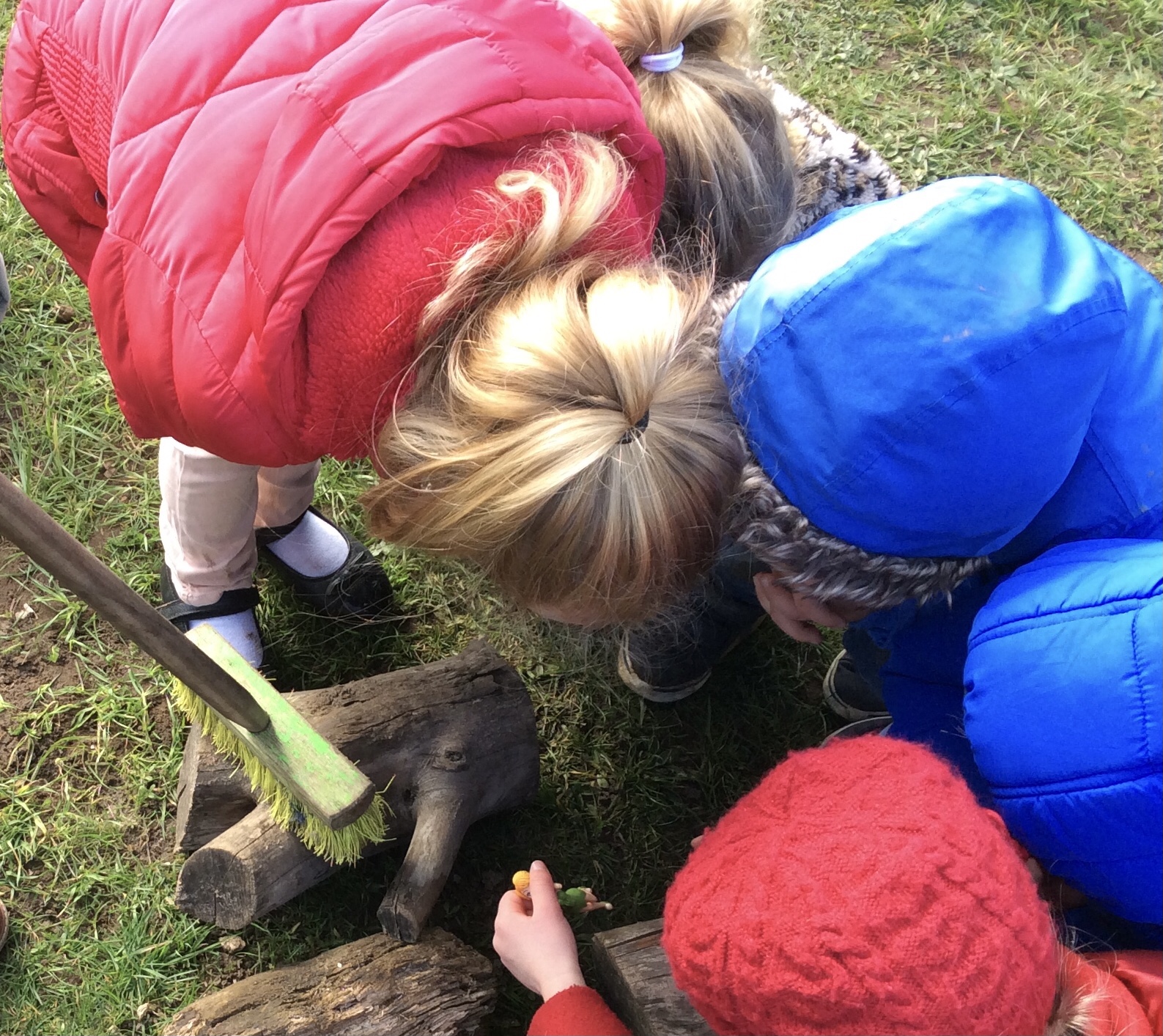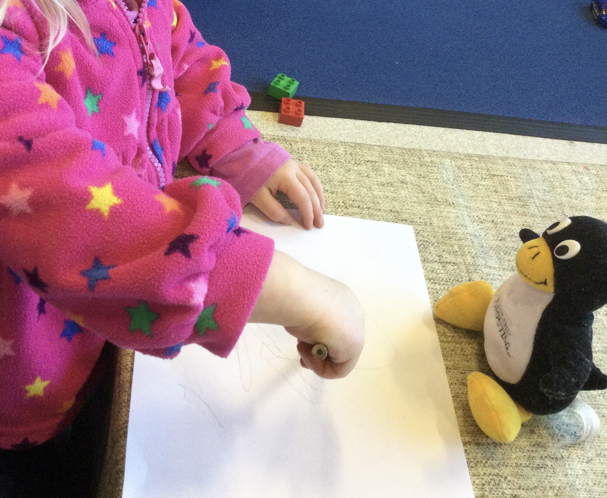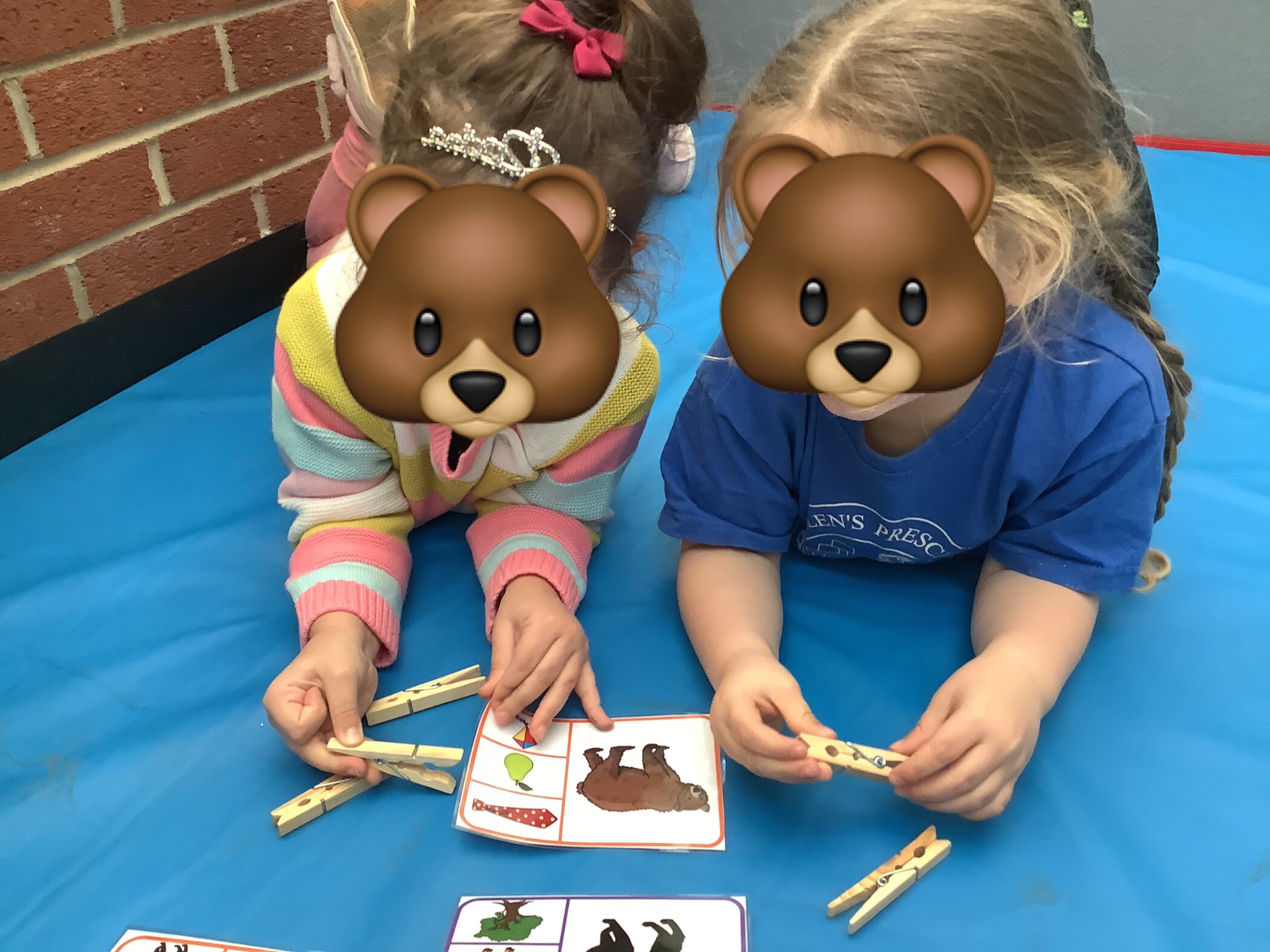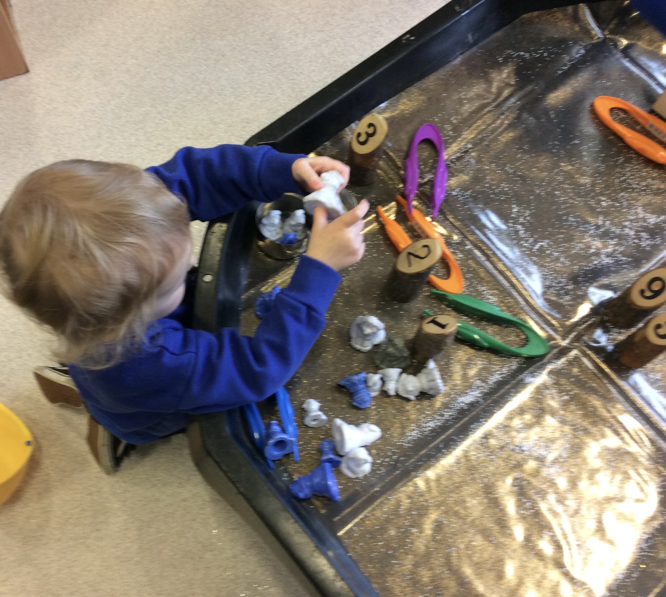 The children love to sing “we’re going on a bear hunt” and in orange room the children used random items that they pretended were binoculars to look out of the windows for bears. Following on from this, we made our own binoculars. We extended this activity even further by going into the garden using the bug hunt resources to search for living creatures (luckily no bears were found). All the while promoting care and concern for living things and our environment.