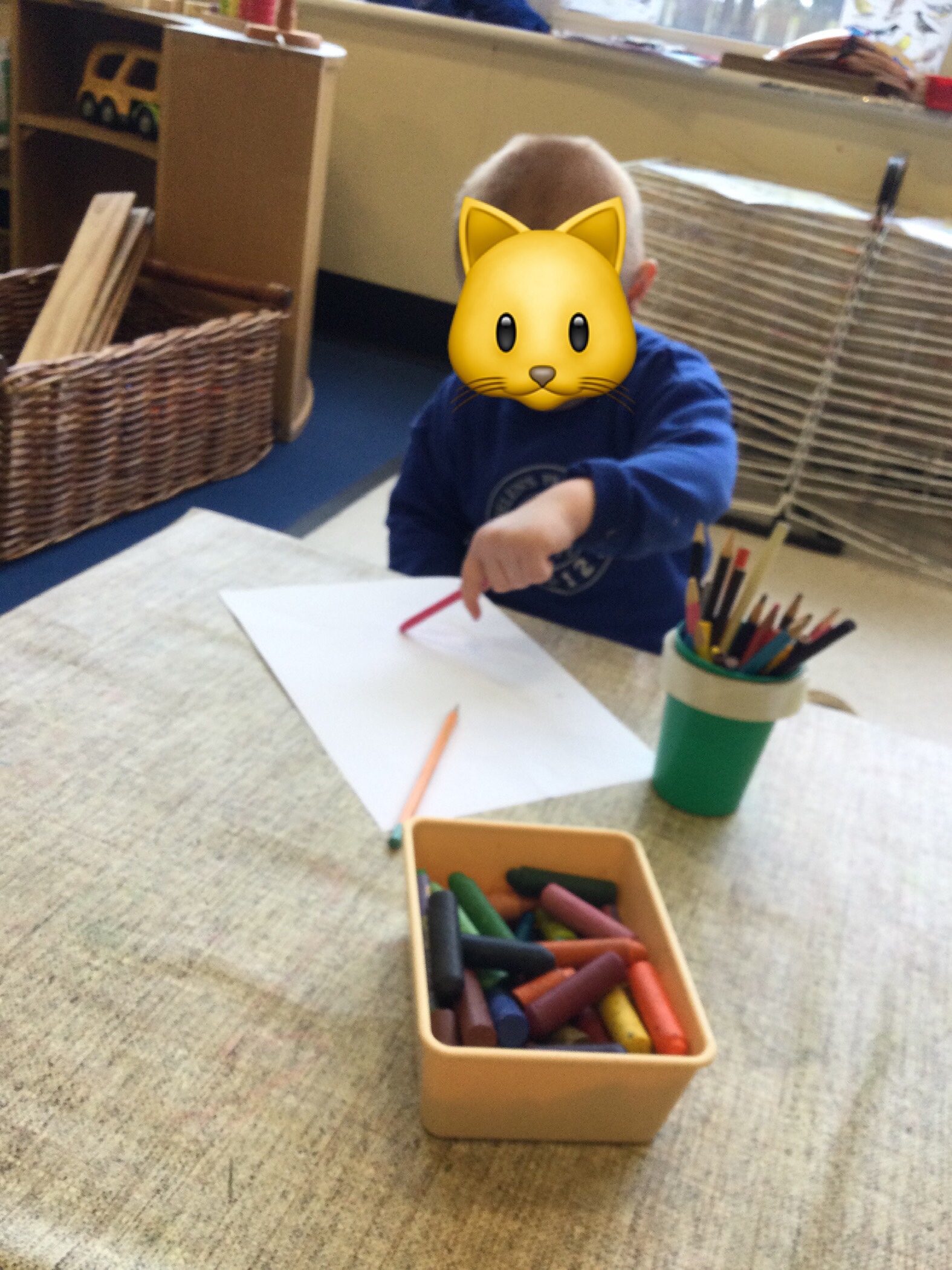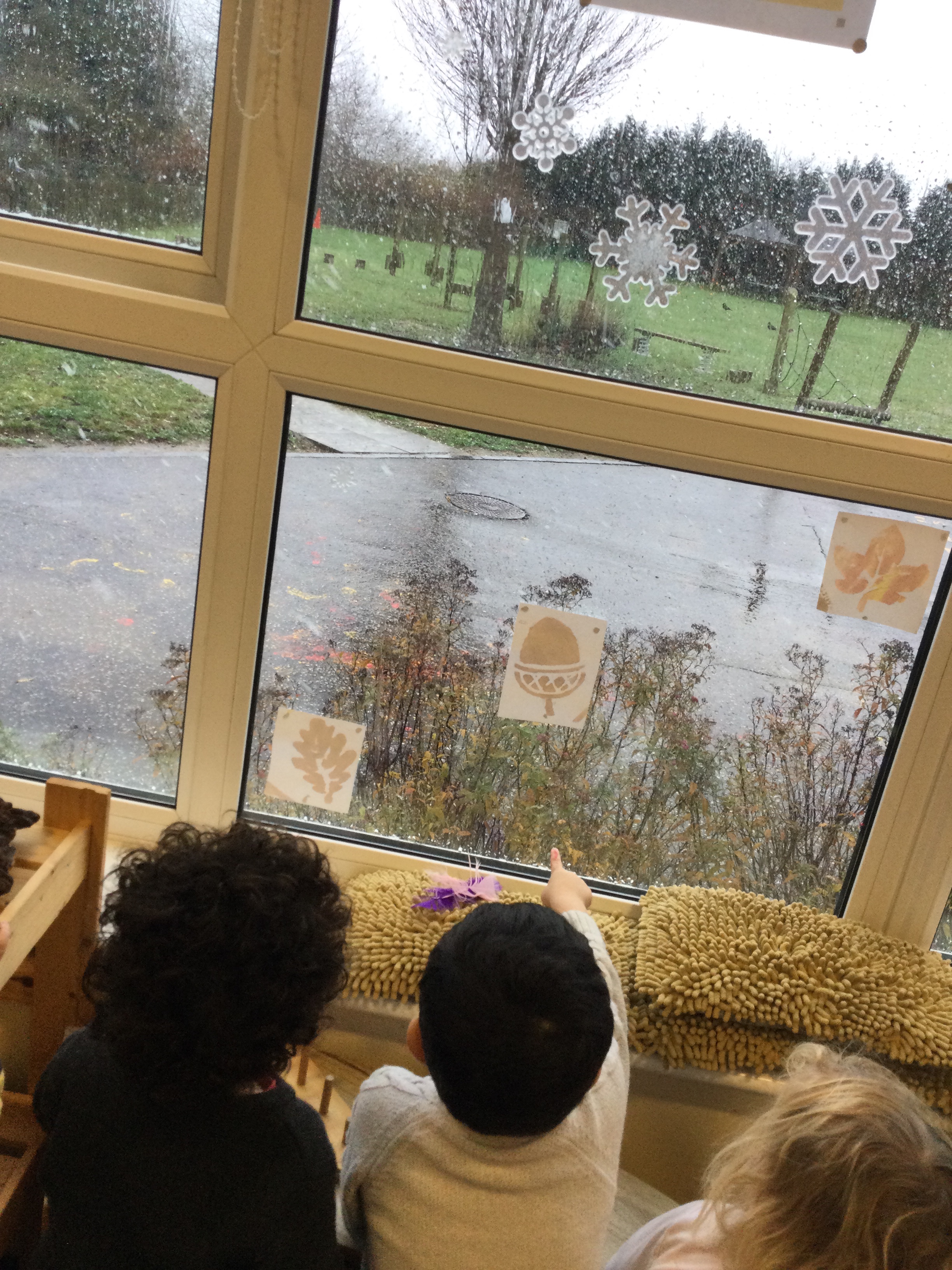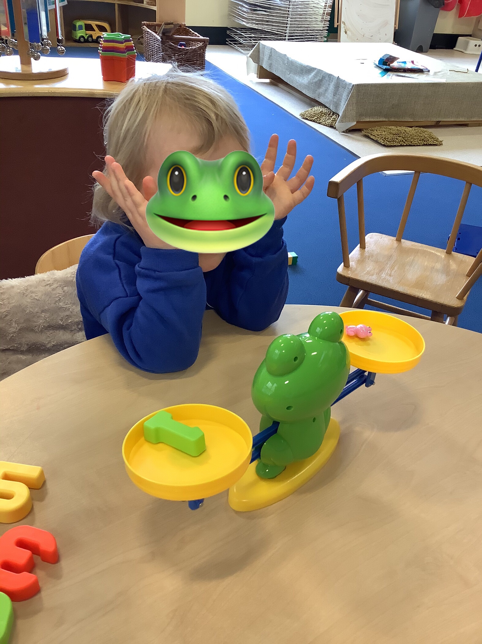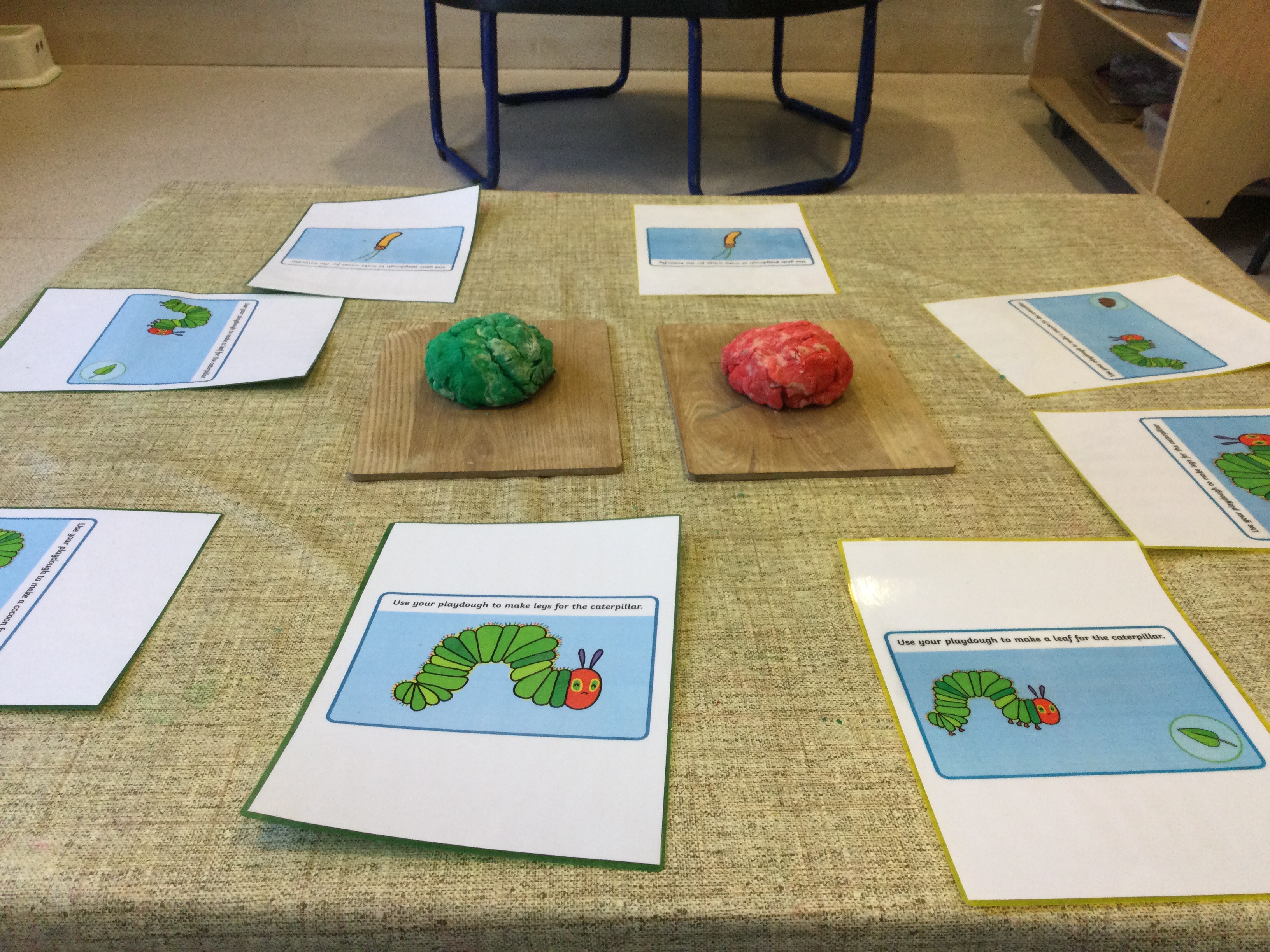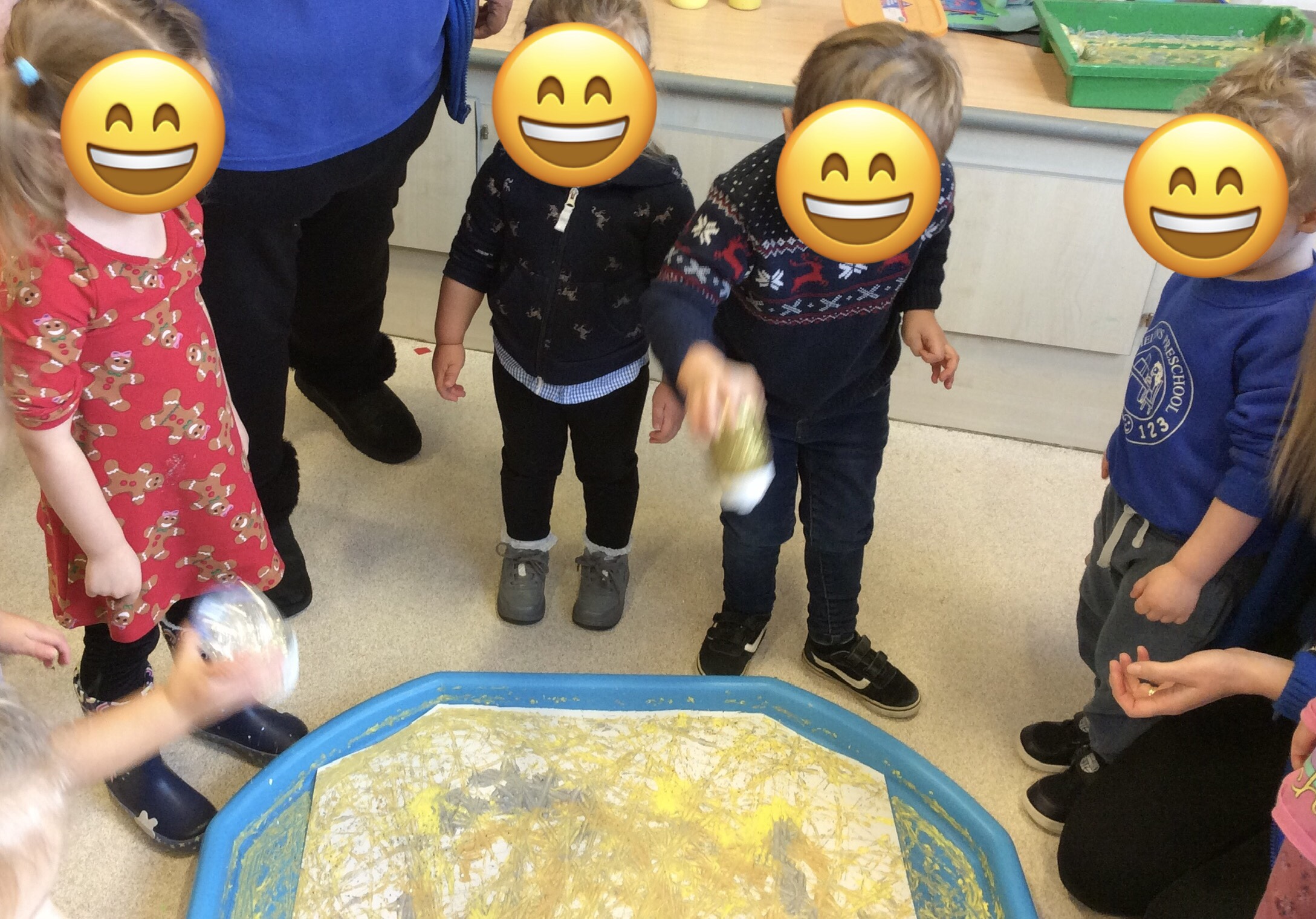 The children love to sing “we’re going on a bear hunt” and in orange room the children used random items that they pretended were binoculars to look out of the windows for bears. Following on from this, we made our own binoculars. We extended this activity even further by going into the garden using the bug hunt resources to search for living creatures (luckily no bears were found). All the while promoting care and concern for living things and our environment.