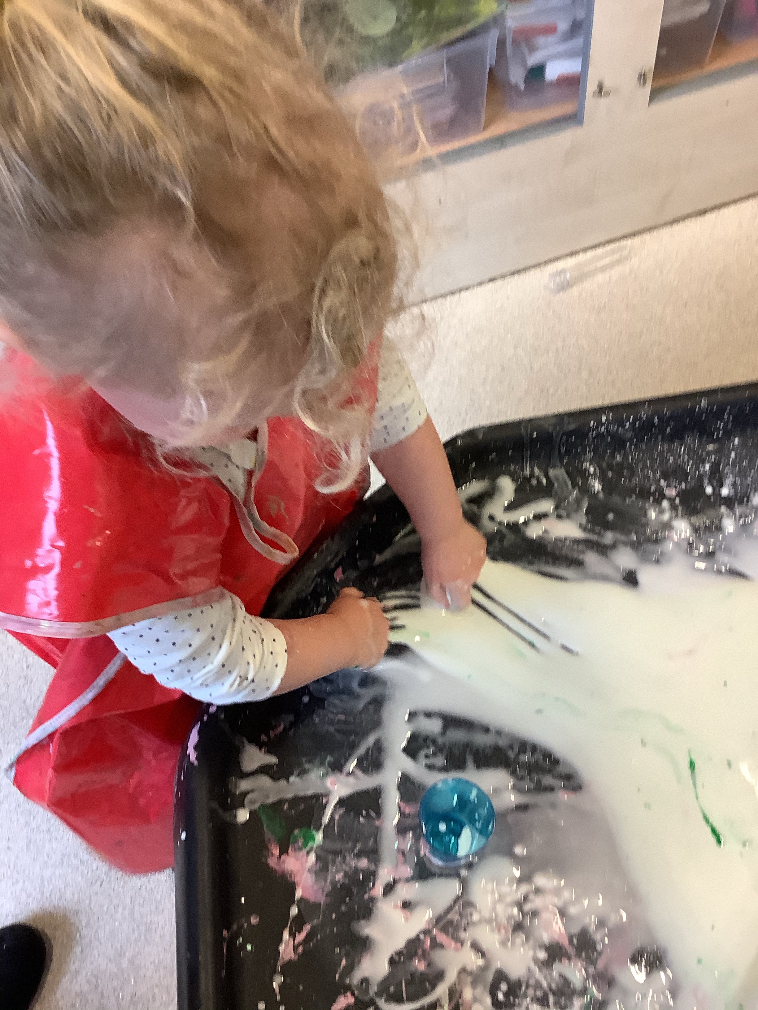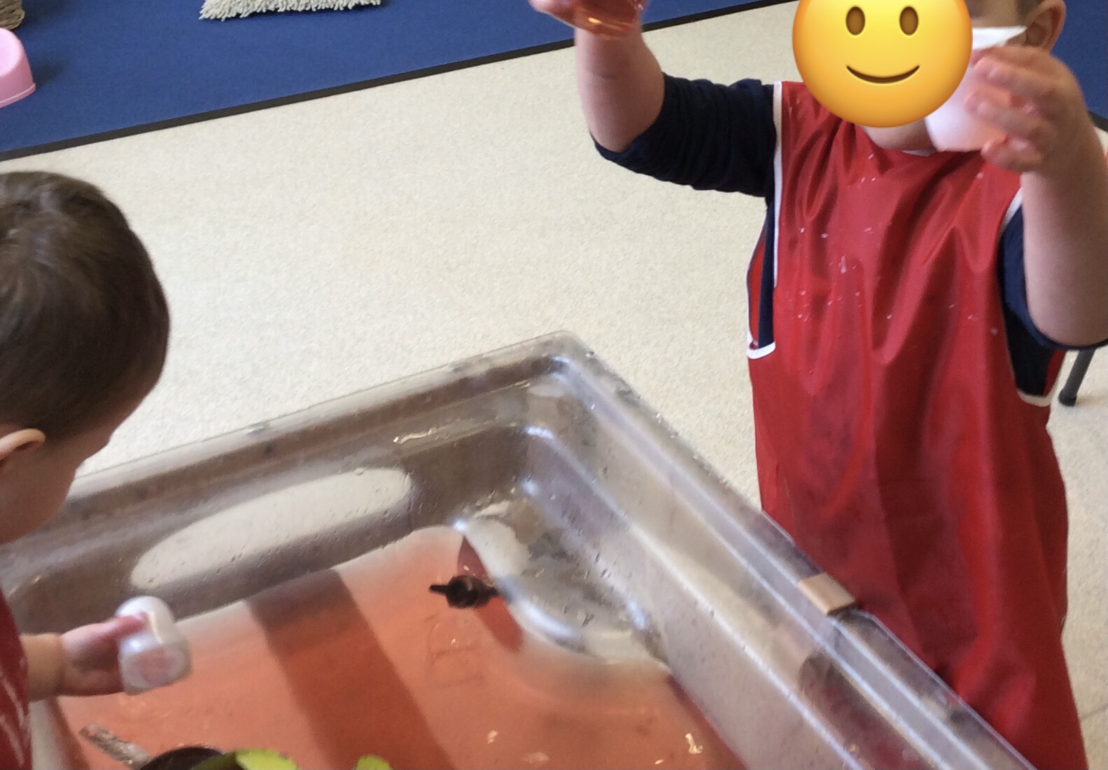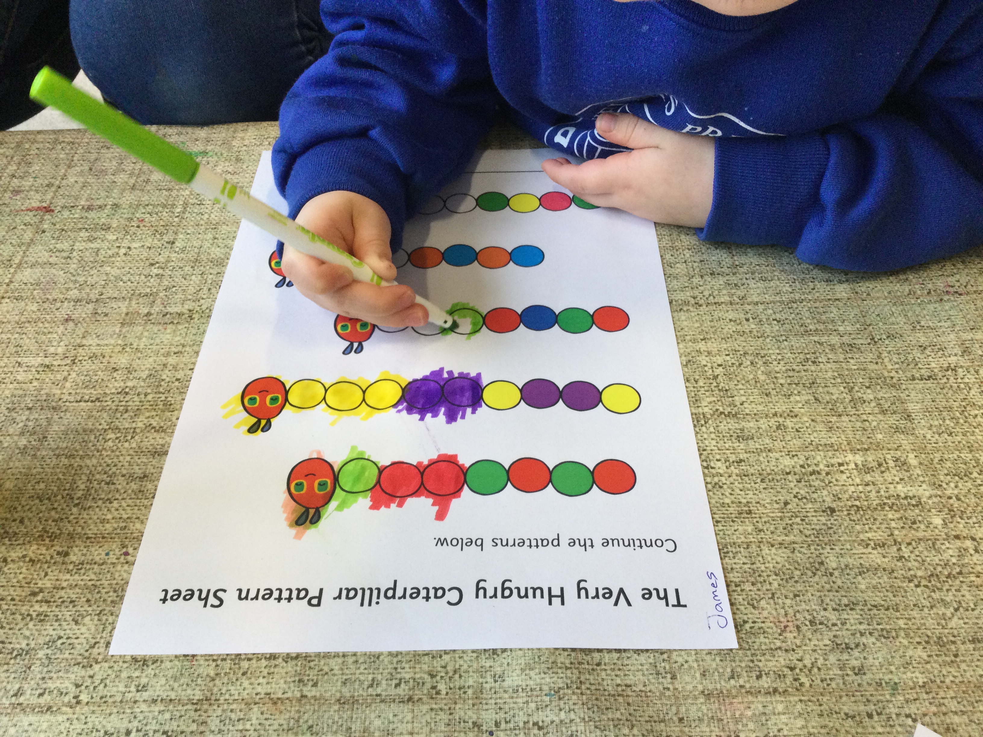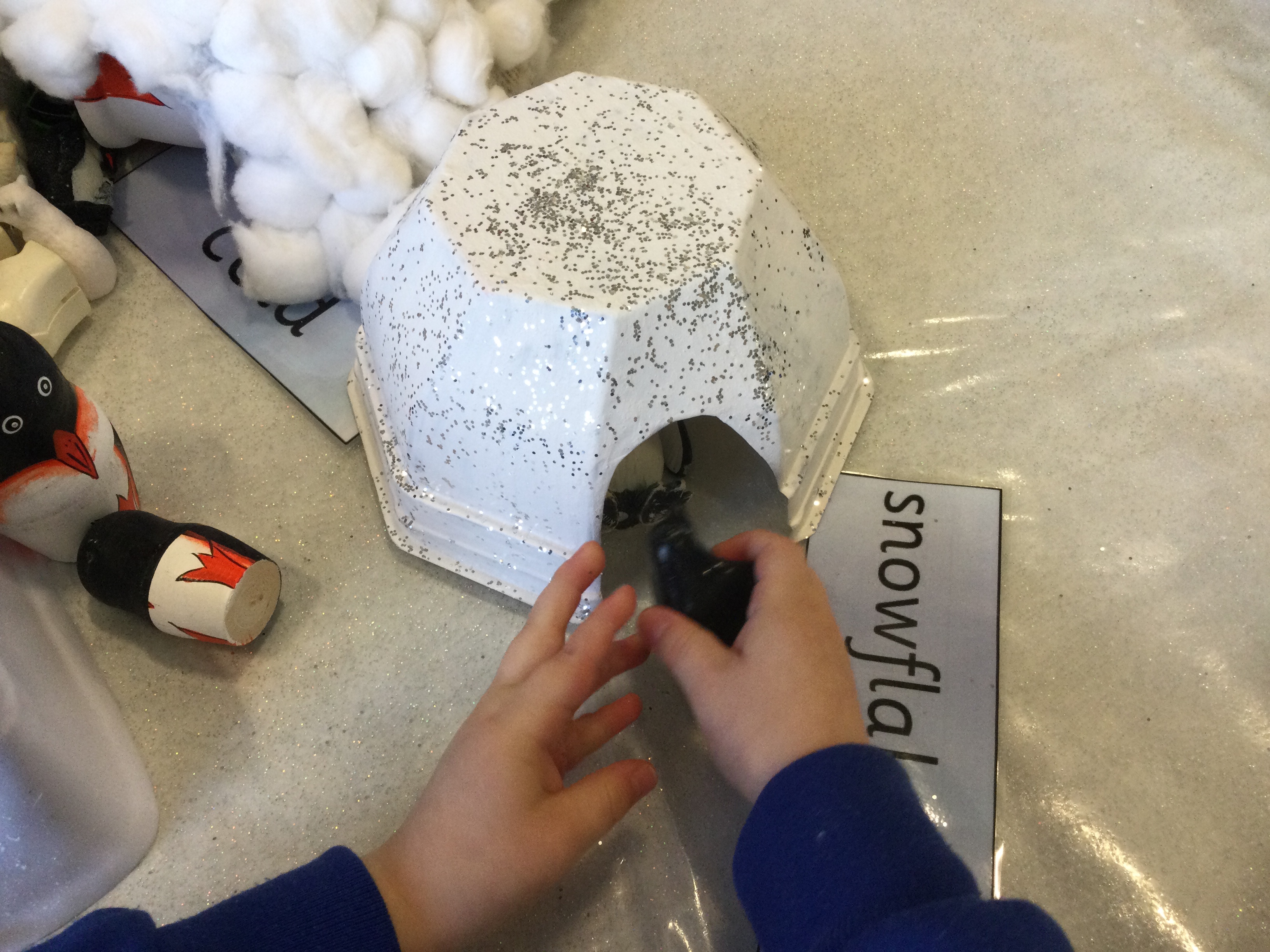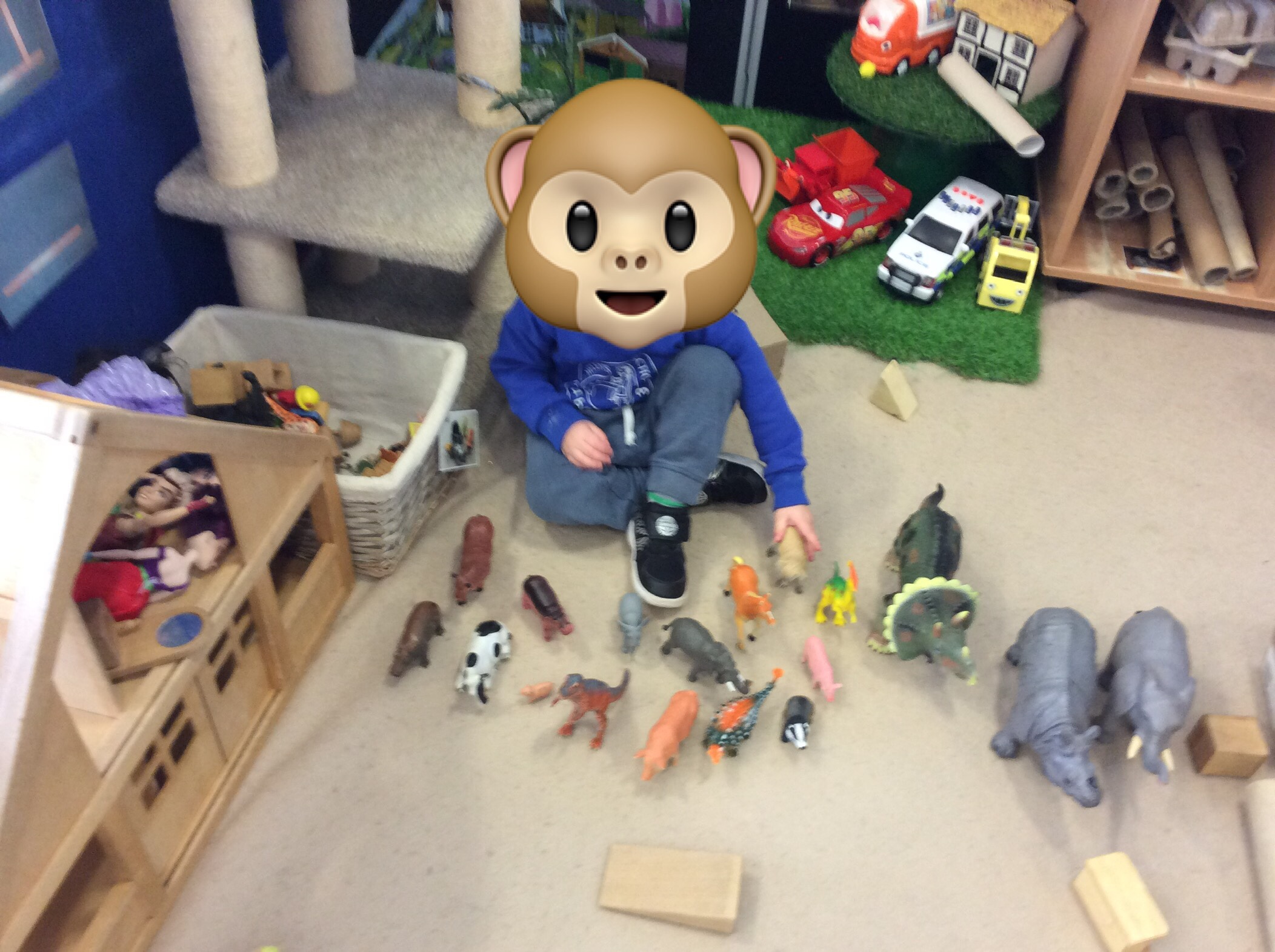 The children love to sing “we’re going on a bear hunt” and in orange room the children used random items that they pretended were binoculars to look out of the windows for bears. Following on from this, we made our own binoculars. We extended this activity even further by going into the garden using the bug hunt resources to search for living creatures (luckily no bears were found). All the while promoting care and concern for living things and our environment.