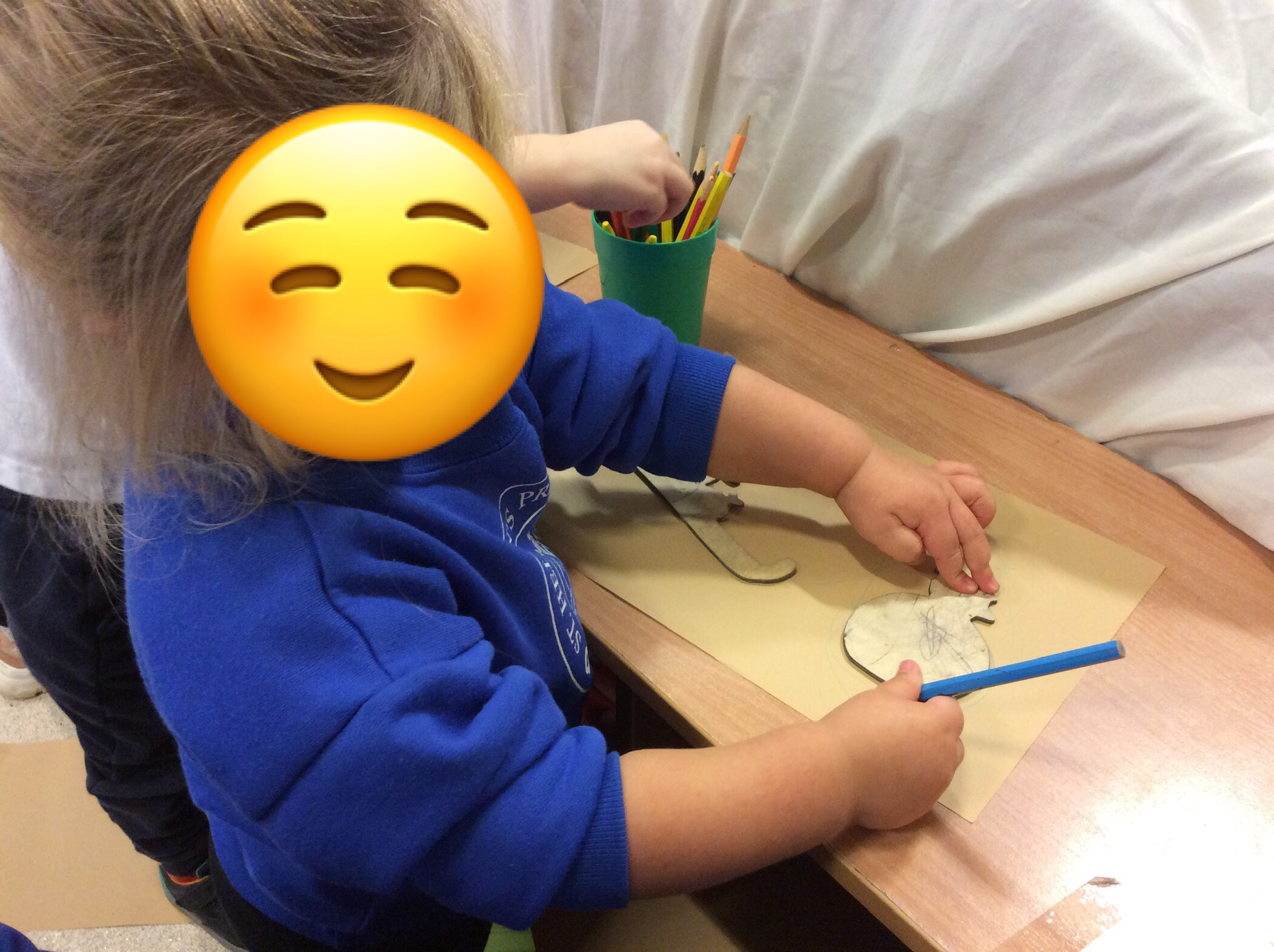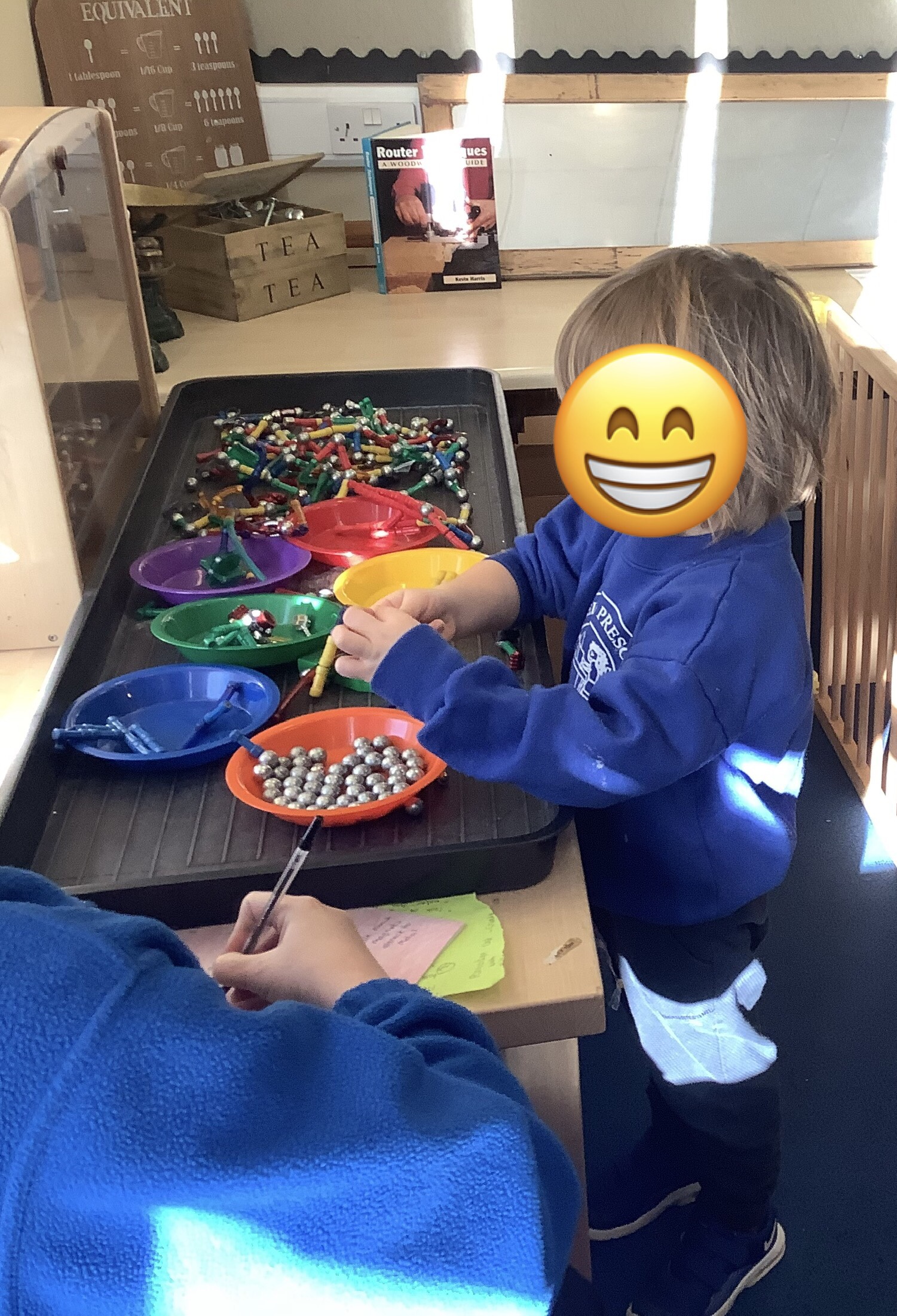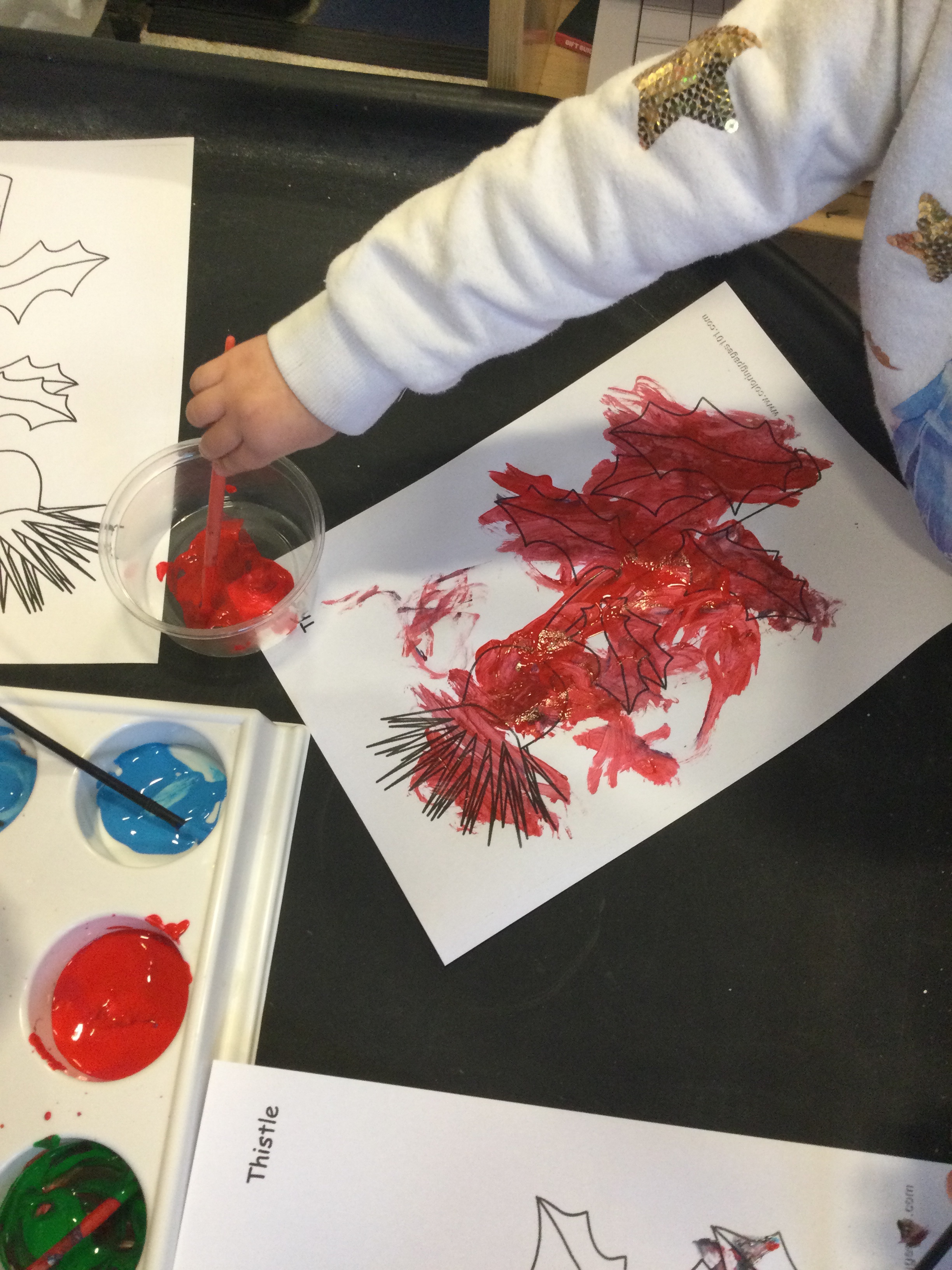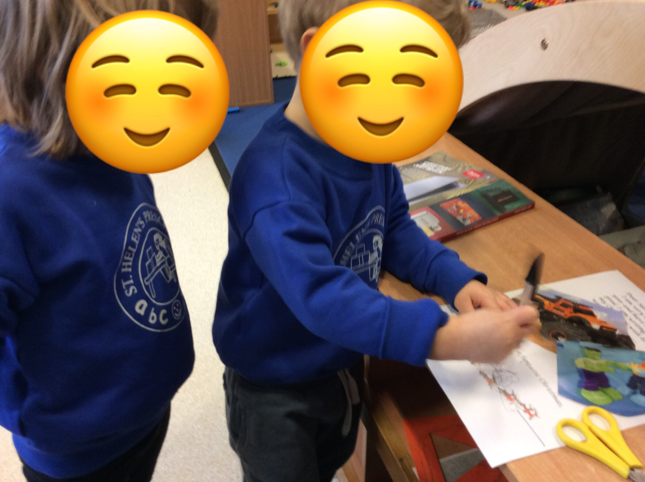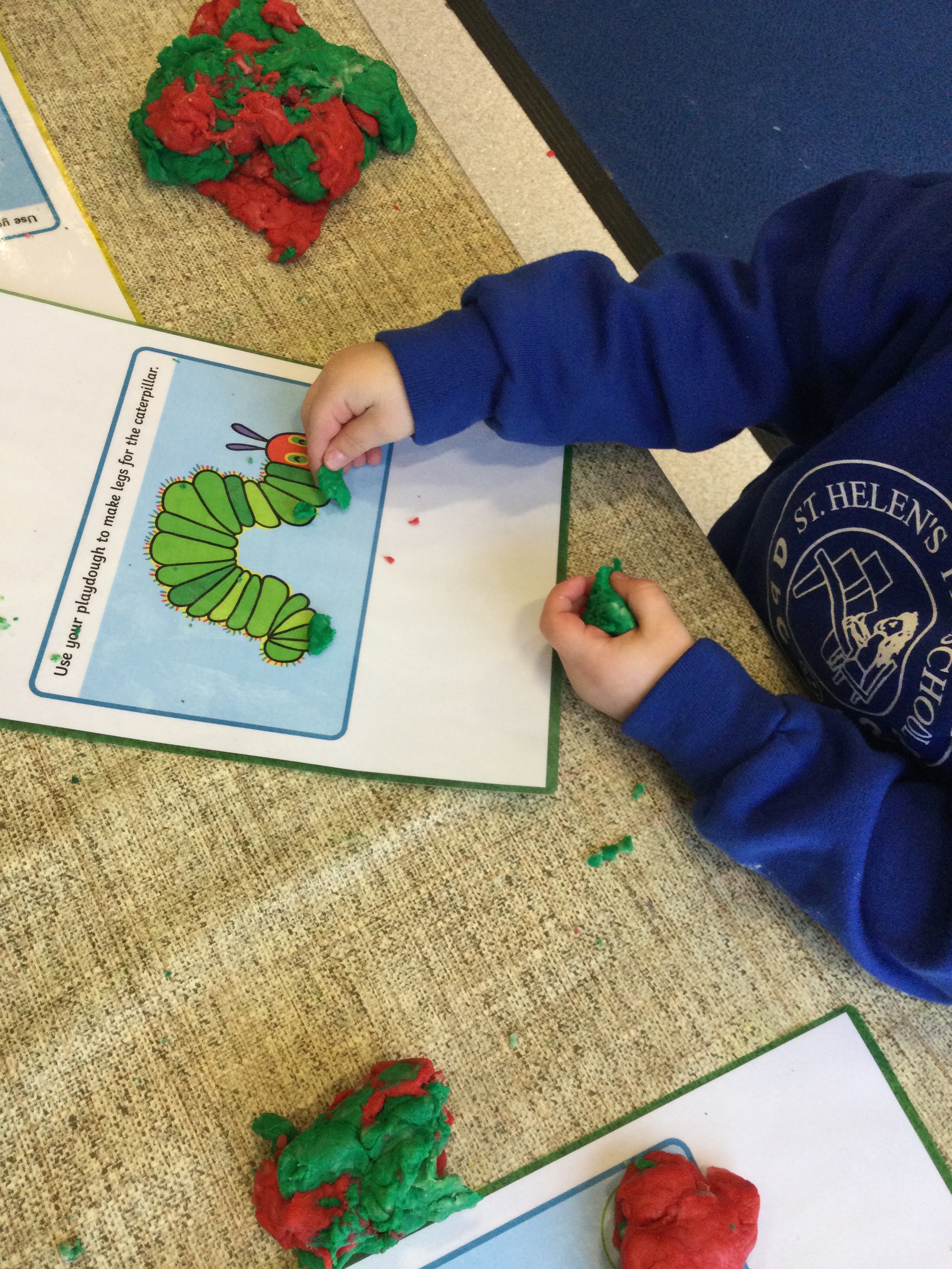 The children love to sing “we’re going on a bear hunt” and in orange room the children used random items that they pretended were binoculars to look out of the windows for bears. Following on from this, we made our own binoculars. We extended this activity even further by going into the garden using the bug hunt resources to search for living creatures (luckily no bears were found). All the while promoting care and concern for living things and our environment.