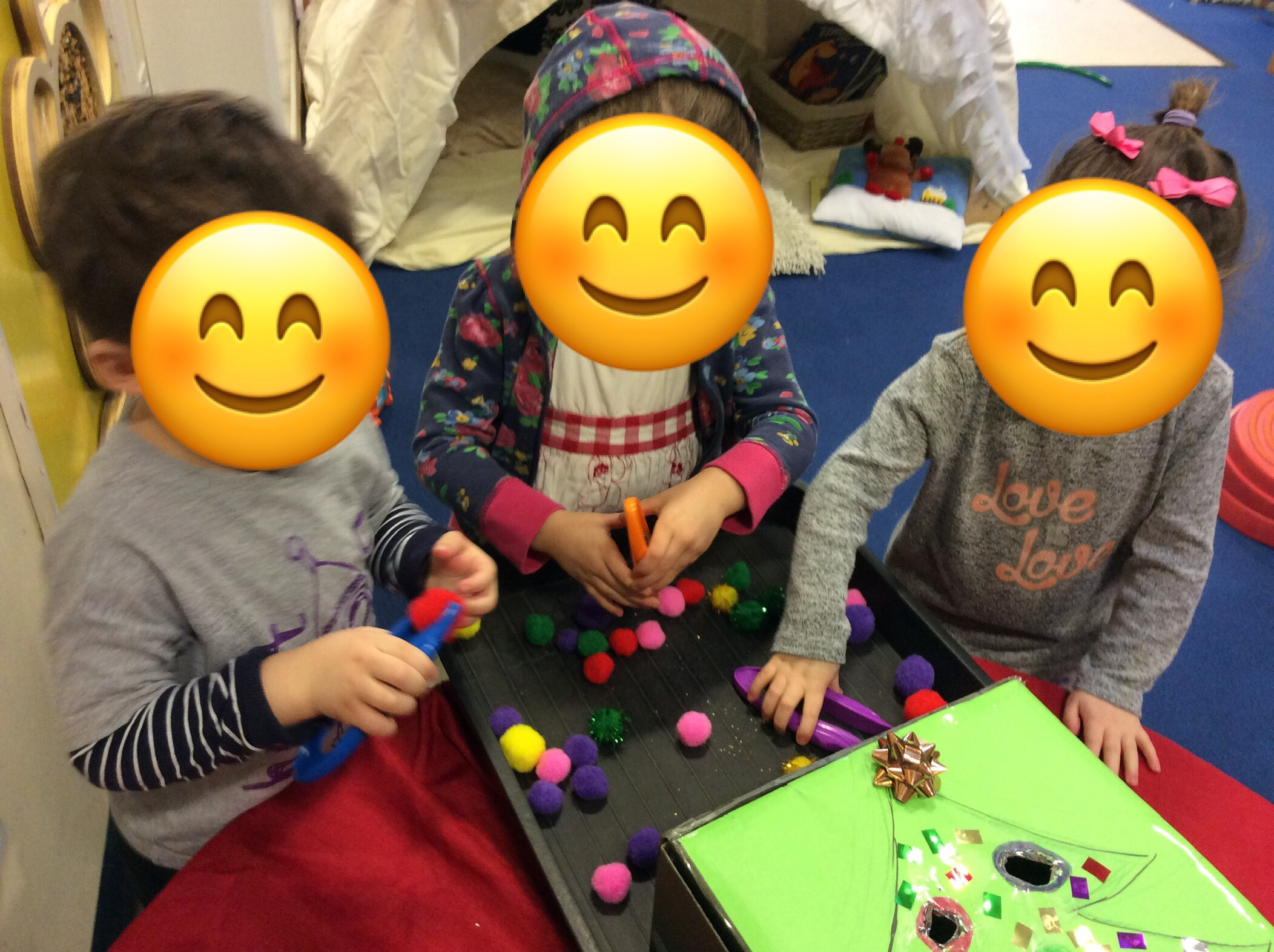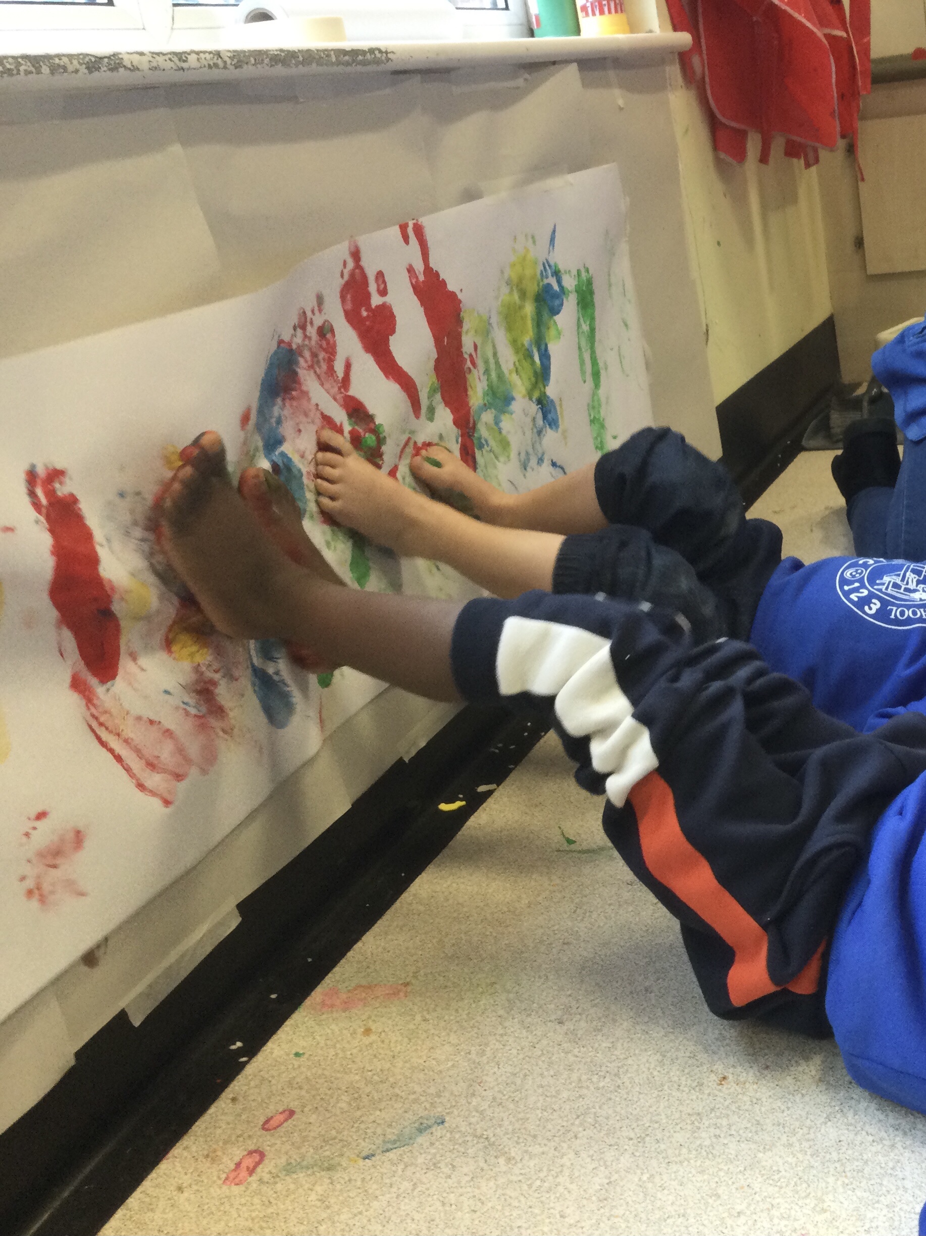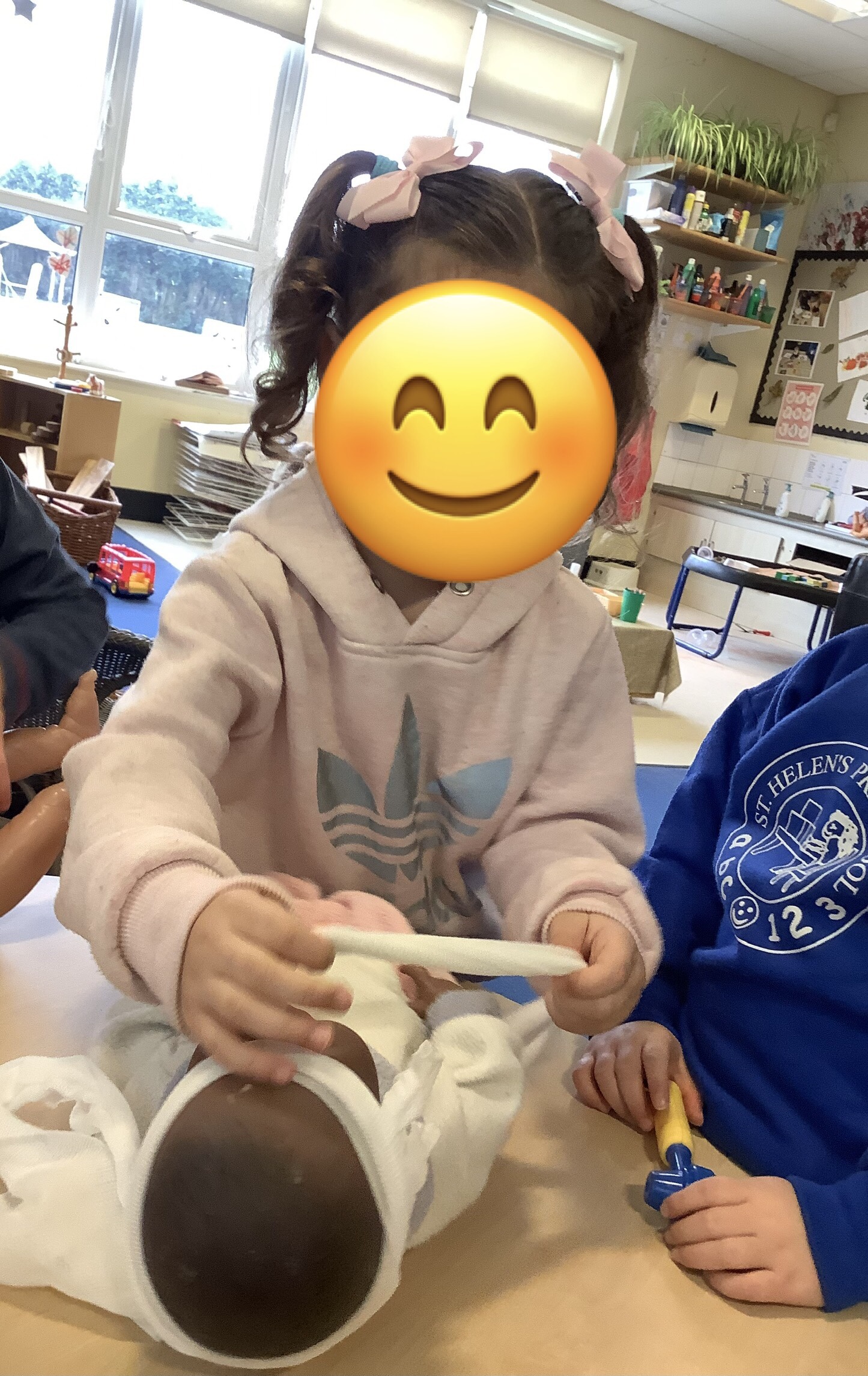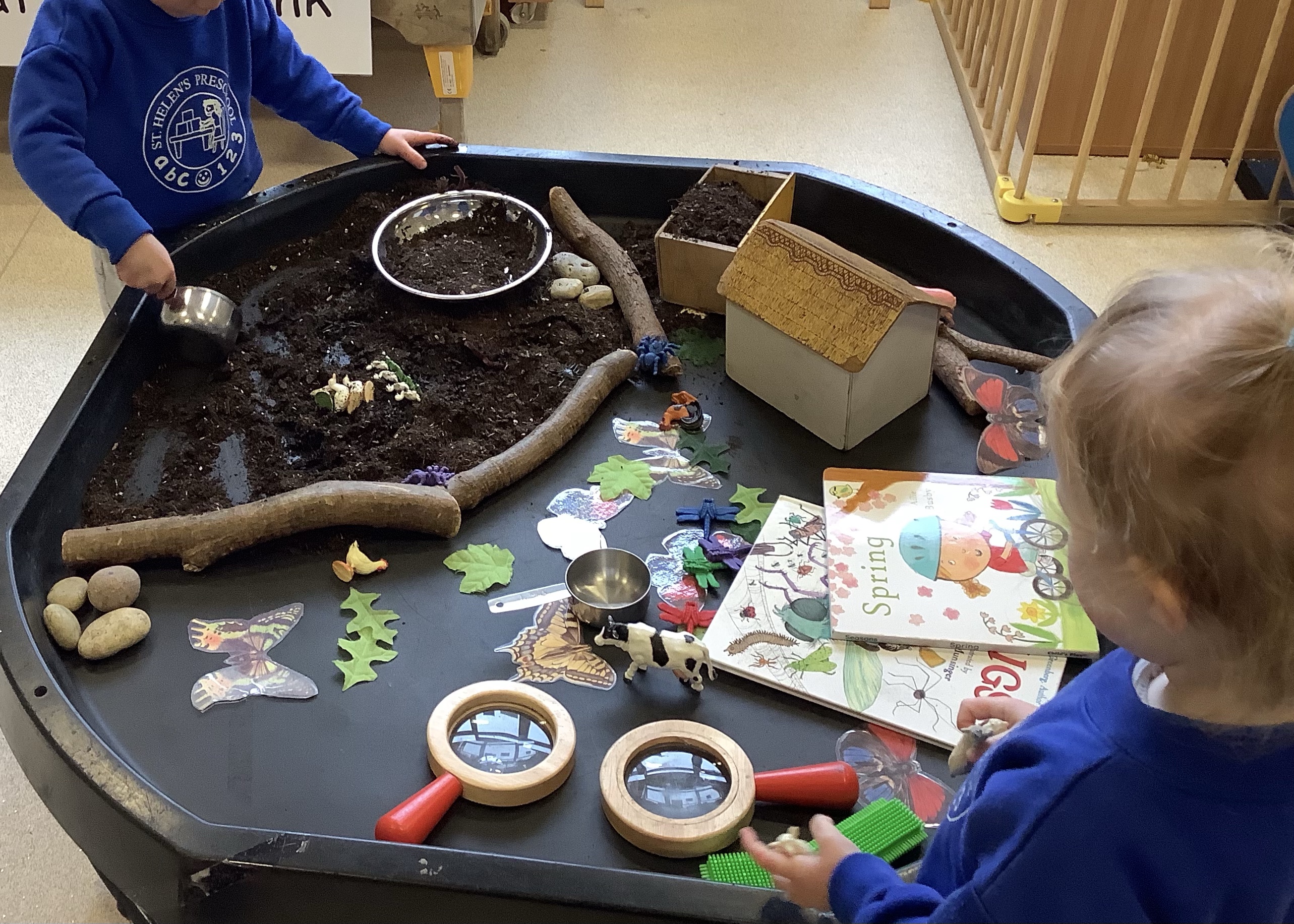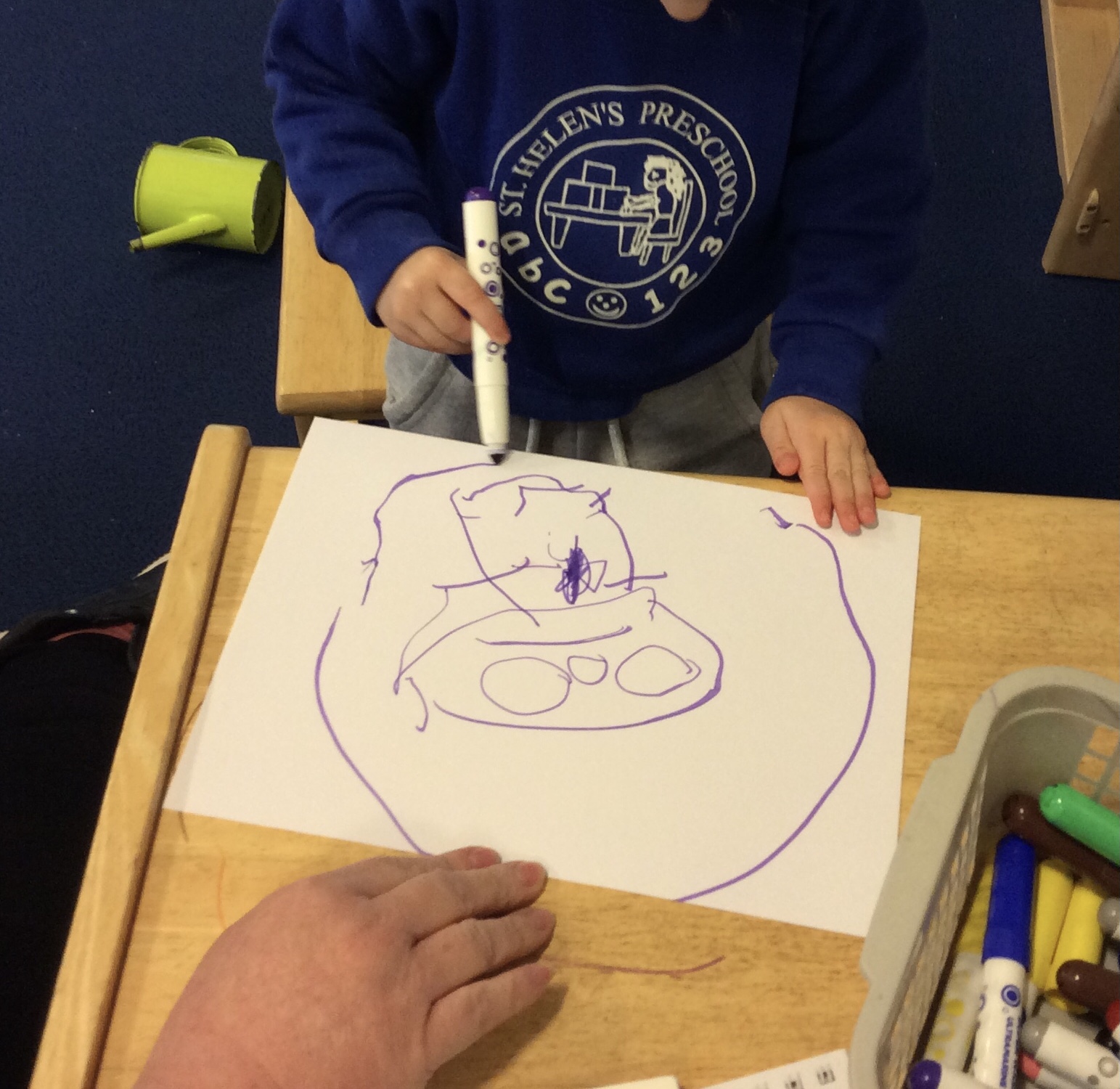 The children love to sing “we’re going on a bear hunt” and in orange room the children used random items that they pretended were binoculars to look out of the windows for bears. Following on from this, we made our own binoculars. We extended this activity even further by going into the garden using the bug hunt resources to search for living creatures (luckily no bears were found). All the while promoting care and concern for living things and our environment.