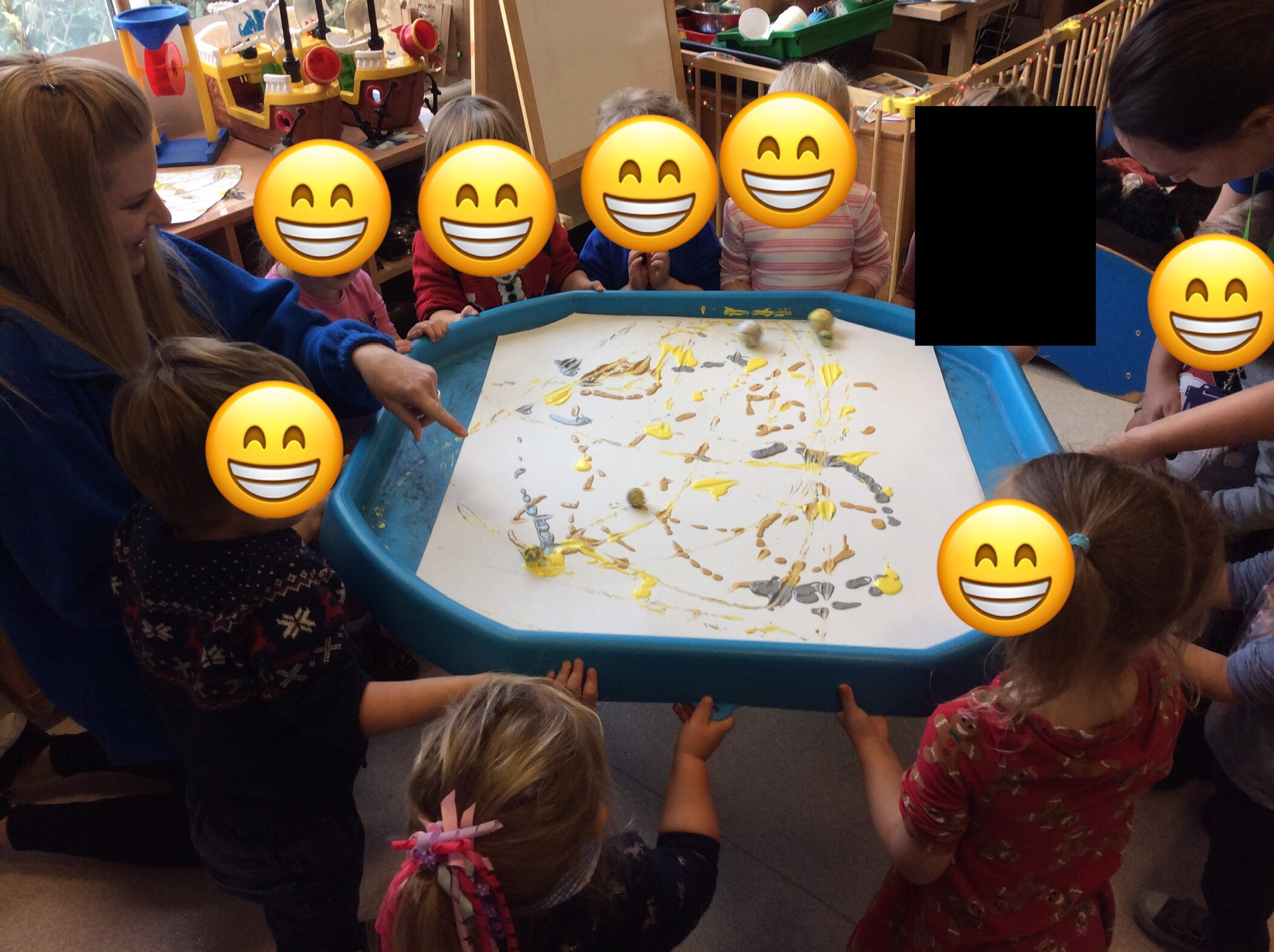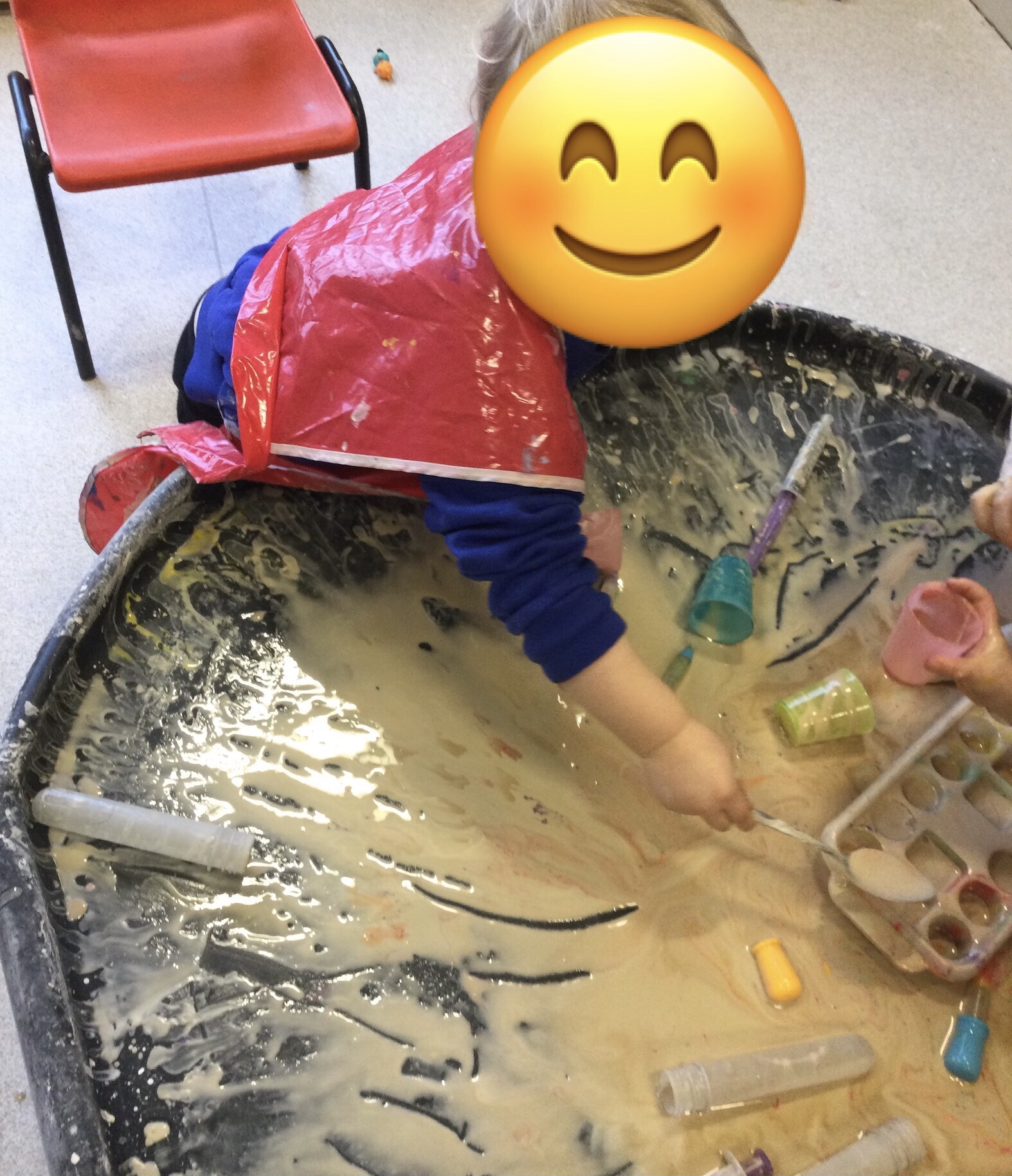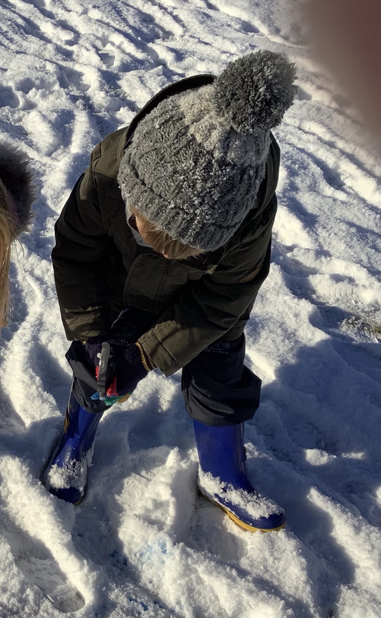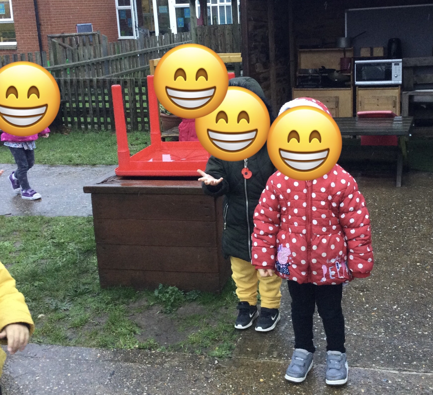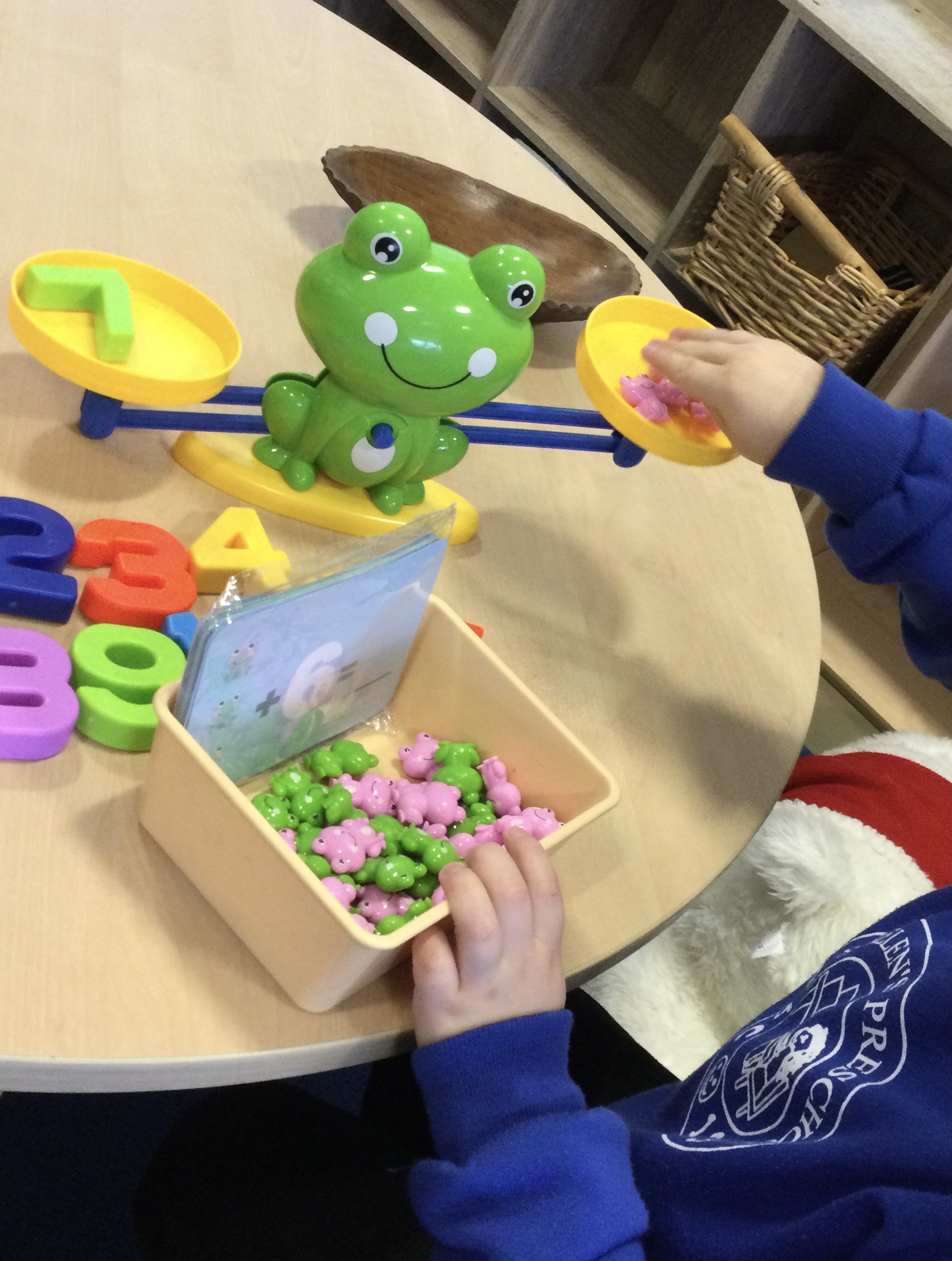 The children love to sing “we’re going on a bear hunt” and in orange room the children used random items that they pretended were binoculars to look out of the windows for bears. Following on from this, we made our own binoculars. We extended this activity even further by going into the garden using the bug hunt resources to search for living creatures (luckily no bears were found). All the while promoting care and concern for living things and our environment.