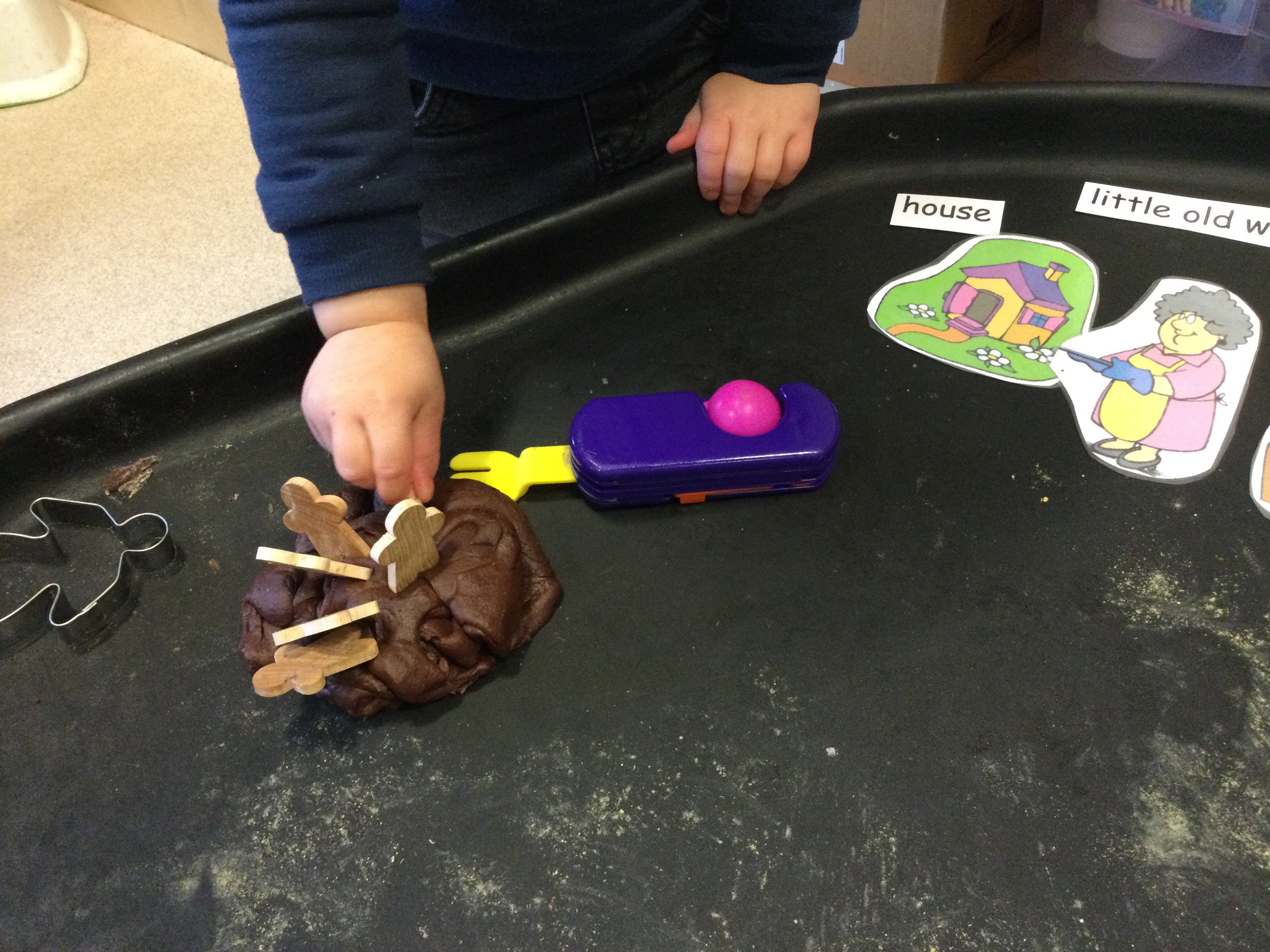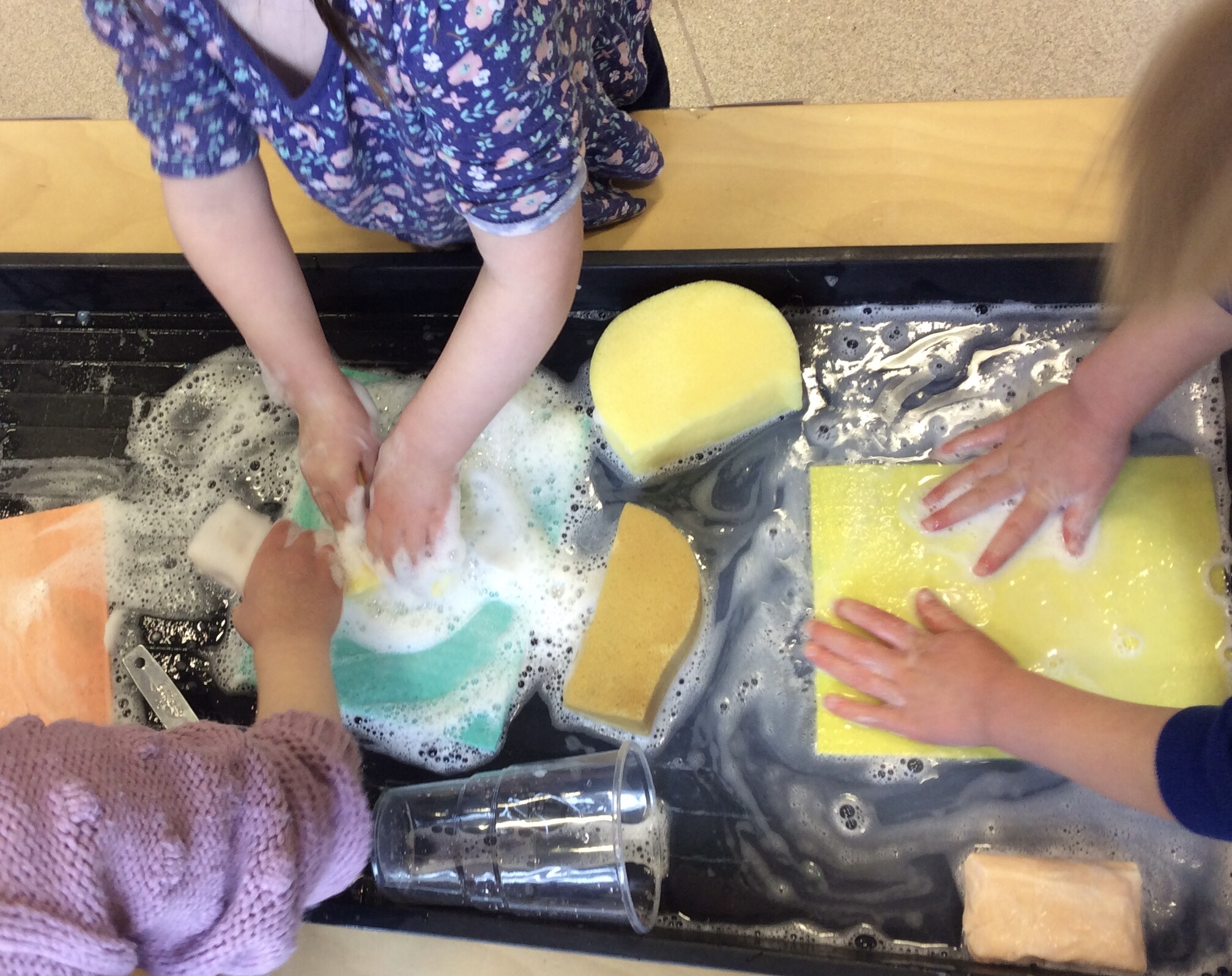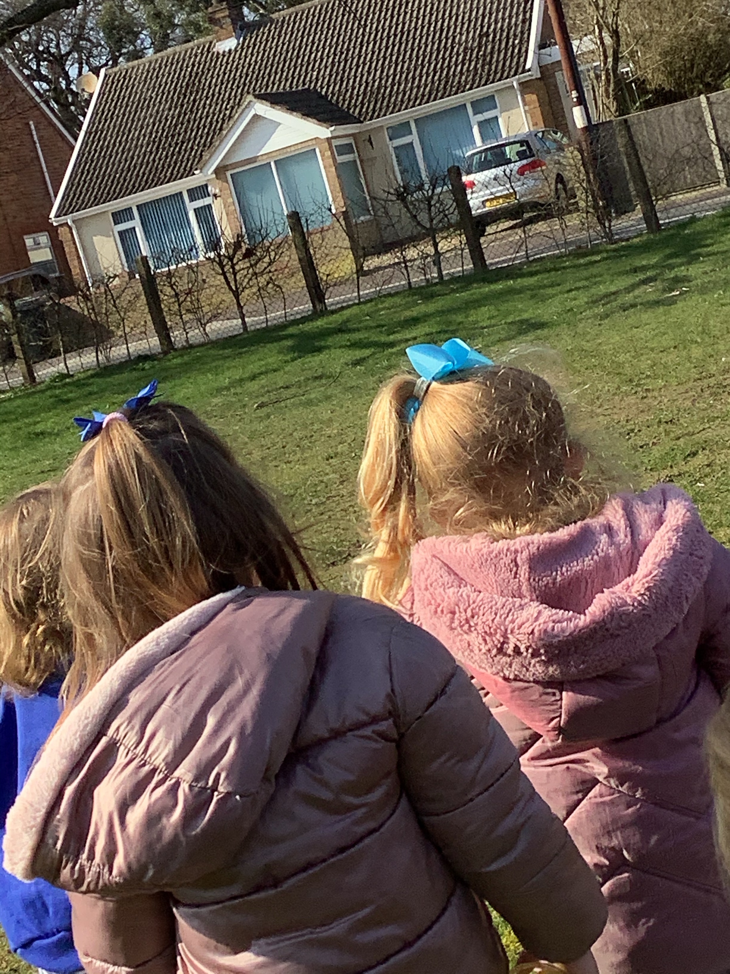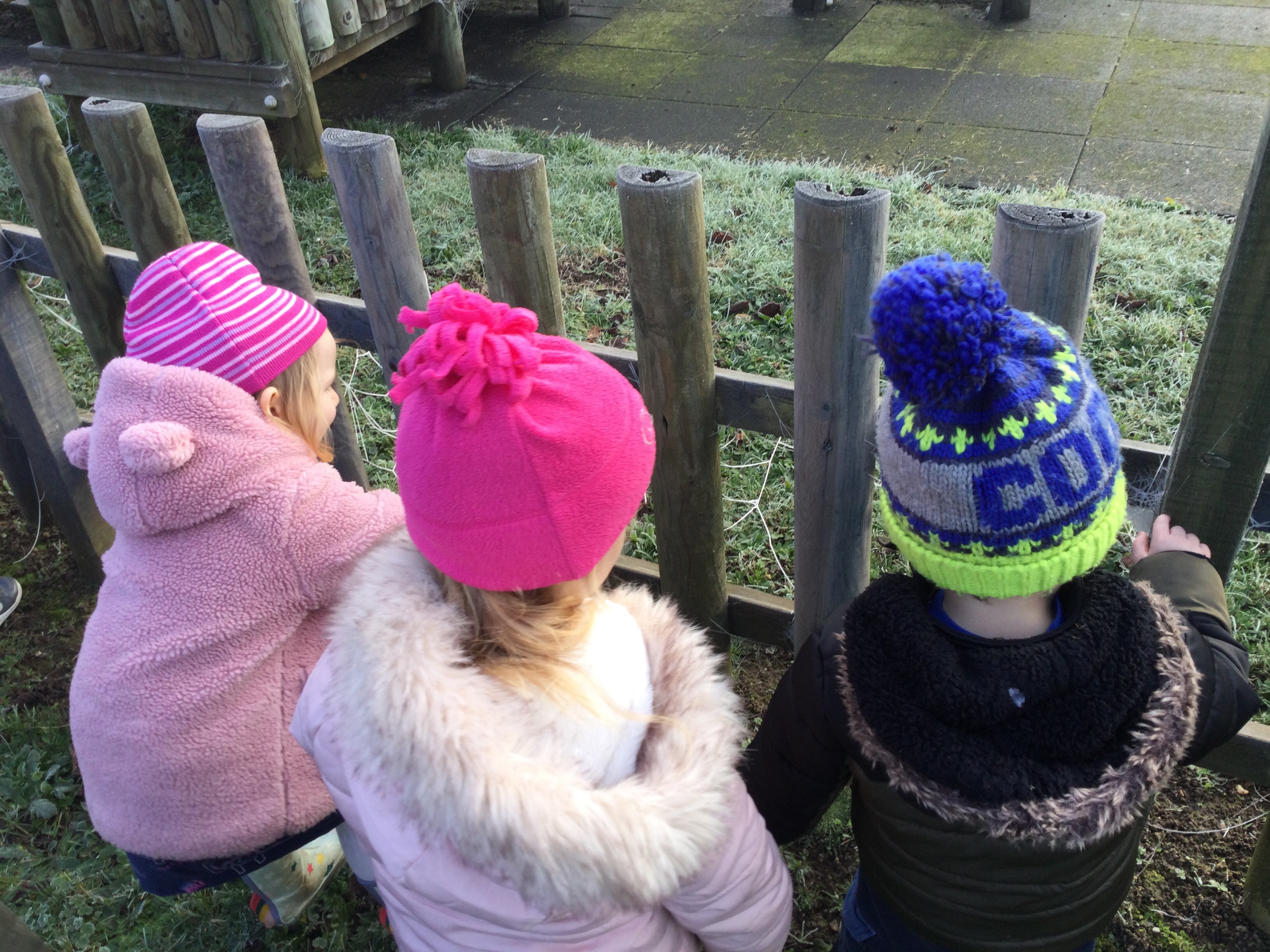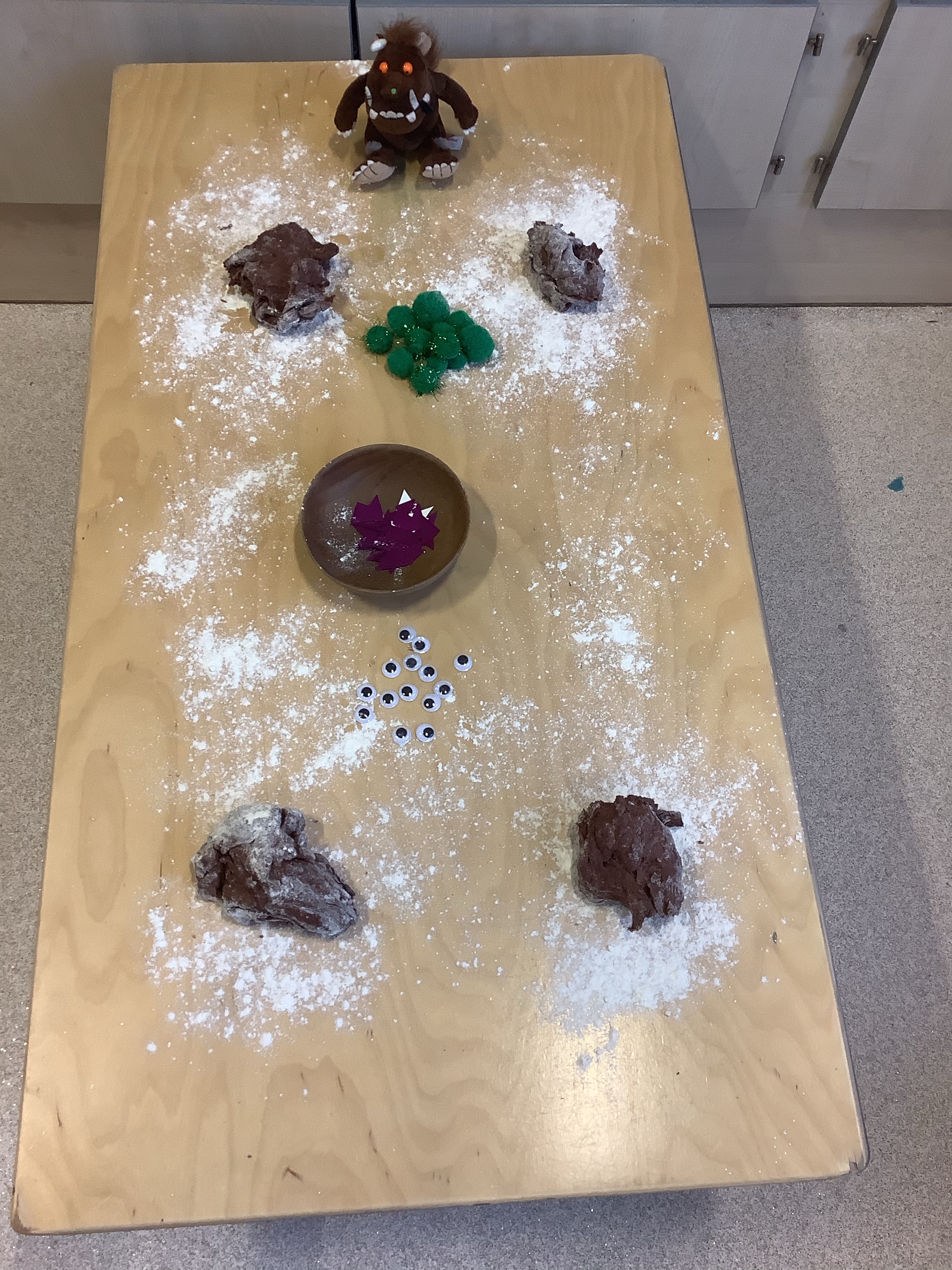 The children love to sing “we’re going on a bear hunt” and in orange room the children used random items that they pretended were binoculars to look out of the windows for bears. Following on from this, we made our own binoculars. We extended this activity even further by going into the garden using the bug hunt resources to search for living creatures (luckily no bears were found). All the while promoting care and concern for living things and our environment.